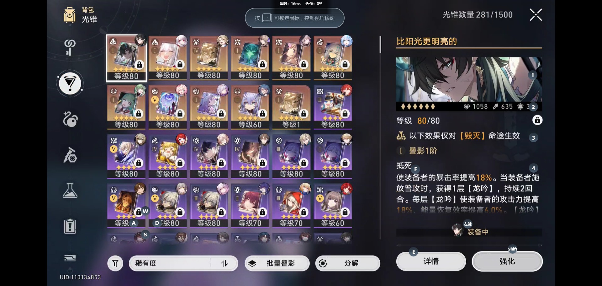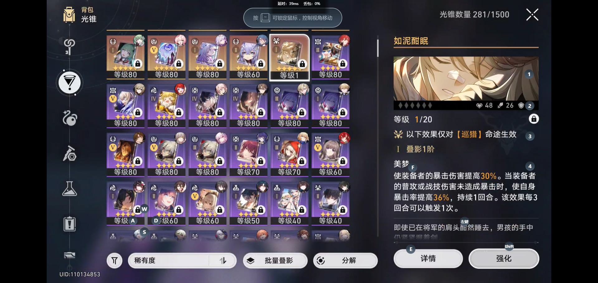 [14375012]【总黄数】:40 【3命金色角色】:3命白露 【2命金色角色】:2命杰帕德 【1命金色角色】:1命瓦尔特1命布洛妮娅1命刃1命丹恒•饮月1命藿藿 【0命金色角色】:0命希儿0命椒丘0命大黑塔0命缇宝0命遐蝶0命风堇0命archer0命刻律德菈0命长夜月0命丹恒·腾荒0命彦卿0命姬子0命克拉拉0命托帕账账0命银枝0命阮•梅0命真理医生0命花火0命砂金 【精5武器】:精5记忆永不落幕 【精4武器】:精4如泥酣眠 【精2武器】:精2时节不居 【精1武器】:精1不息的演算精1向着不可追问处精1让告别,更美一些精1金血铭刻的时代精1无可取代的东西精1比阳光更明亮的精1惊魂夜