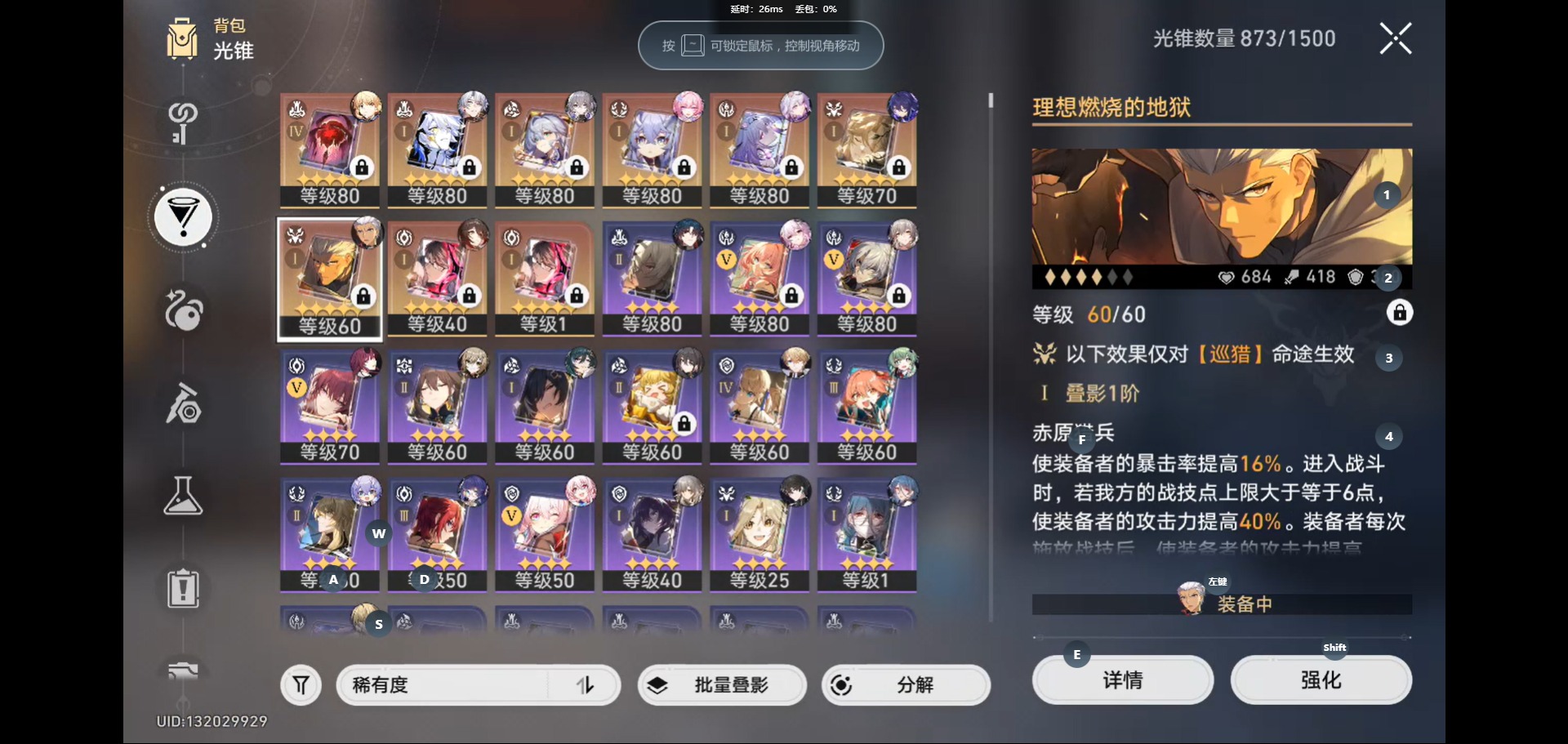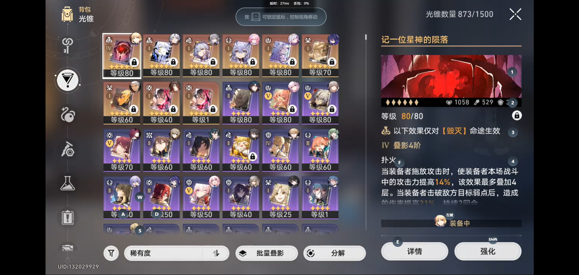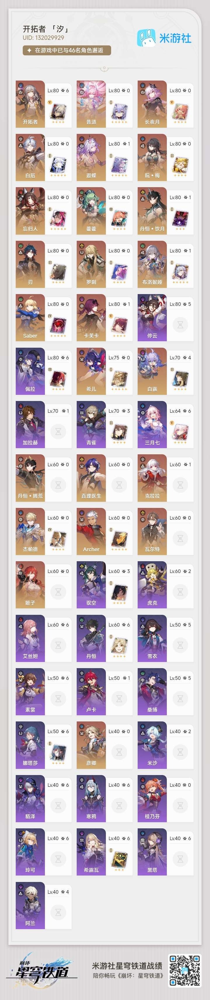 [14377664]【总黄数】:33 【4命金色角色】:4命白露 【1命金色角色】:1命遐蝶1命卡芙卡1命布洛妮娅1命克拉拉1命丹恒•饮月 【0命金色角色】:0命希儿0命忘归人0命白厄0命saber0命archer0命长夜月0命丹恒·腾荒0命彦卿0命姬子0命瓦尔特0命杰帕德0命罗刹0命刃0命藿藿0命阮•梅0命真理医生0命昔涟 【精4武器】:精4记一位星神的陨落 【精1武器】:精1让告别,更美一些精1黎明恰如此燃烧精1理想燃烧的地狱精1夜色流光溢彩精1时节不居精1如泥酣眠精1以世界之名