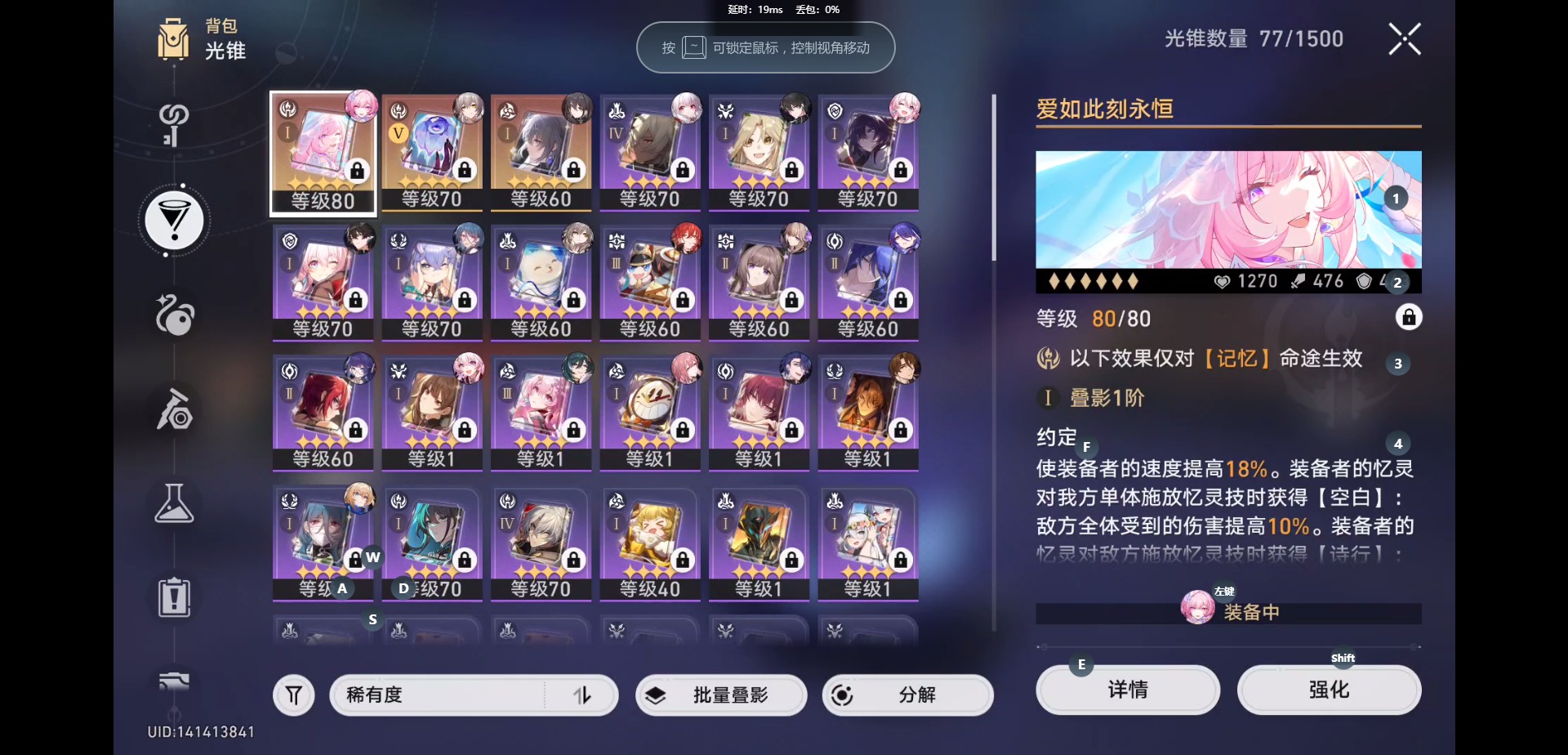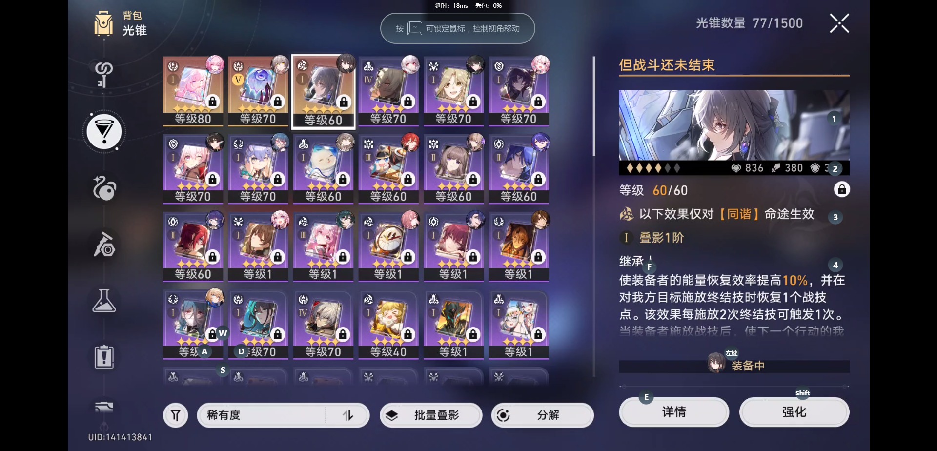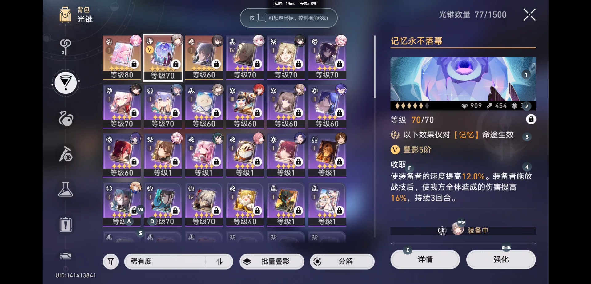 [14396978]【总黄数】:15 【6命金色角色】:6命昔涟 【2命金色角色】:2命姬子 【0命金色角色】:0命archer0命丹恒·腾荒0命彦卿0命克拉拉0命刃0命阮•梅0命真理医生0命黄泉 【精5武器】:精5记忆永不落幕 【精1武器】:精1但战斗还未结束精1爱如此刻永恒