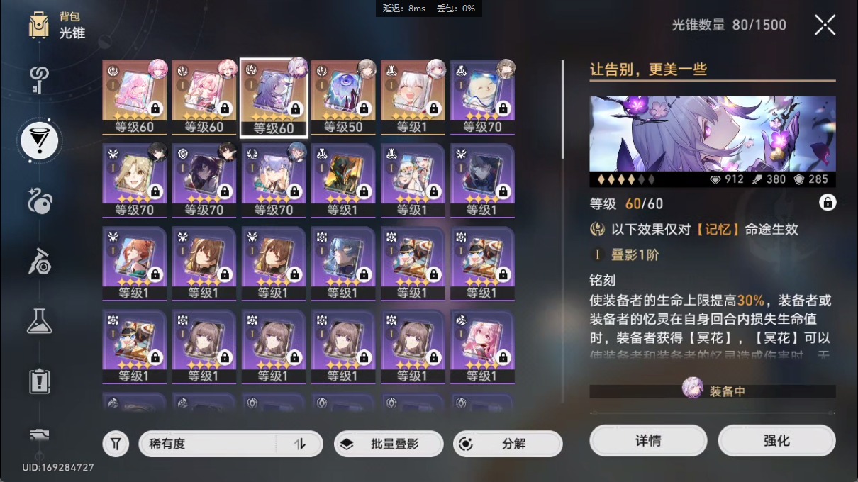 [14399719]【总黄数】:14 【0命金色角色】:0命遐蝶0命风堇0命丹恒·腾荒0命姬子0命瓦尔特0命克拉拉0命阮•梅0命昔涟 【精1武器】:精1记忆永不落幕精1让告别,更美一些精1愿虹光永驻天空精1无可取代的东西精1爱如此刻永恒