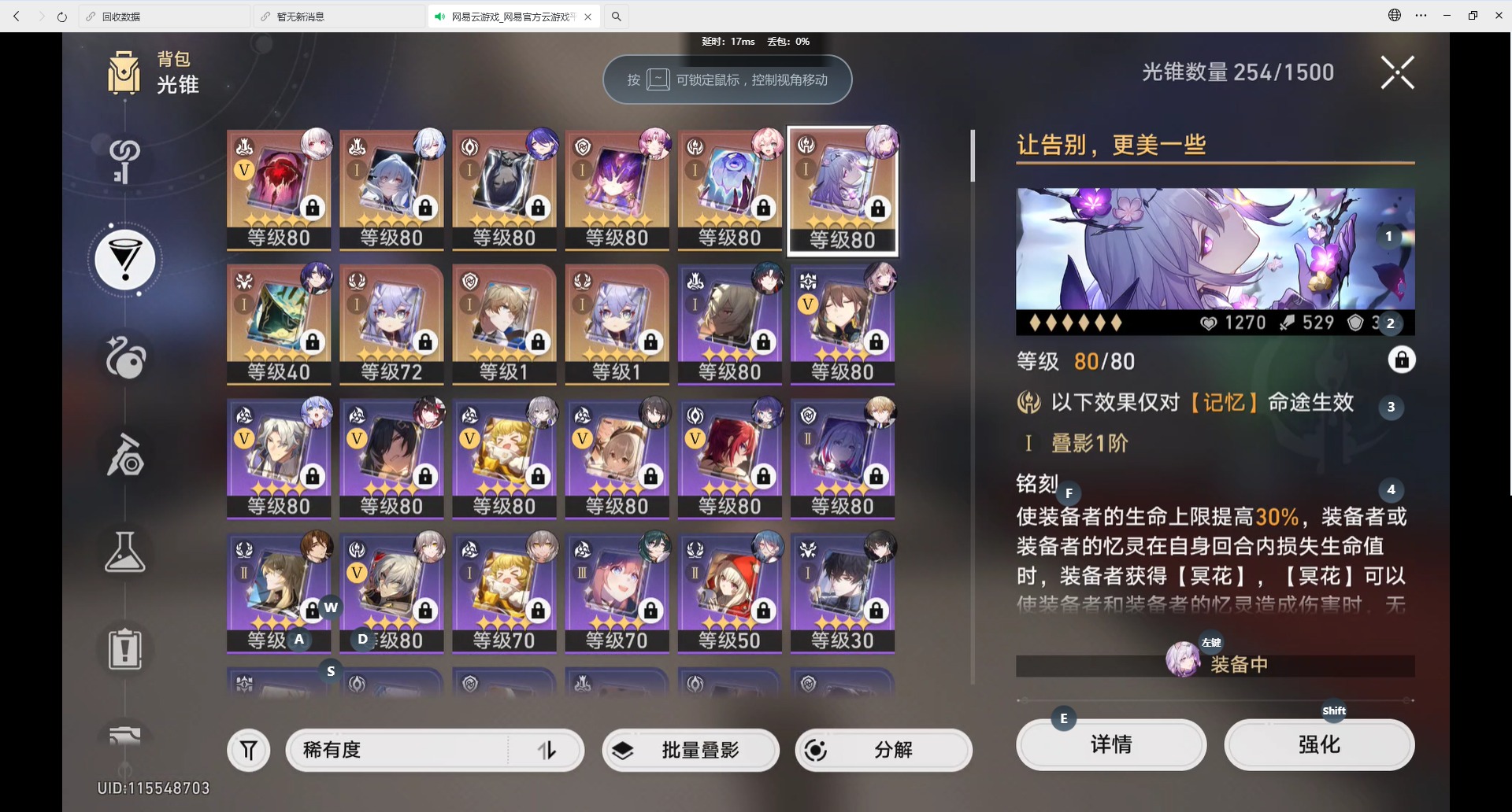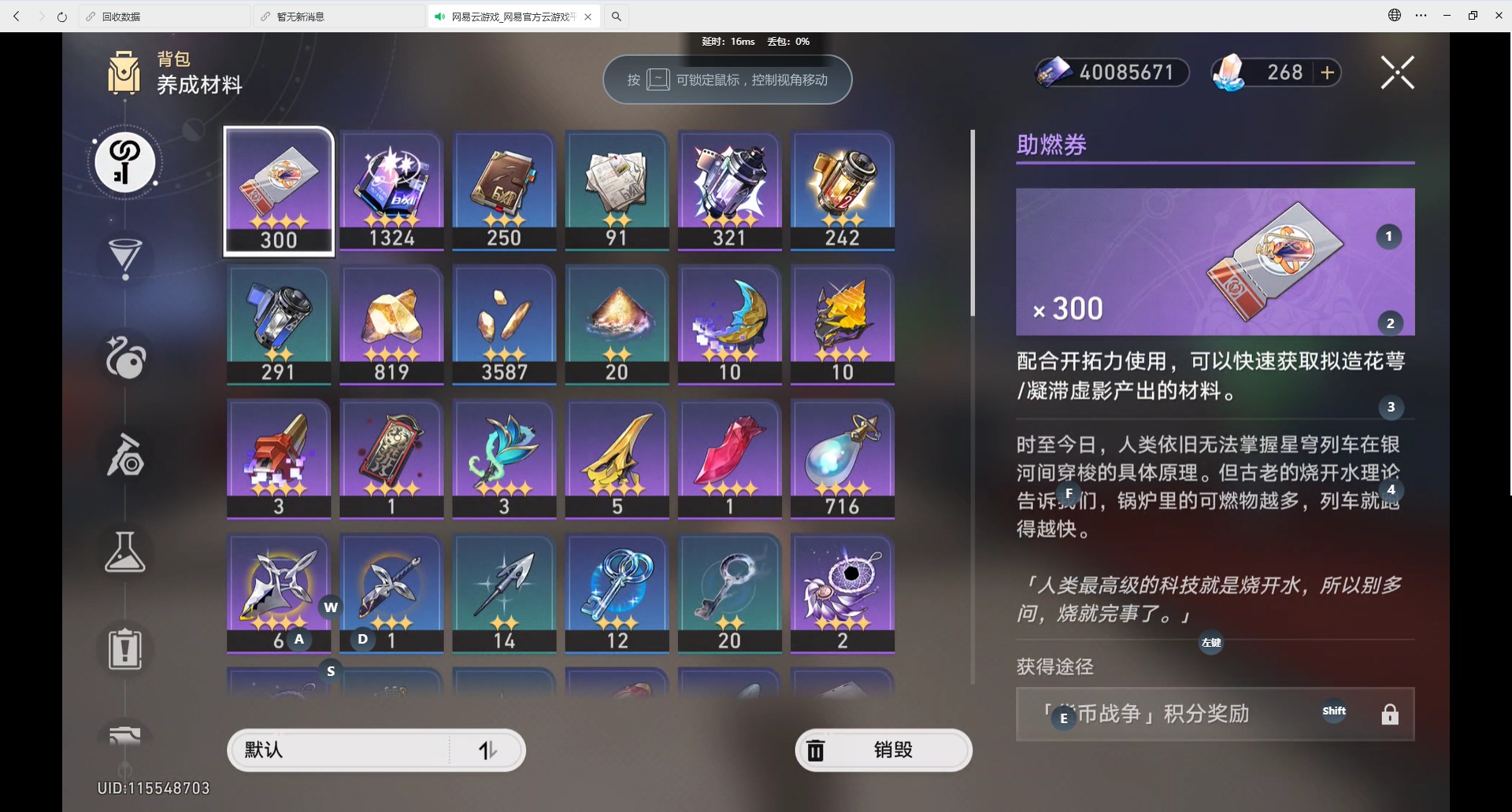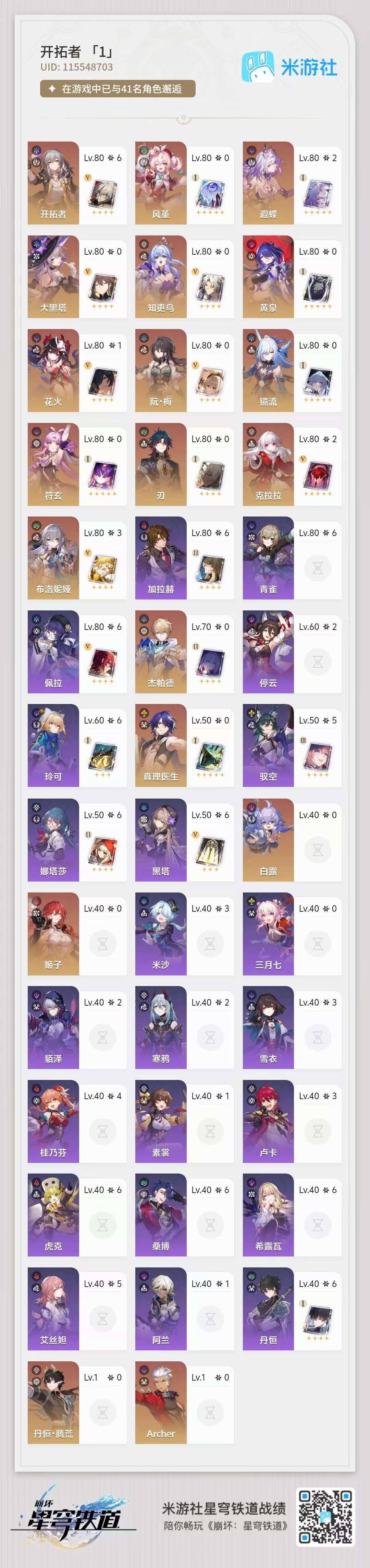 [14400633]【总黄数】:30 【3命金色角色】:3命布洛妮娅 【2命金色角色】:2命遐蝶2命克拉拉 【1命金色角色】:1命花火 【0命金色角色】:0命大黑塔0命风堇0命archer0命丹恒·腾荒0命白露0命姬子0命杰帕德0命刃0命知更鸟0命符玄0命镜流0命阮•梅0命真理医生0命黄泉 【精5武器】:精5记一位星神的陨落 【精1武器】:精1记忆永不落幕精1让告别,更美一些精1她已闭上双眼精1时节不居精1制胜的瞬间精1此身为剑精1星海巡航精1行于流逝的岸