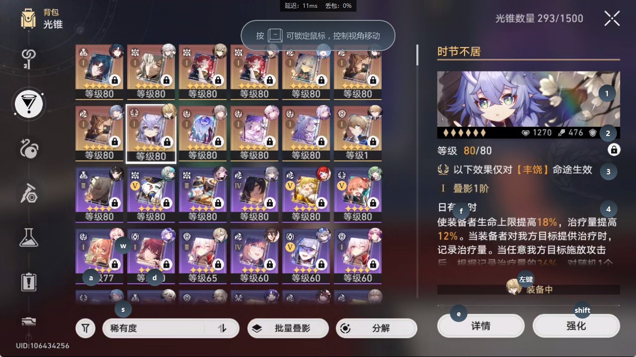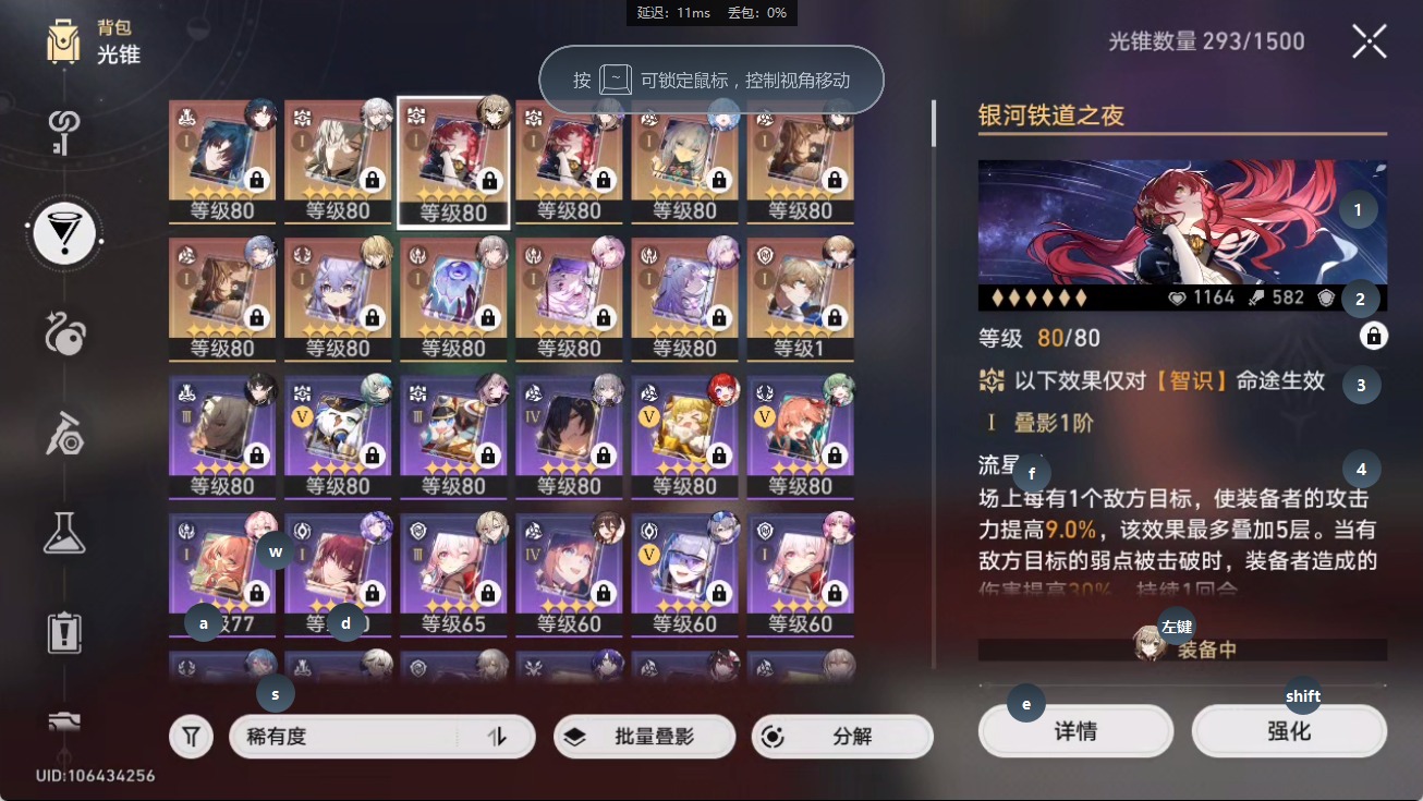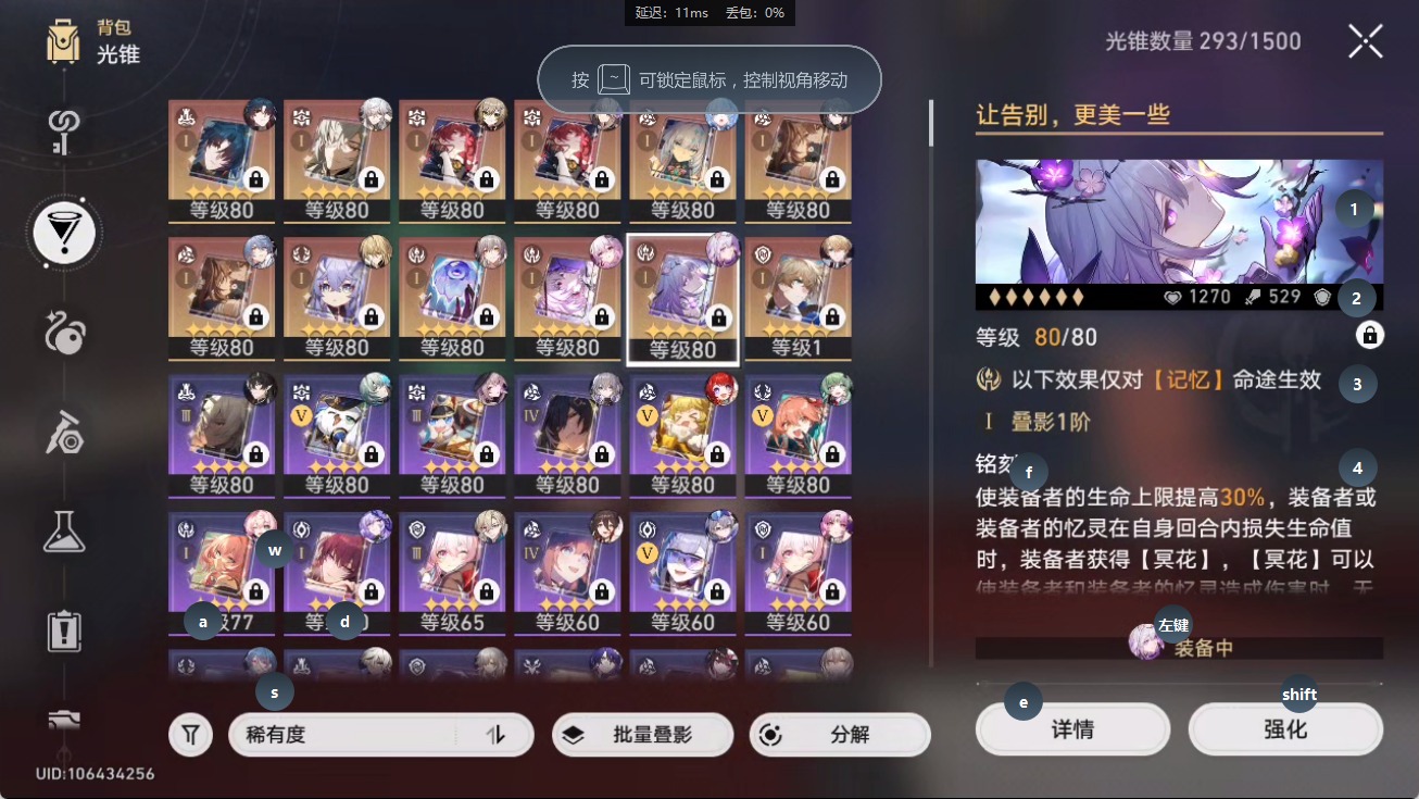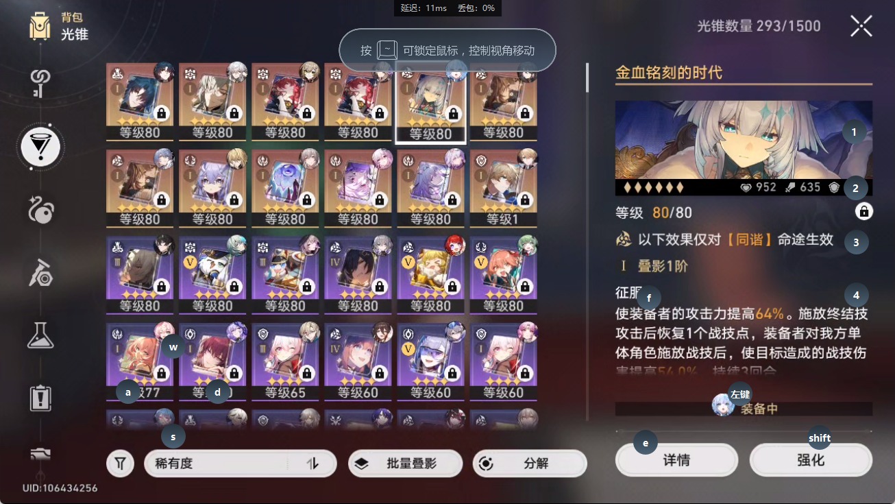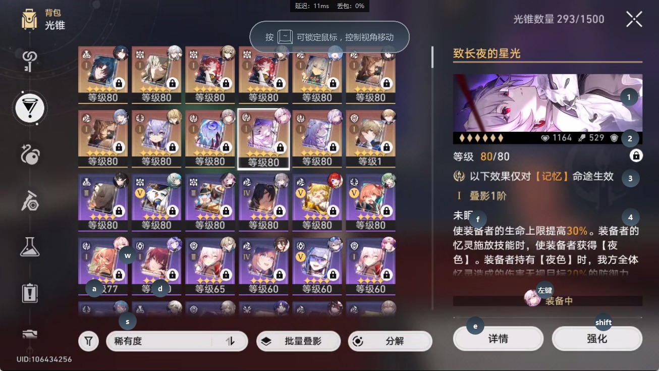 [14402144]【总黄数】:36 【5命金色角色】:5命遐蝶 【3命金色角色】:3命布洛妮娅3命克拉拉 【2命金色角色】:2命白露 【1命金色角色】:1命长夜月1命杰帕德1命刃 【0命金色角色】:0命星期日0命大黑塔0命缇宝0命那刻夏0命风堇0命archer0命刻律德菈0命景元0命姬子0命银狼0命罗刹0命丹恒•饮月0命符玄0命藿藿0命阮•梅0命真理医生0命黑天鹅0命花火0命砂金 【精1武器】:精1拂晓之前精1记忆永不落幕精1让告别,更美一些精1金血铭刻的时代精1致长夜的星光精1时节不居精1制胜的瞬间精1银河铁道之夜精1到不了的彼岸精1镜中故我