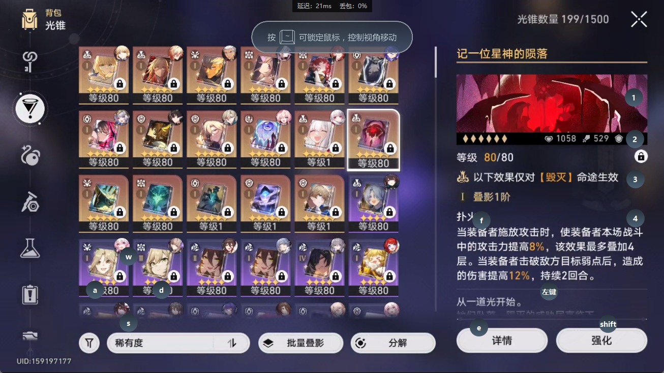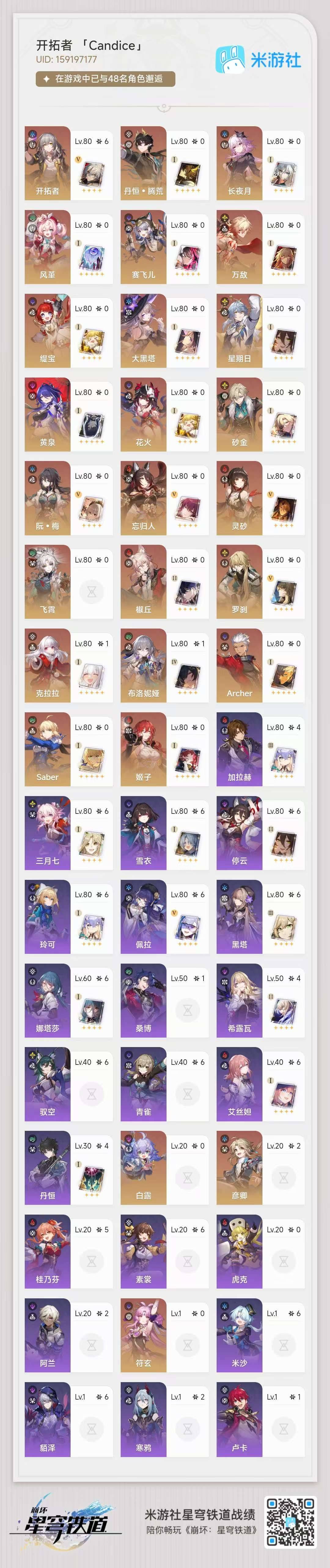 [14402153]【总黄数】:42 【2命金色角色】:2命彦卿 【1命金色角色】:1命布洛妮娅1命克拉拉 【0命金色角色】:0命万敌0命飞霄0命椒丘0命灵砂0命星期日0命忘归人0命大黑塔0命缇宝0命风堇0命赛飞儿0命saber0命archer0命长夜月0命丹恒·腾荒0命白露0命姬子0命罗刹0命符玄0命阮•梅0命花火0命黄泉0命砂金 【精1武器】:精1记忆永不落幕精1不息的演算精1向着不可追问处精1血火啊,燃烧前路精1没有回报的加冕精1理想燃烧的地狱精1纵然山河万程精1制胜的瞬间精1以世界之名精1无可取代的东西精1银河铁道之夜精1命运从未公平精1记忆的质料精1孤独的疗愈精1记一位星神的陨落精1星海巡航精1行于流逝的岸