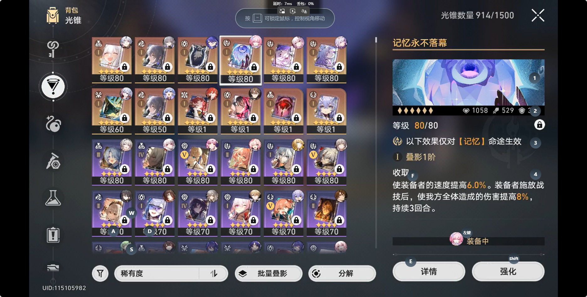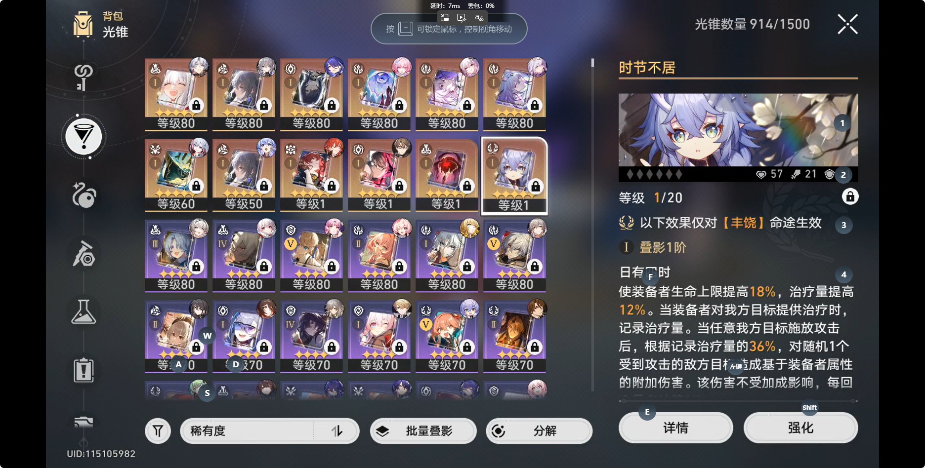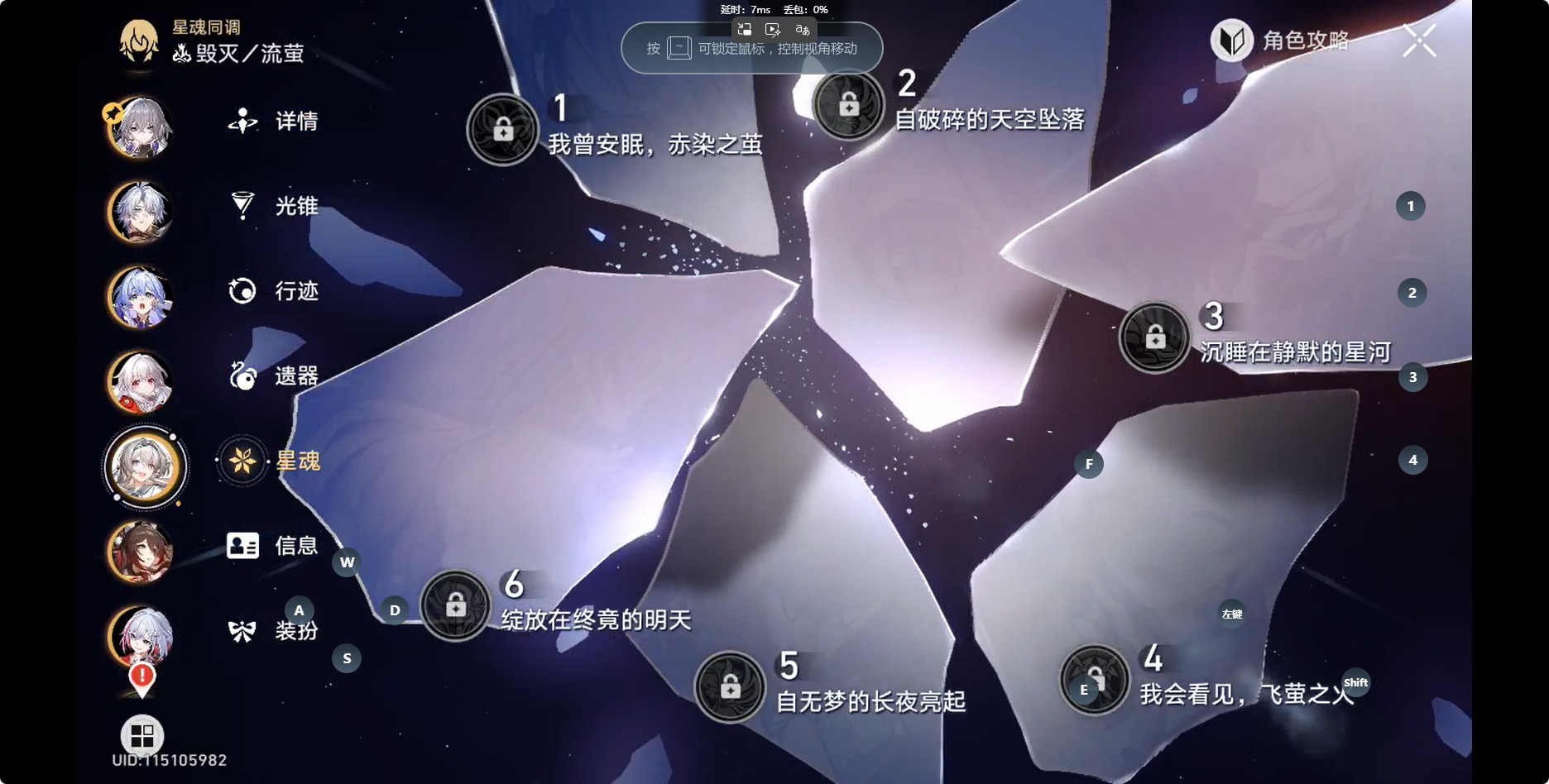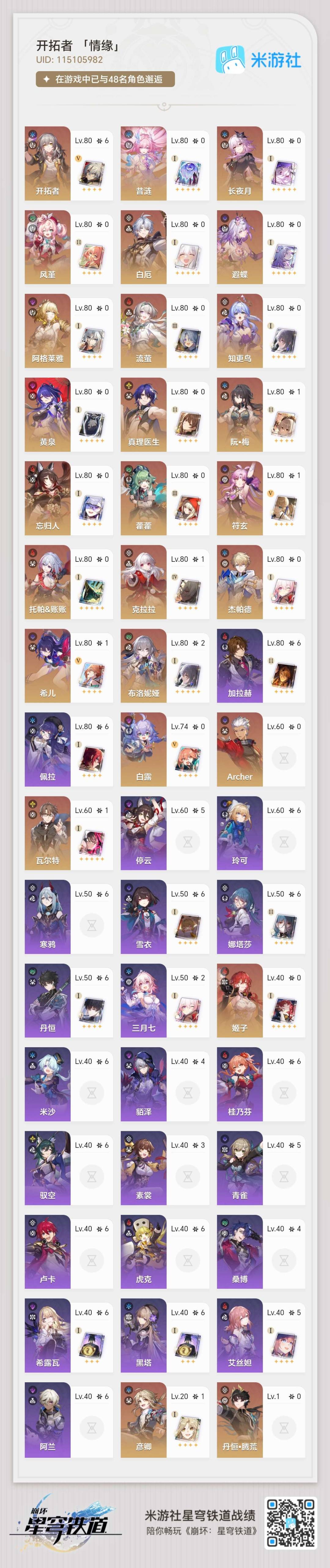 [14524267]【总黄数】:39 【1命金色角色】:1命希儿1命彦卿1命瓦尔特1命克拉拉1命符玄1命阮•梅 【0命金色角色】:0命忘归人0命阿格莱雅0命遐蝶0命流萤0命风堇0命白厄0命archer0命长夜月0命丹恒·腾荒0命白露0命姬子0命杰帕德0命知更鸟0命托帕账账0命藿藿0命真理医生0命黄泉0命昔涟 【精1武器】:精1记忆永不落幕精1让告别,更美一些精1致长夜的星光精1时节不居精1以世界之名精1但战斗还未结束精1无可取代的东西精1银河铁道之夜精1记一位星神的陨落精1星海巡航精1行于流逝的岸
