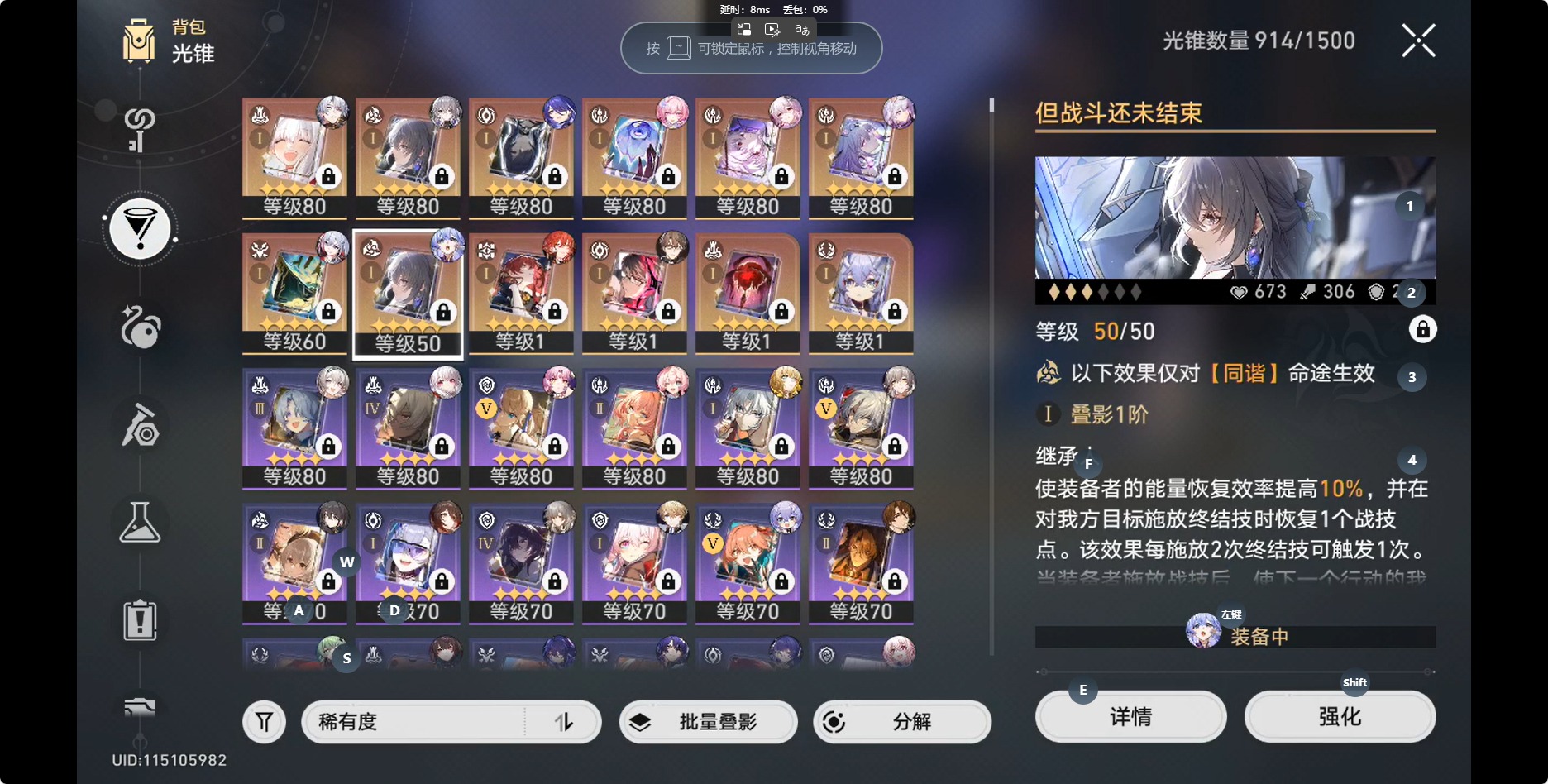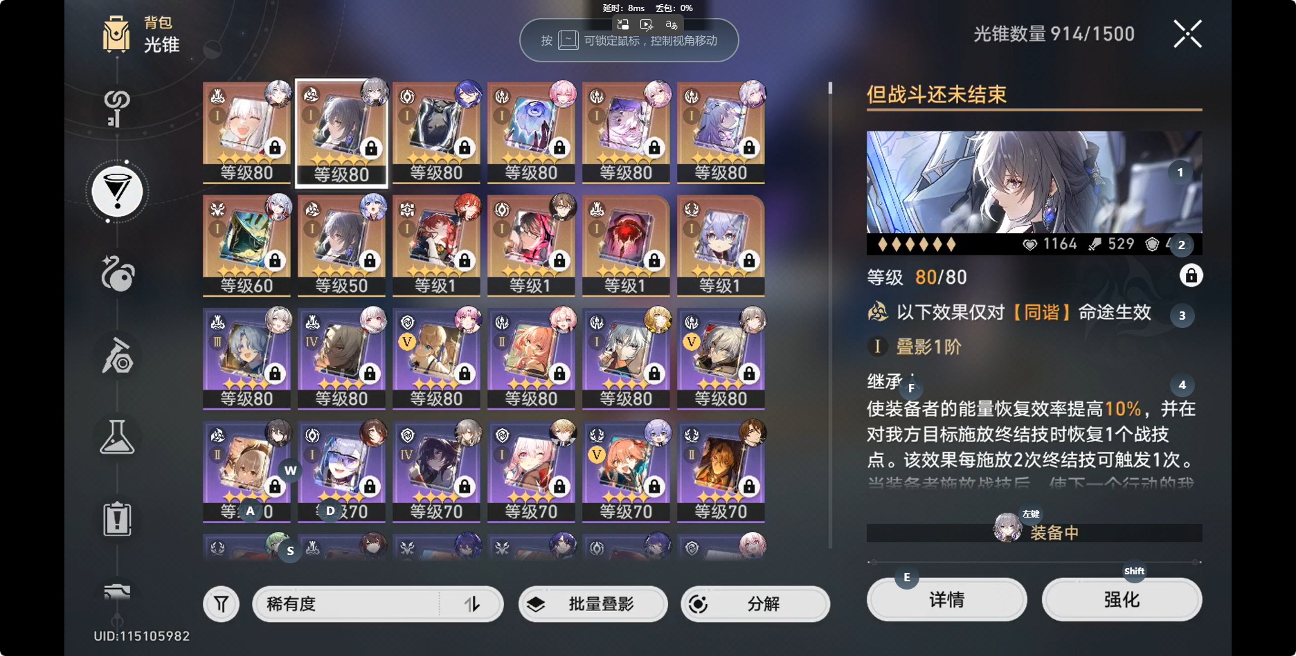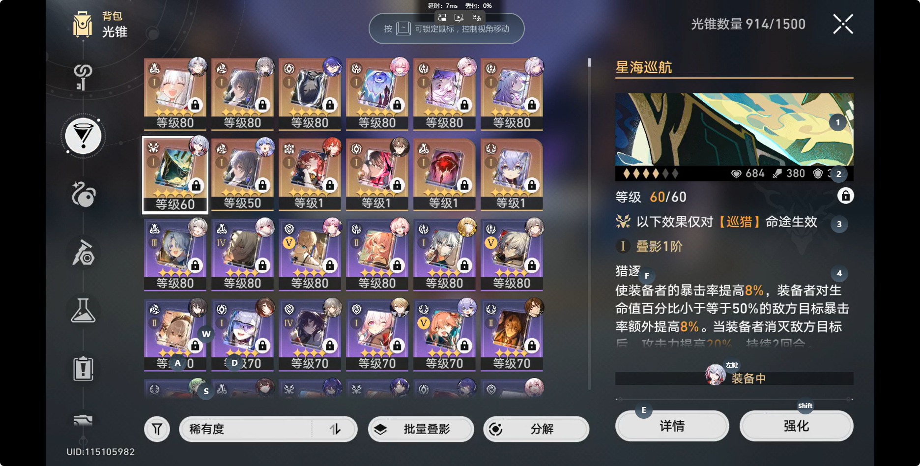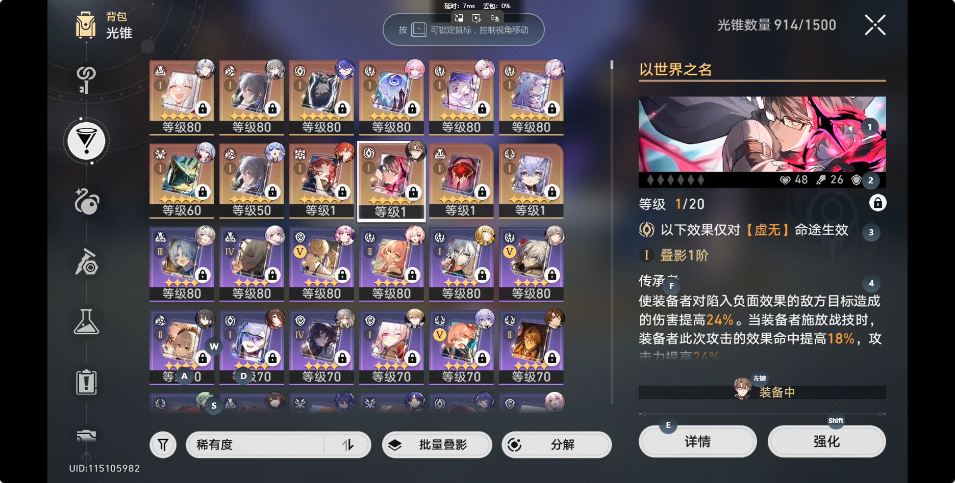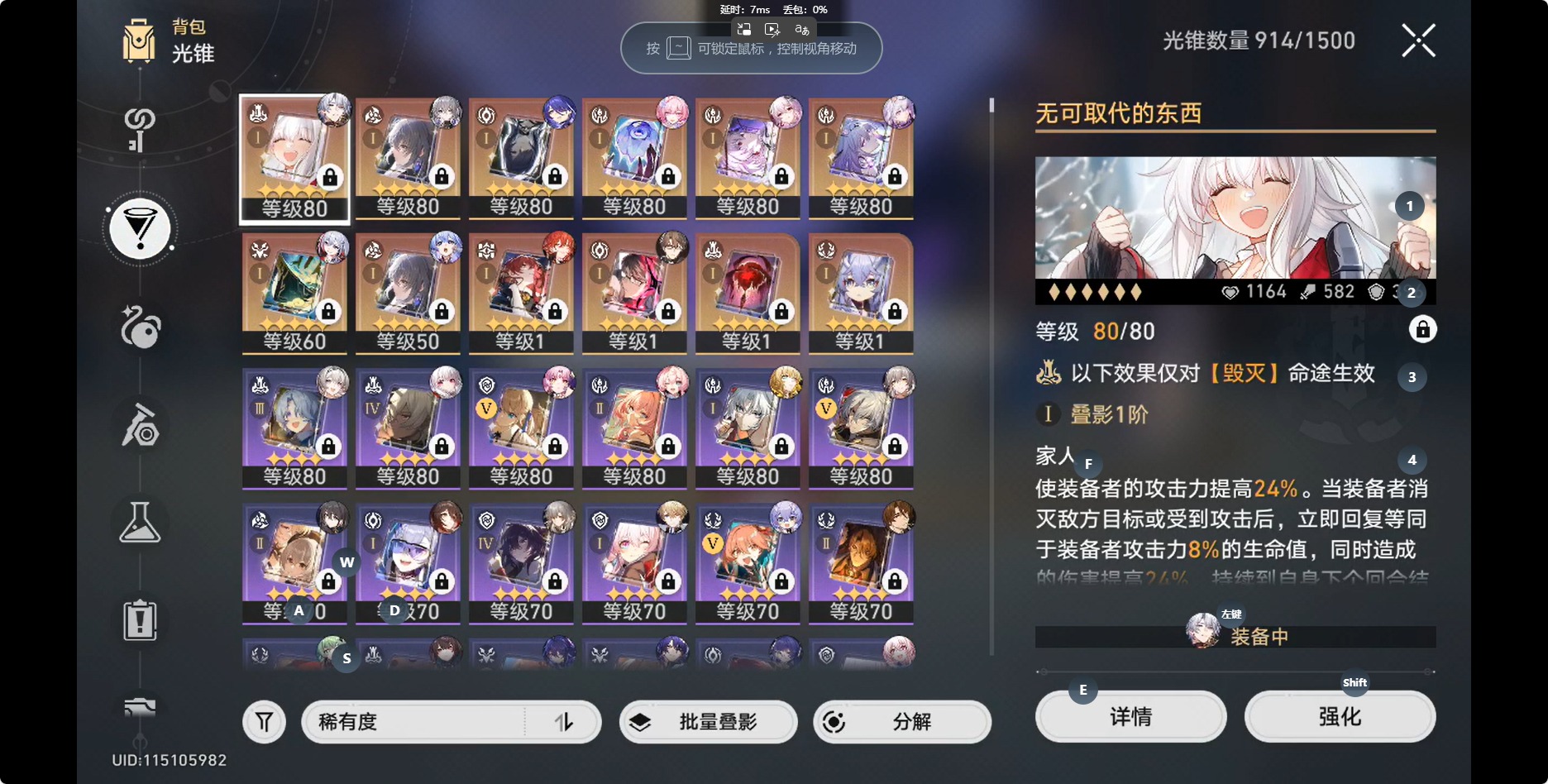 [14524267]【总黄数】:39 【1命金色角色】:1命希儿1命彦卿1命瓦尔特1命克拉拉1命符玄1命阮•梅 【0命金色角色】:0命忘归人0命阿格莱雅0命遐蝶0命流萤0命风堇0命白厄0命archer0命长夜月0命丹恒·腾荒0命白露0命姬子0命杰帕德0命知更鸟0命托帕账账0命藿藿0命真理医生0命黄泉0命昔涟 【精1武器】:精1记忆永不落幕精1让告别,更美一些精1致长夜的星光精1时节不居精1以世界之名精1但战斗还未结束精1无可取代的东西精1银河铁道之夜精1记一位星神的陨落精1星海巡航精1行于流逝的岸