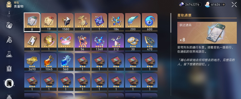 [14822410]m24373,60级男主4黄星琼61624星轨专票19星轨通票83个五星角色:1命白露丹恒腾荒姬子