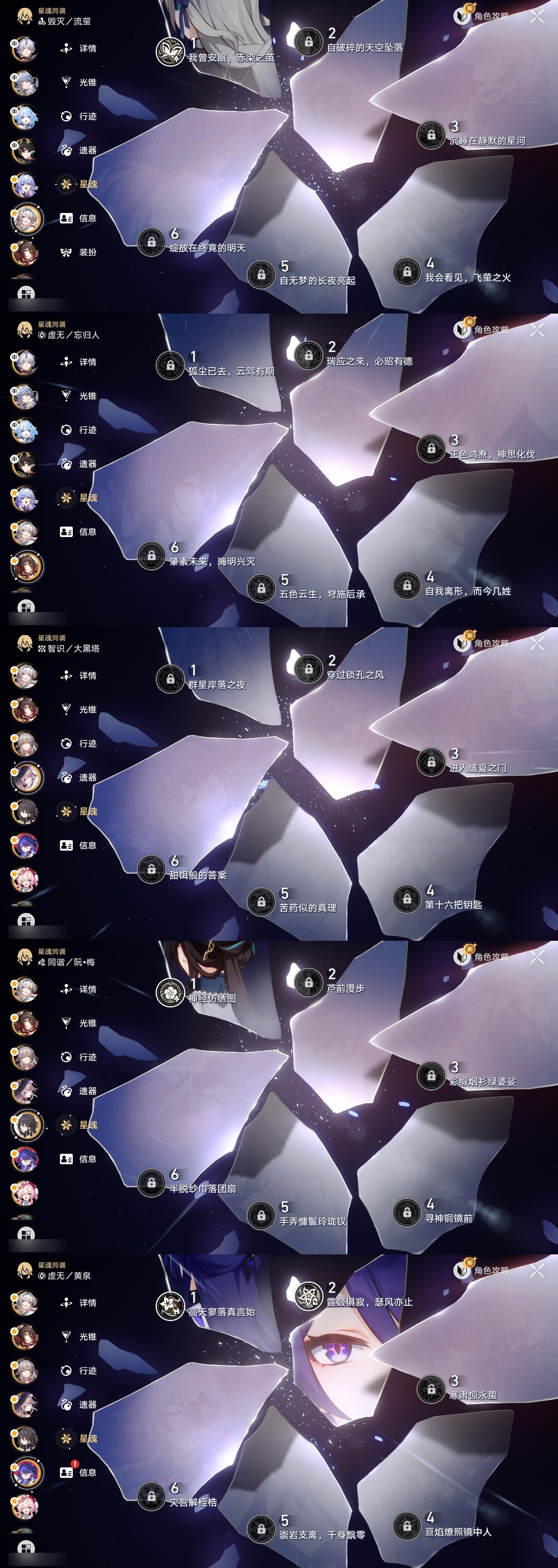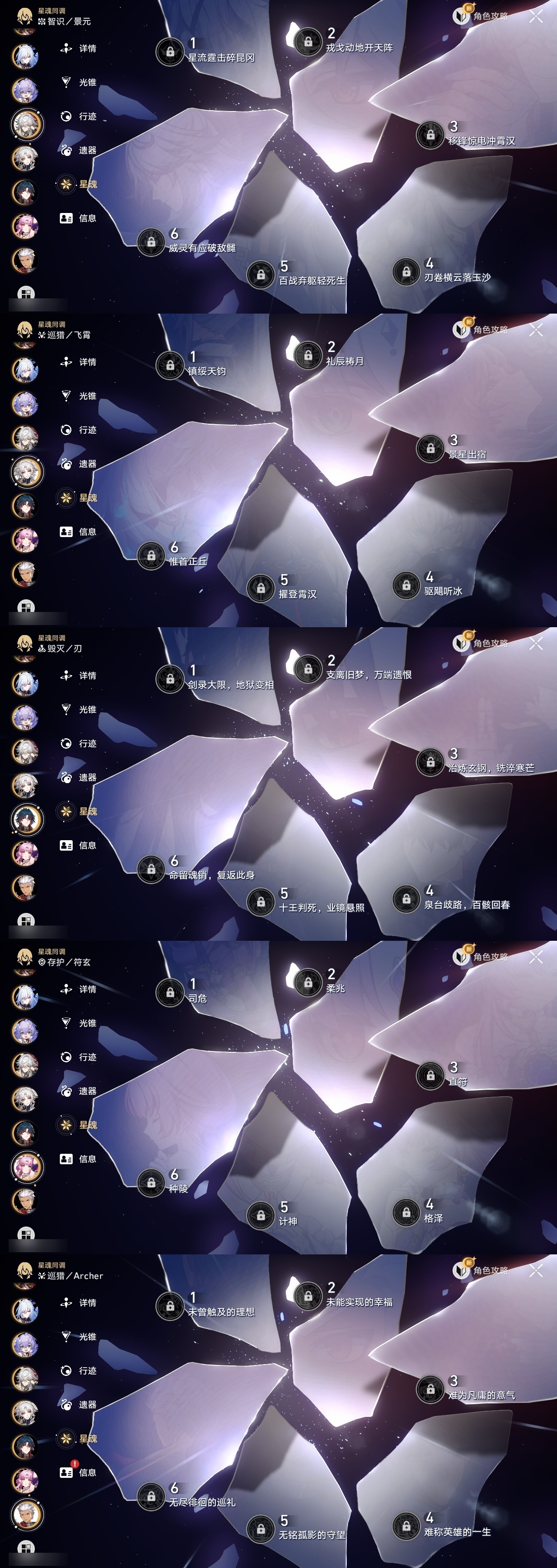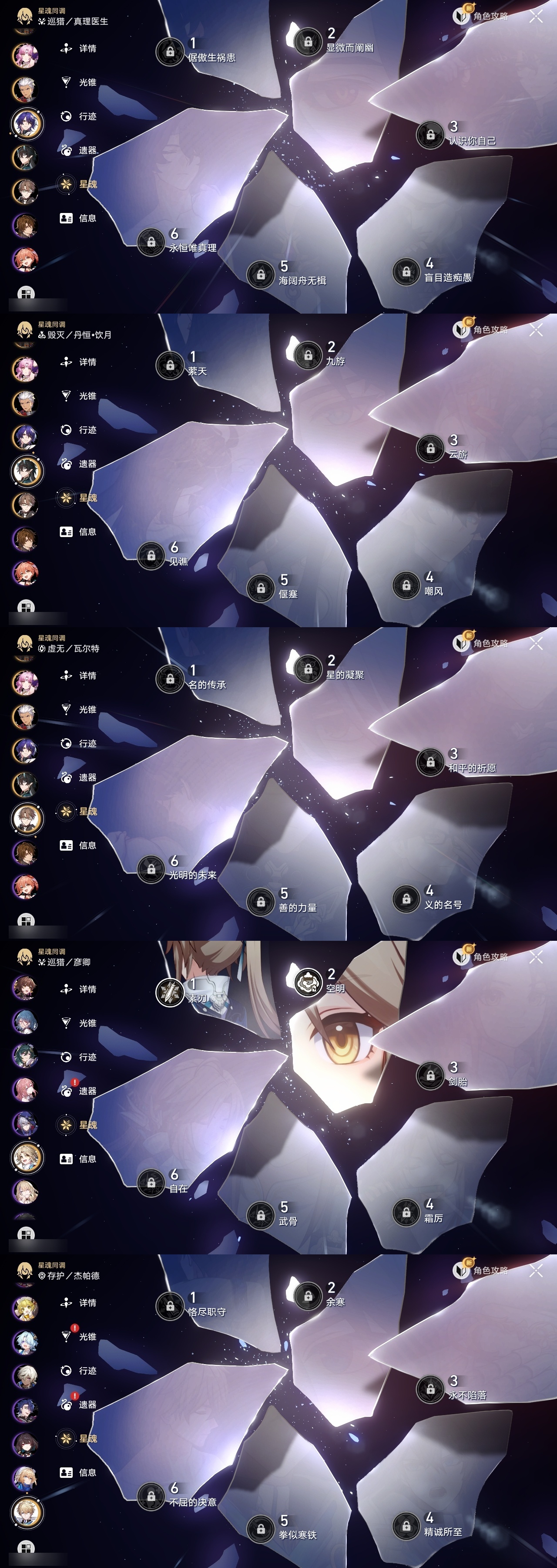 【崩坏·星穹铁道】【lyxq8370】冒险等级:70,女主,五星数量:46,五星角色:布洛妮娅 6命姬子 3命彦卿 2命克拉拉 2命黄泉 2命白厄 2命流萤 1命云璃飞霄景元白露杰帕德瓦尔特星期日大黑塔忘归人刃丹恒·饮月遐蝶符玄镜流藿藿真理医生风堇砂金知更鸟archer刻律德菈丹恒·腾荒__五星光锥:星海巡航 5精记一位星神的陨落 5精记忆永不落幕 5精记忆的质料 2精如泥酣眠 2精制胜的瞬间银河铁道之夜以世界之名但战斗还未结束拂晓之前此身为剑纯粹思维的洗礼行于流逝的岸夜色流光溢彩黎明恰如此燃烧理想燃烧的地狱梦应归于何处__四星角色:娜塔莎 6命虎克 6命黑塔 6命丹恒 6命艾丝妲 6命希露瓦 6命停云 6命桑博 6命三月七 6命青雀 6命佩拉 6命驭空 6命卢卡 6命玲可 6命桂乃芬 6命雪衣 6命米沙 6命加拉赫 6命阿兰 5命貊泽 3命素裳 3命寒鸦 2命
