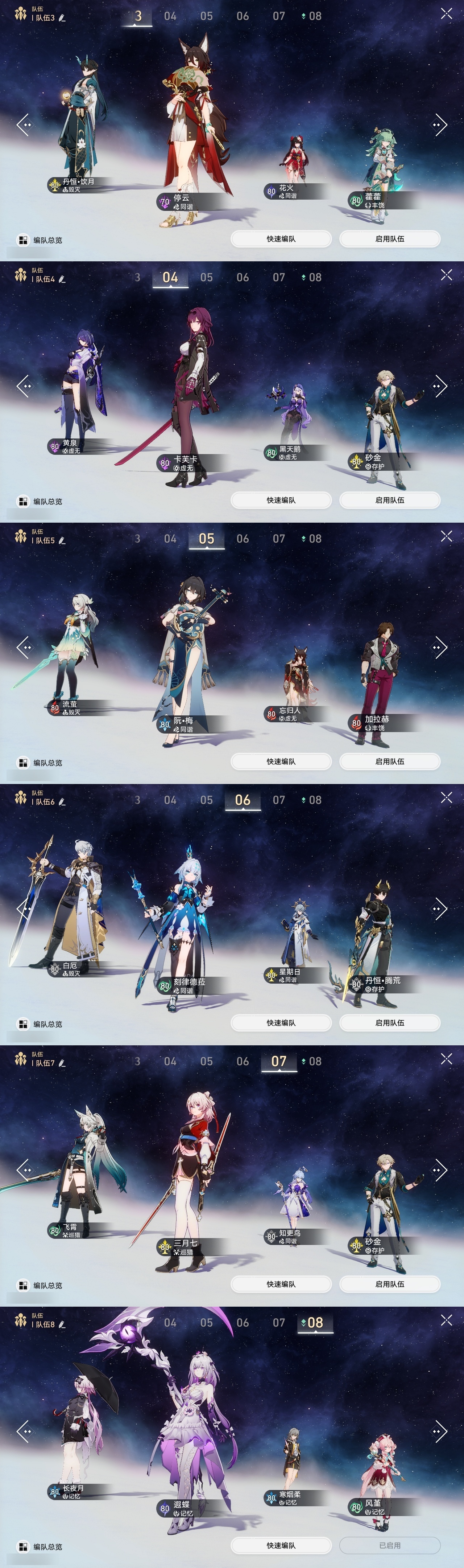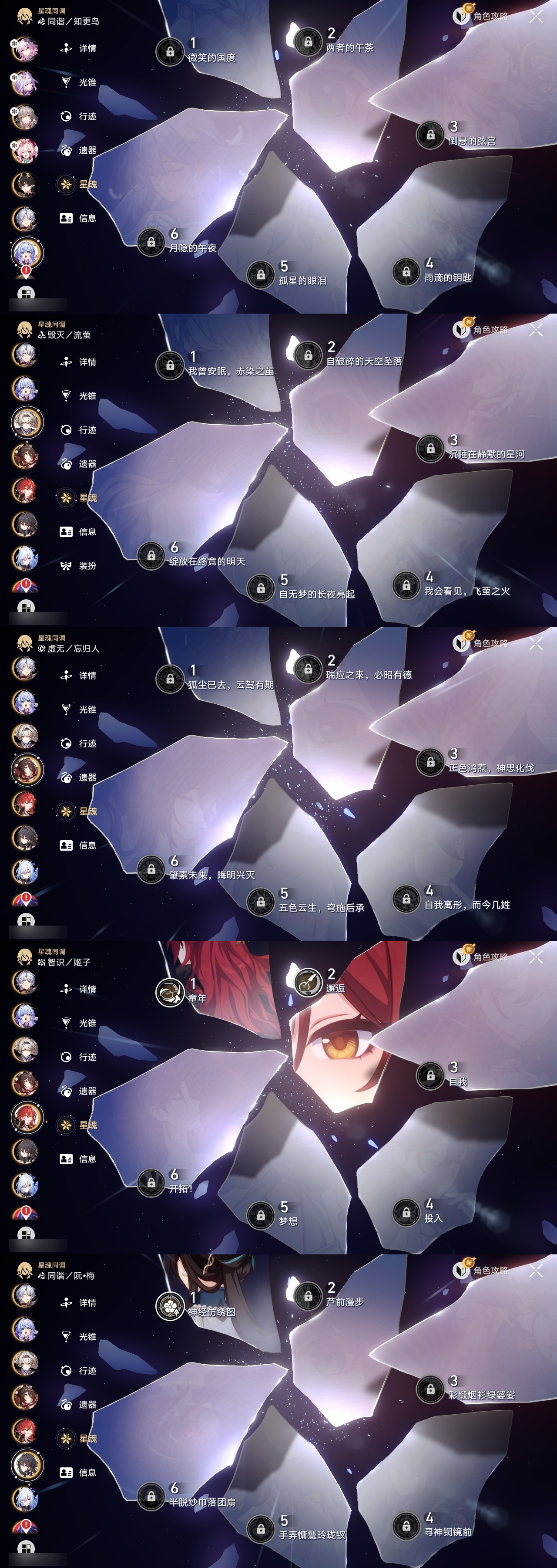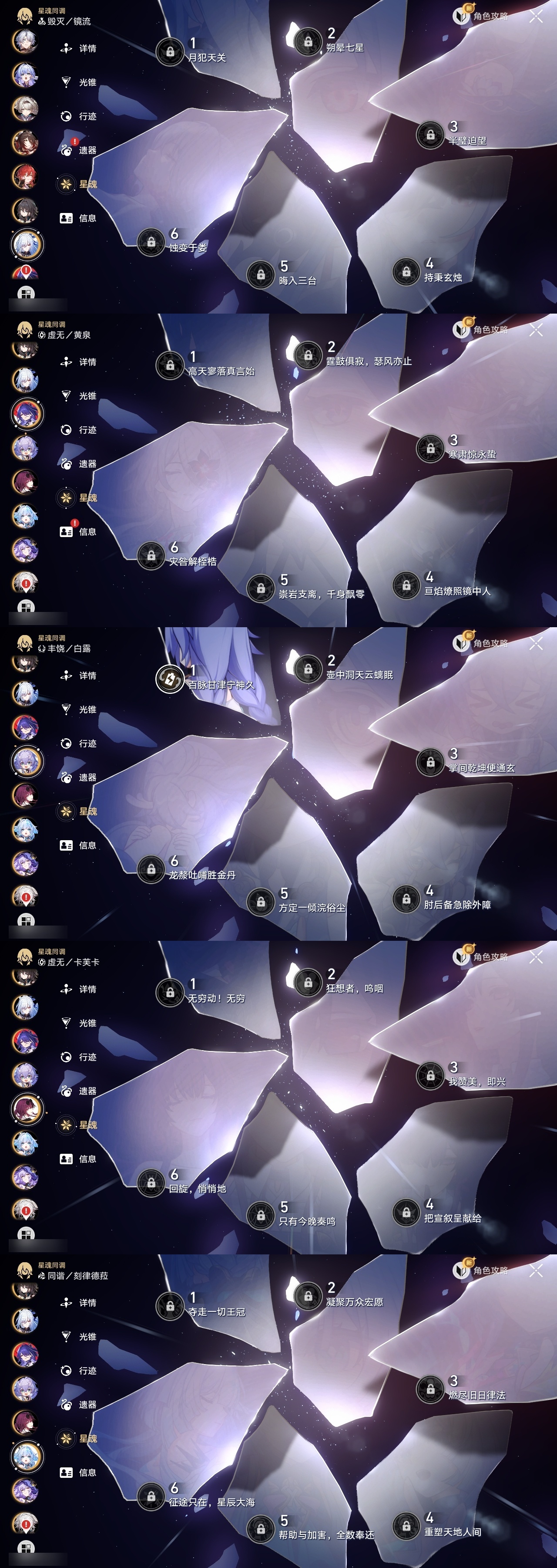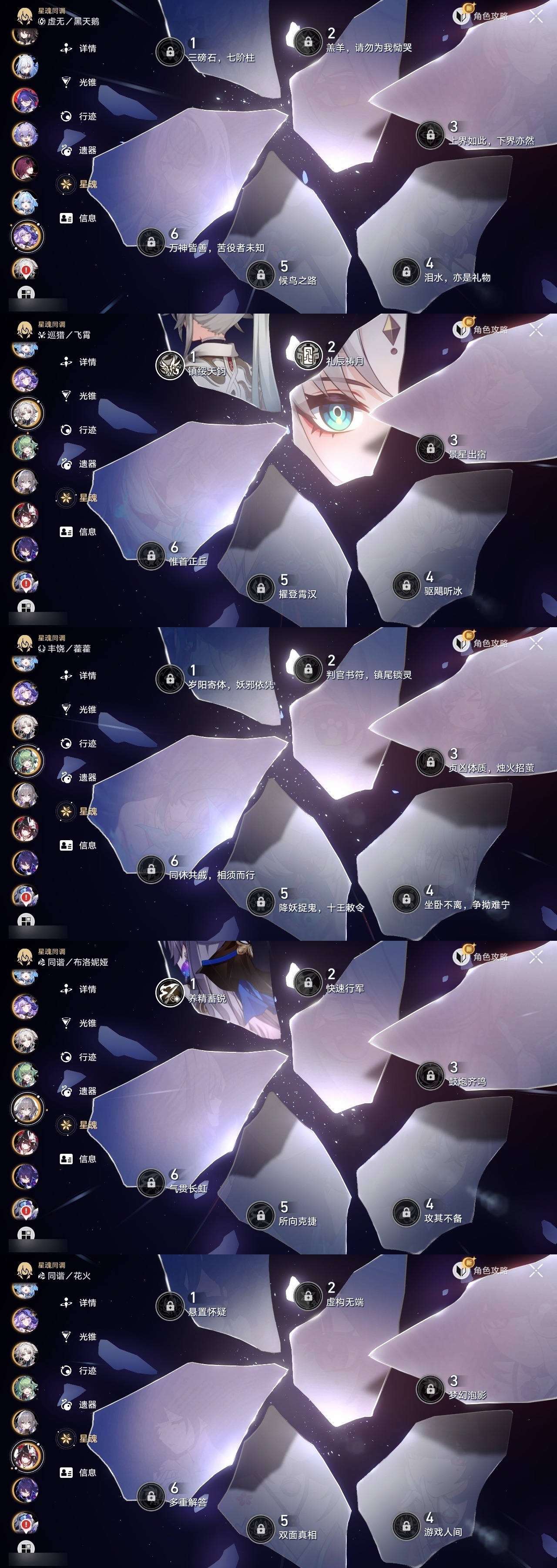 【崩坏·星穹铁道】【lyxq8450】冒险等级:70,女主,五星数量:50,五星角色:瓦尔特 4命克拉拉 3命飞霄 2命姬子 2命遐蝶 2命白露 1命布洛妮娅 1命杰帕德 1命彦卿 1命长夜月 1命银狼希儿星期日忘归人卡芙卡丹恒·饮月镜流藿藿真理医生黑天鹅花火黄泉风堇砂金知更鸟白厄archer刻律德菈丹恒·腾荒流萤__五星光锥:星海巡航 5精记一位星神的陨落 5精记忆永不落幕 5精制胜的瞬间 4精银河铁道之夜以世界之名时节不居但战斗还未结束但战斗还未结束雨一直下我将,巡征追猎回到大地的飞行只需等待比阳光更明亮的让告别,更美一些此身为剑镜中故我黎明恰如此燃烧理想燃烧的地狱梦应归于何处__四星角色:阿兰 6命娜塔莎 6命虎克 6命貊泽 6命黑塔 6命丹恒 6命艾丝妲 6命希露瓦 6命停云 6命桑博 6命三月七 6命青雀 6命佩拉 6命驭空 6命卢卡 6命玲可 6命桂乃芬 6命寒鸦 6命雪衣 6命米沙 6命加拉赫 6命素裳 4命