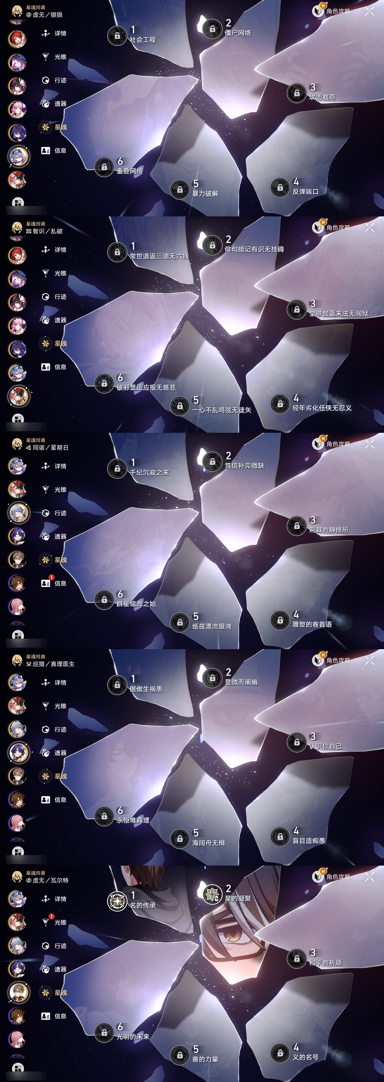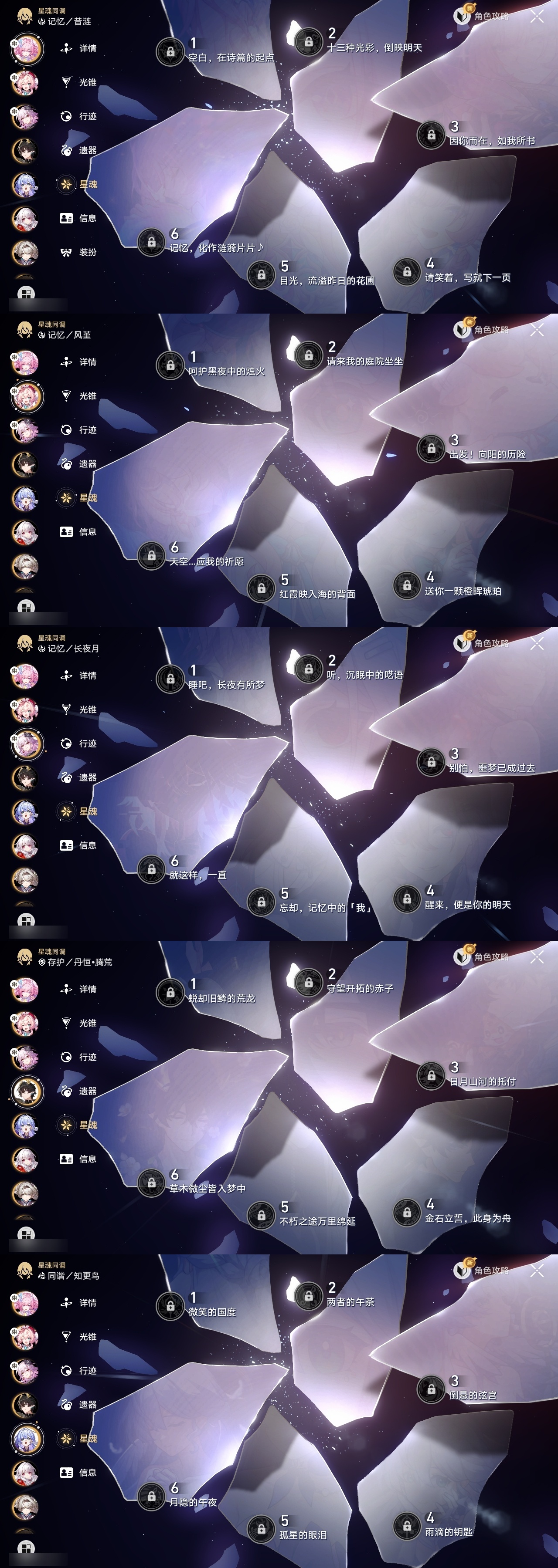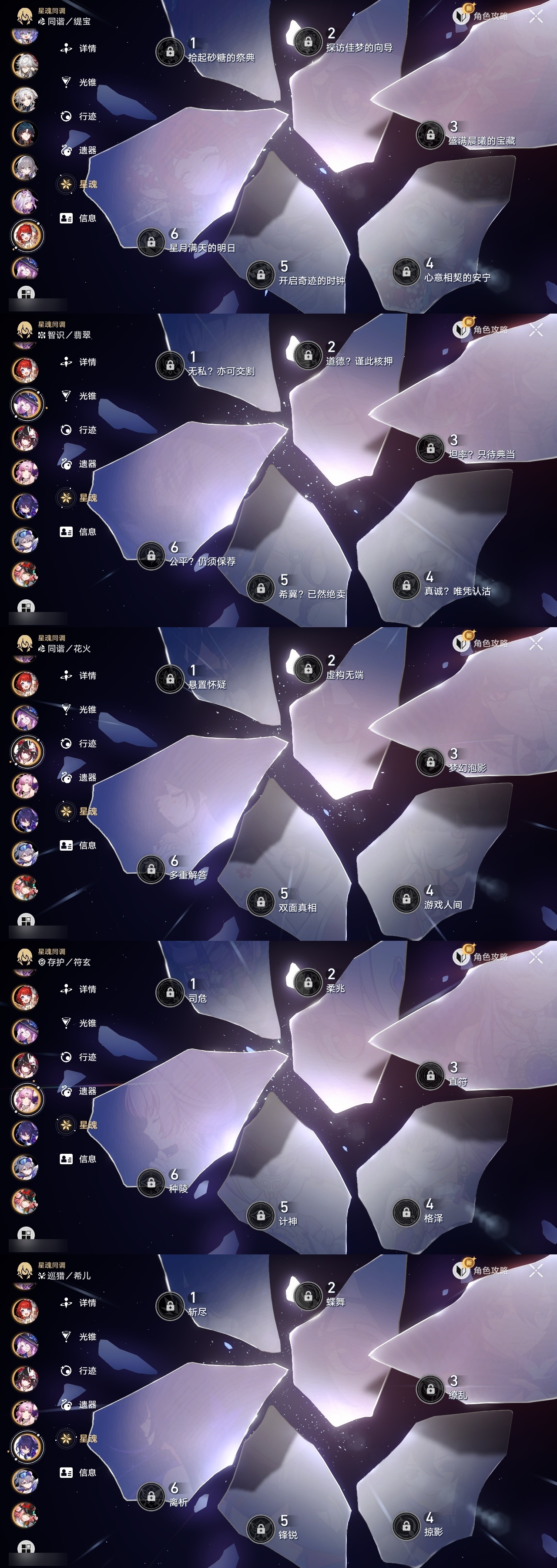 【崩坏·星穹铁道】【lyxq8498】冒险等级:70,女主,五星数量:49,五星角色:克拉拉 3命白露 2命彦卿 2命瓦尔特 2命布洛妮娅 1命杰帕德 1命刃 1命椒丘飞霄银狼景元希儿姬子灵砂乱破星期日大黑塔缇宝遐蝶符玄镜流真理医生花火黄泉风堇知更鸟archer长夜月丹恒·腾荒昔涟流萤翡翠__五星光锥:星海巡航 5精记忆的质料 5精记一位星神的陨落 5精孤独的疗愈 5精不息的演算 3精制胜的瞬间无可取代的东西如泥酣眠如泥酣眠但战斗还未结束于夜色中向着不可追问处到不了的彼岸让告别,更美一些行于流逝的岸愿虹光永驻天空记忆永不落幕__四星角色:阿兰 6命娜塔莎 6命虎克 6命貊泽 6命黑塔 6命丹恒 6命艾丝妲 6命希露瓦 6命停云 6命素裳 6命桑博 6命三月七 6命青雀 6命佩拉 6命驭空 6命卢卡 6命玲可 6命寒鸦 6命雪衣 6命米沙 6命加拉赫 6命桂乃芬 5命