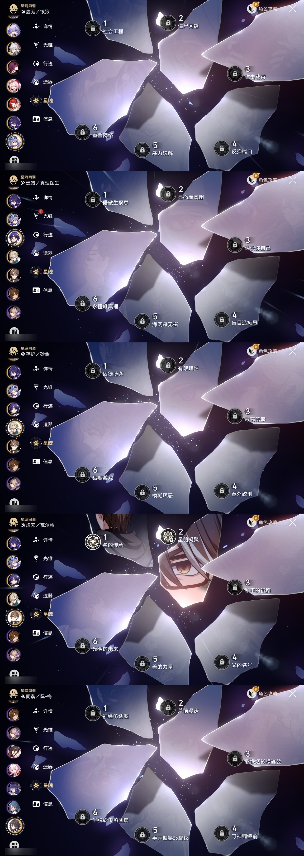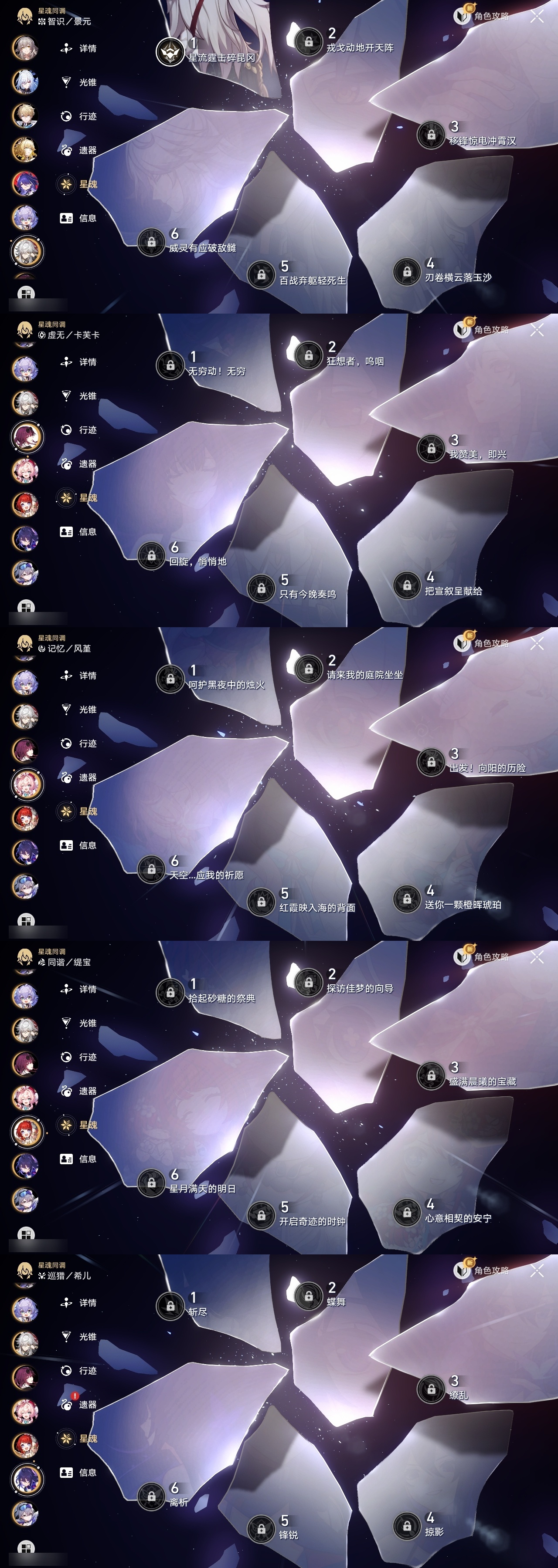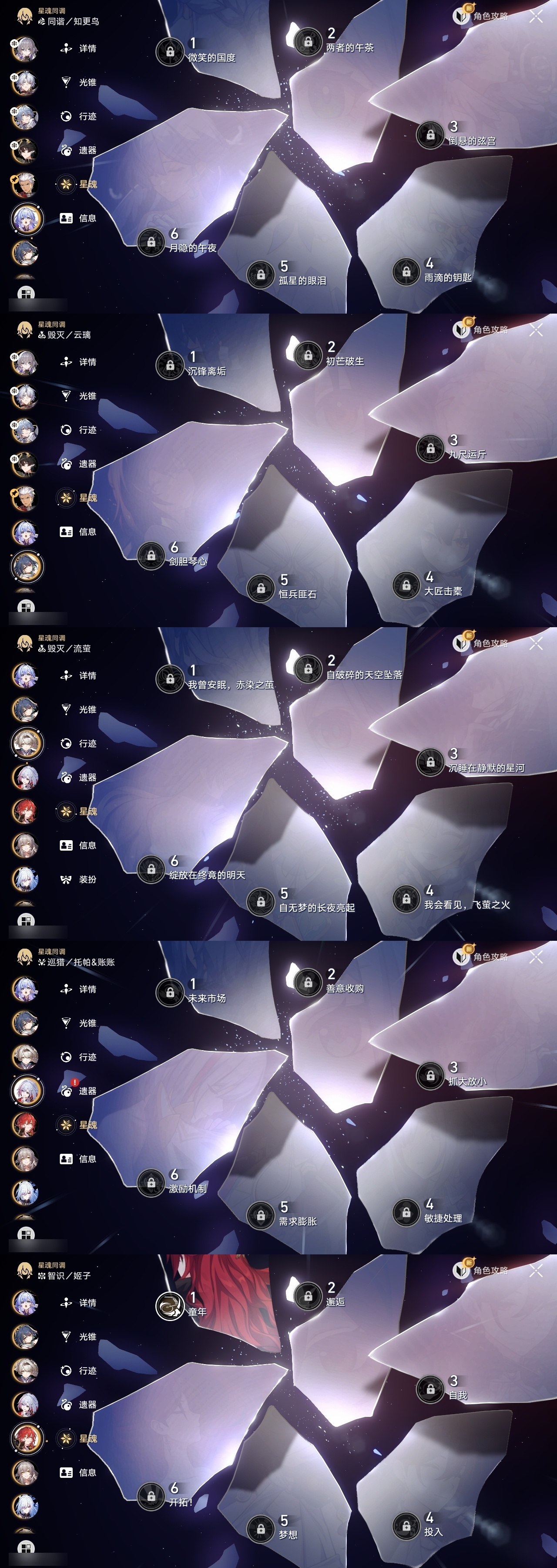 【崩坏·星穹铁道】【lyxq8479】冒险等级:70,女主,五星数量:40,五星角色:白露 4命瓦尔特 2命景元 1命布洛妮娅 1命姬子 1命杰帕德 1命云璃银狼希儿克拉拉星期日罗刹阿格莱雅缇宝卡芙卡符玄镜流托帕账账真理医生花火黄泉风堇砂金知更鸟白厄saberarcher丹恒·腾荒昔涟流萤__五星光锥:记一位星神的陨落 3精不息的演算 3精星海巡航 2精时节不居时节不居时节不居如泥酣眠孤独的疗愈记忆永不落幕黎明恰如此燃烧__四星角色:娜塔莎 6命虎克 6命黑塔 6命丹恒 6命艾丝妲 6命希露瓦 6命素裳 6命桑博 6命三月七 6命青雀 6命佩拉 6命驭空 6命卢卡 6命玲可 6命桂乃芬 6命寒鸦 6命雪衣 6命米沙 6命加拉赫 6命阿兰 5命停云 4命貊泽 3命