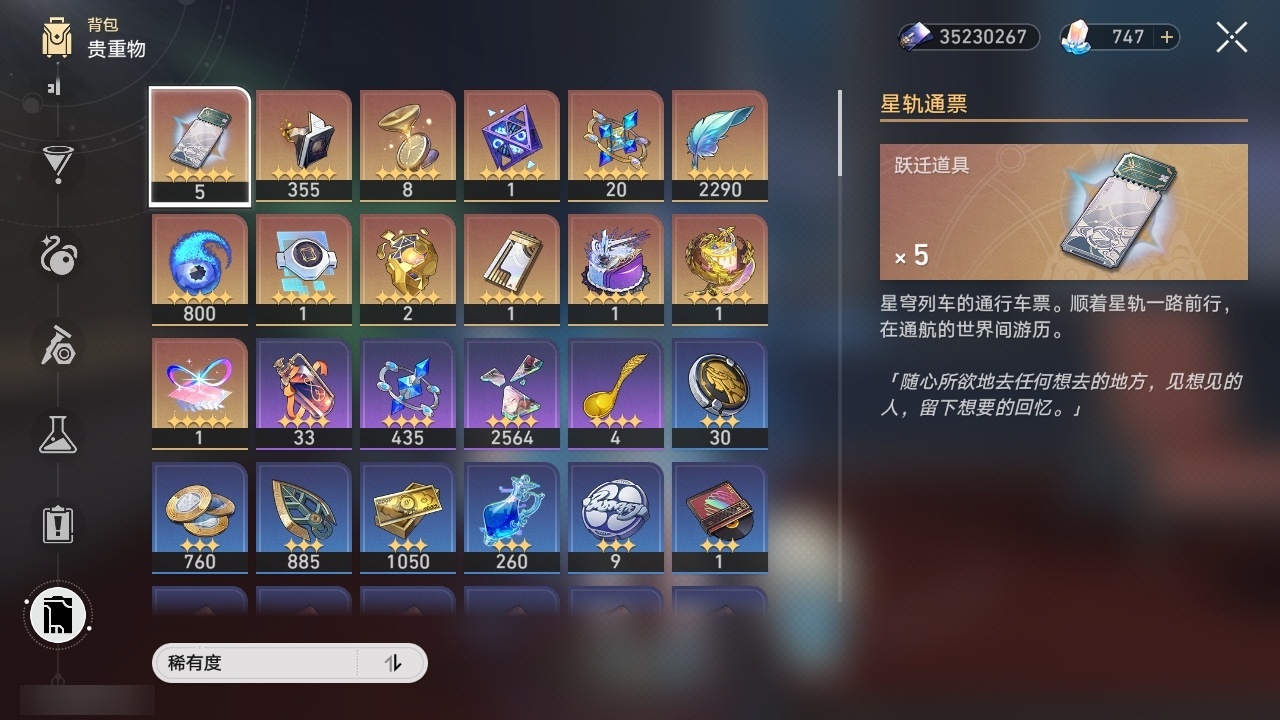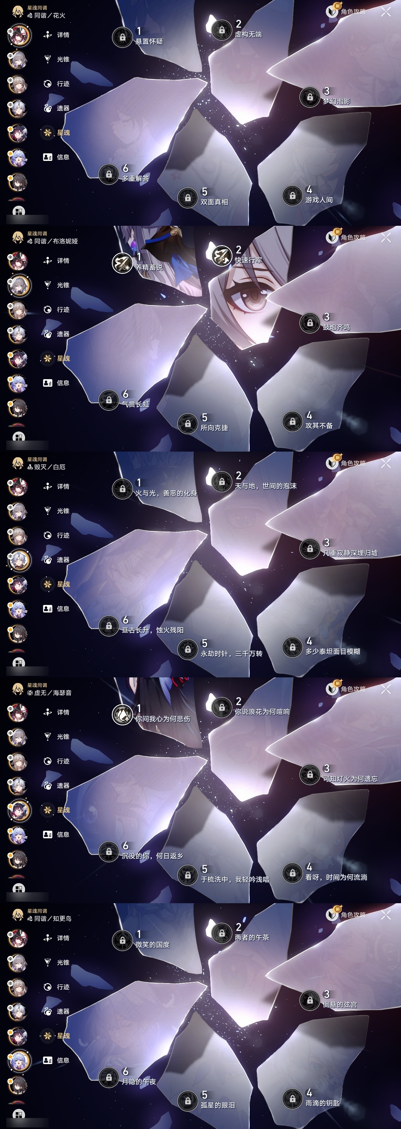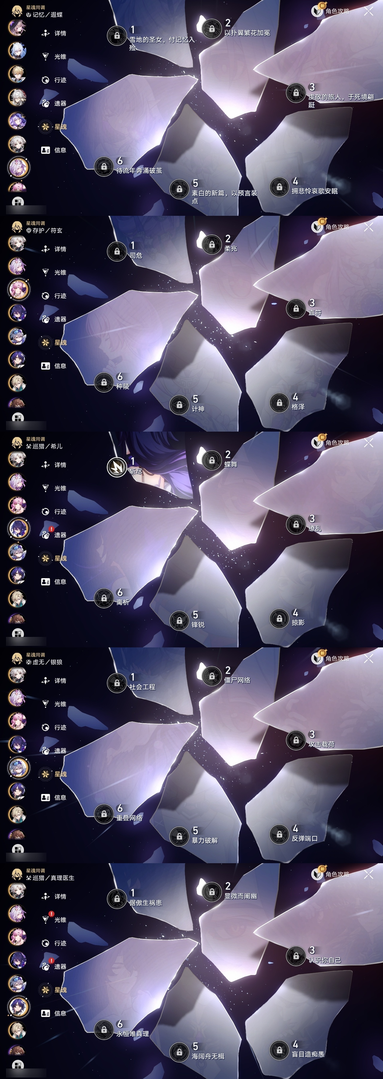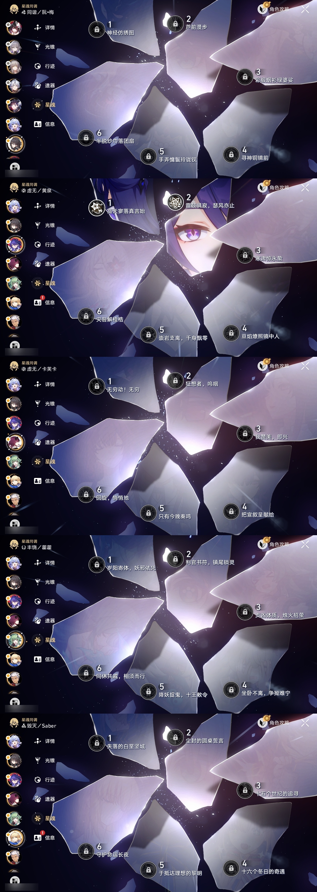 【崩坏·星穹铁道】【lyxq8631】冒险等级:70,女主,五星数量:43,五星角色:克拉拉 6命布洛妮娅 2命黄泉 2命希儿 1命姬子 1命瓦尔特 1命海瑟音 1命流萤 1命飞霄银狼景元杰帕德彦卿大黑塔刃卡芙卡遐蝶符玄镜流藿藿真理医生黑天鹅花火砂金知更鸟白厄saberarcher丹恒·腾荒__五星光锥:星海巡航 5精记一位星神的陨落 5精记忆永不落幕 3精如泥酣眠 2精制胜的瞬间银河铁道之夜以世界之名无可取代的东西但战斗还未结束孤独的疗愈让告别,更美一些此身为剑行于流逝的岸理想燃烧的地狱__四星角色:阿兰 6命娜塔莎 6命虎克 6命貊泽 6命黑塔 6命丹恒 6命艾丝妲 6命希露瓦 6命停云 6命素裳 6命桑博 6命三月七 6命青雀 6命佩拉 6命驭空 6命玲可 6命寒鸦 6命雪衣 6命米沙 6命加拉赫 6命卢卡 4命桂乃芬 4命