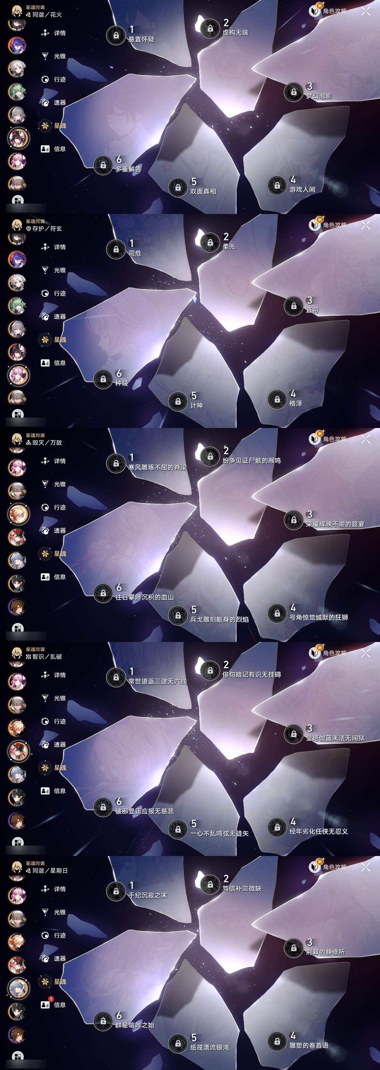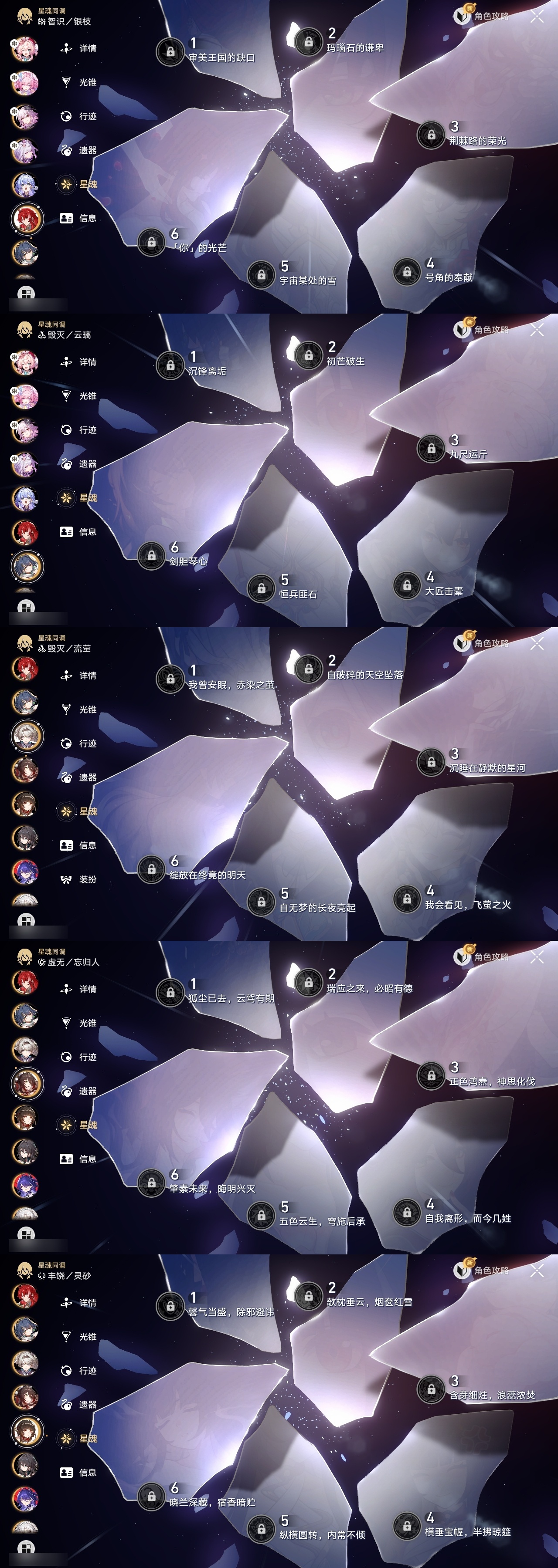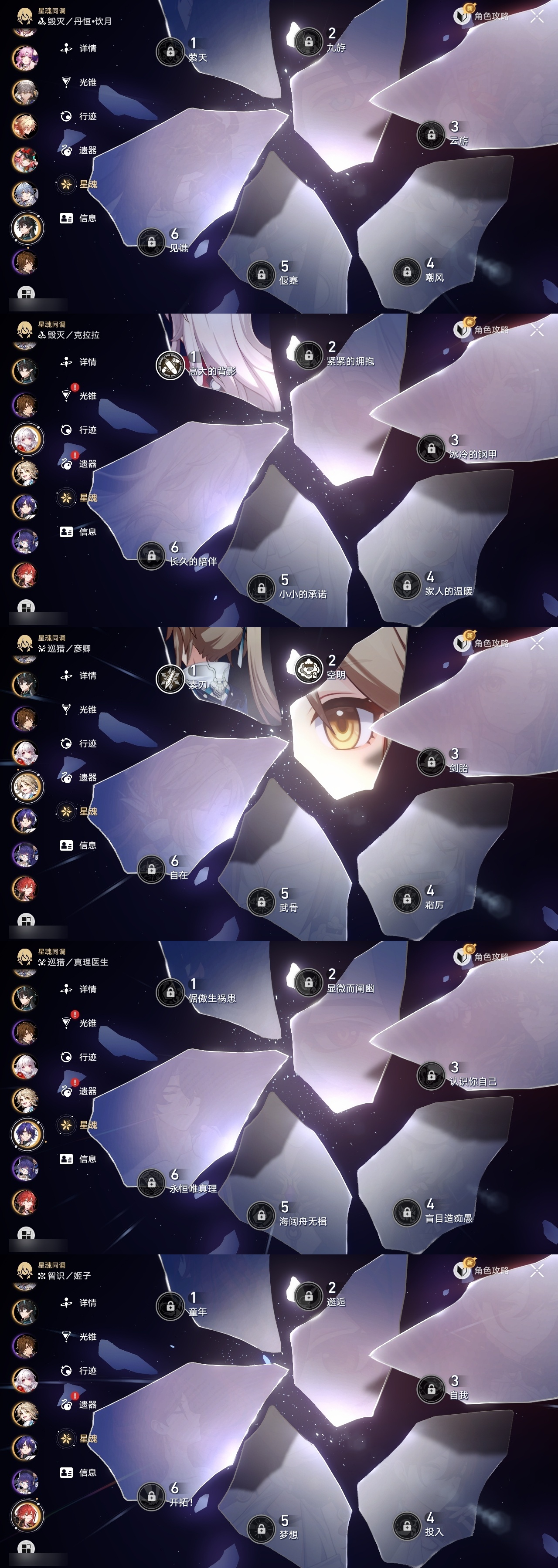 【崩坏·星穹铁道】【lyxq8689】冒险等级:70,男主,五星数量:42,五星角色:布洛妮娅 3命杰帕德 3命彦卿 2命克拉拉 1命云璃飞霄白露姬子灵砂瓦尔特乱破星期日忘归人万敌刃丹恒·饮月遐蝶符玄藿藿银枝真理医生花火黄泉风堇知更鸟archer长夜月丹恒·腾荒昔涟流萤__五星光锥:记一位星神的陨落 5精星海巡航 2精制胜的瞬间银河铁道之夜以世界之名如泥酣眠但战斗还未结束让告别,更美一些烦恼着,幸福着游戏尘寰记忆永不落幕爱如此刻永恒__四星角色:娜塔莎 6命虎克 6命黑塔 6命丹恒 6命艾丝妲 6命希露瓦 6命三月七 6命青雀 6命佩拉 6命驭空 6命玲可 6命桂乃芬 6命寒鸦 6命雪衣 6命米沙 6命加拉赫 6命停云 5命桑博 5命阿兰 4命貊泽 4命素裳 4命卢卡 3命