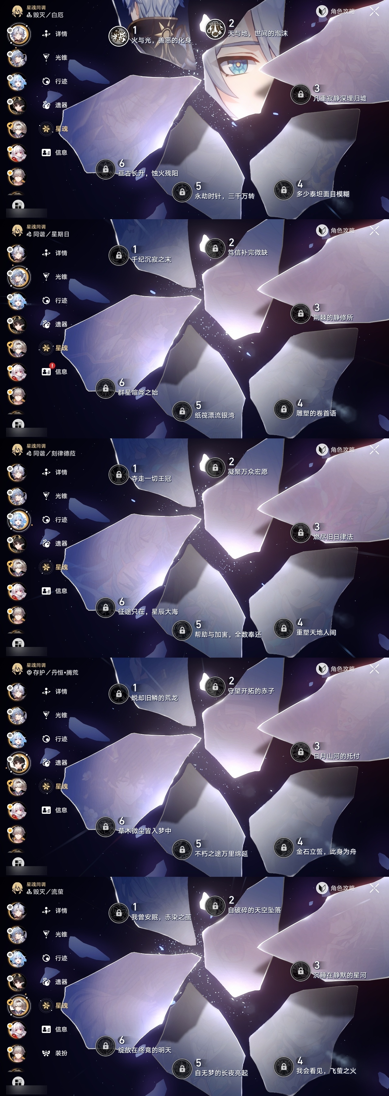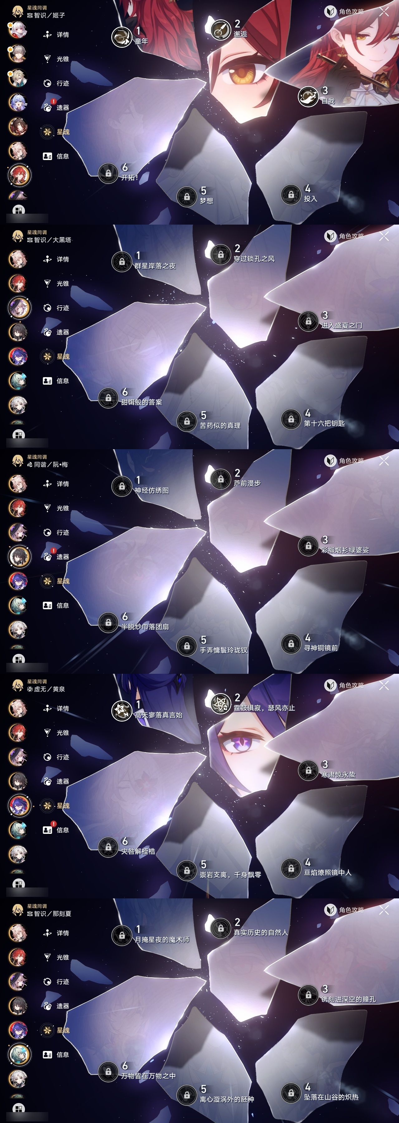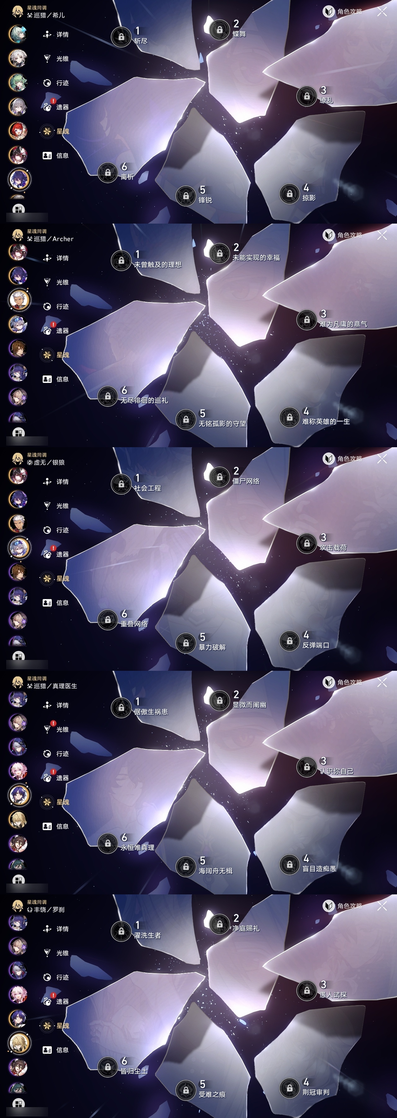 【崩坏·星穹铁道】【lyxq8769】冒险等级:70,男主,五星数量:43,五星角色:克拉拉 6命布洛妮娅 3命姬子 3命黄泉 2命白厄 2命缇宝 1命椒丘飞霄银狼希儿星期日大黑塔忘归人罗刹藿藿真理医生花火那刻夏砂金知更鸟archer刻律德菈丹恒·腾荒流萤__五星光锥:星海巡航 5精孤独的疗愈 5精记忆永不落幕 5精但战斗还未结束 2精银河铁道之夜以世界之名无可取代的东西不息的演算回到大地的飞行回到大地的飞行向着不可追问处纯粹思维的洗礼生命当付之一炬行于流逝的岸命运从未公平黎明恰如此燃烧理想燃烧的地狱纵然山河万程梦应归于何处__四星角色:阿兰 6命娜塔莎 6命貊泽 6命黑塔 6命丹恒 6命艾丝妲 6命希露瓦 6命停云 6命素裳 6命桑博 6命三月七 6命青雀 6命佩拉 6命驭空 6命卢卡 6命玲可 6命桂乃芬 6命寒鸦 6命雪衣 6命米沙 6命加拉赫 6命虎克 3命