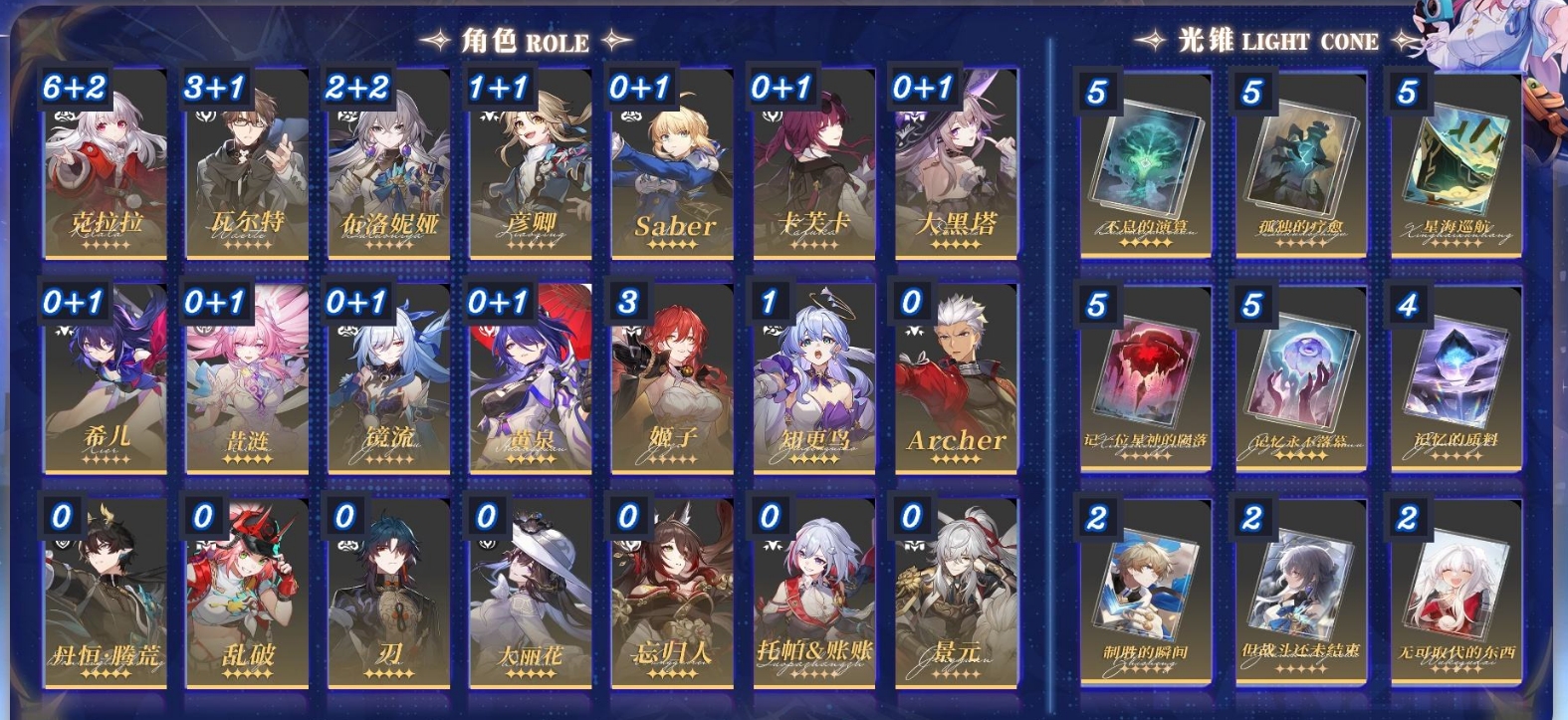 [15449943]m24588,70级女主91黄梦华0星琼378星轨专票5星轨通票731个五星角色:满命克拉拉3命姬子3命瓦尔特2命布洛妮娅1命知更鸟1命彦卿卡芙卡黄泉藿藿阮梅大丽花忘归人昔涟遐蝶丹恒腾荒流萤托帕账账大黑塔镜流白露景元飞霄刃saber缇宝符玄希儿archer乱破真理医生罗刹服饰:冬去煦至18个五星光锥:精5记一位星神的陨落精5星海巡航精5不息的演算精5孤独的疗愈精5记忆永不落幕精4记忆的质料精2无可取代的东西精2但战斗还未结束精2制胜的瞬间精1没有回报的加冕精1此身为剑精1如泥酣眠精1于夜色中精1向着不可追问处精1行于流逝的岸精1只需等待精1以世界之名精1爱如此刻永恒