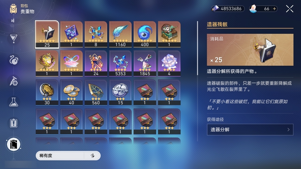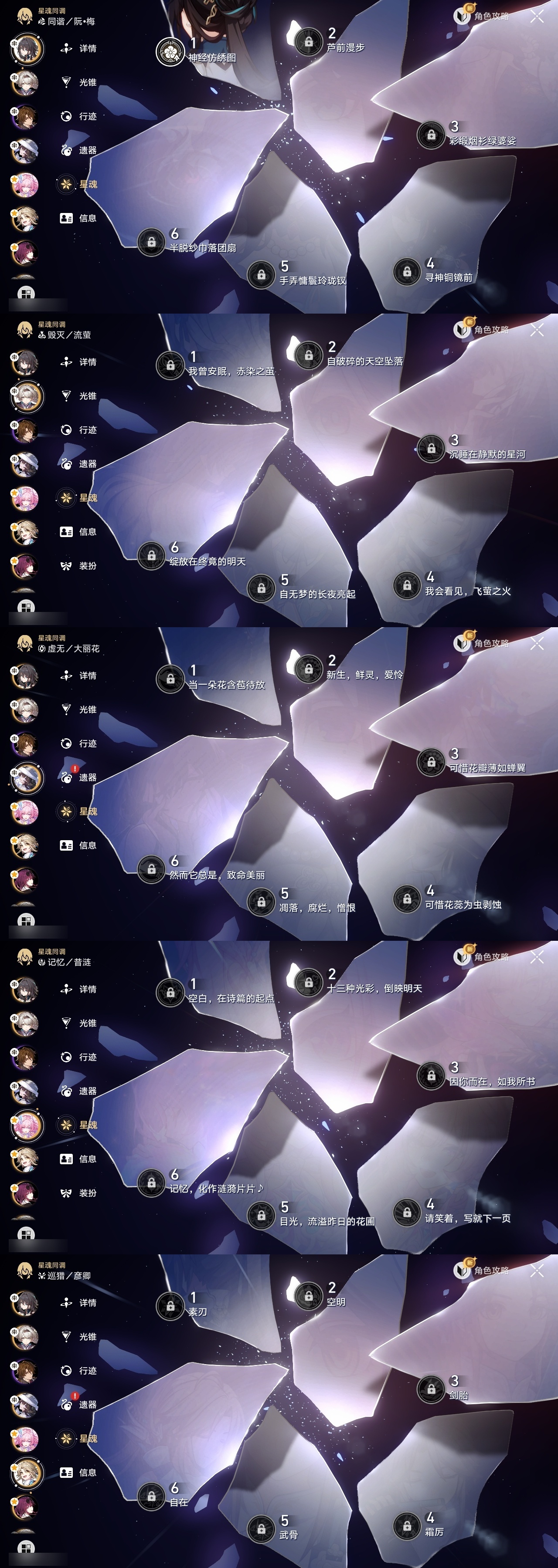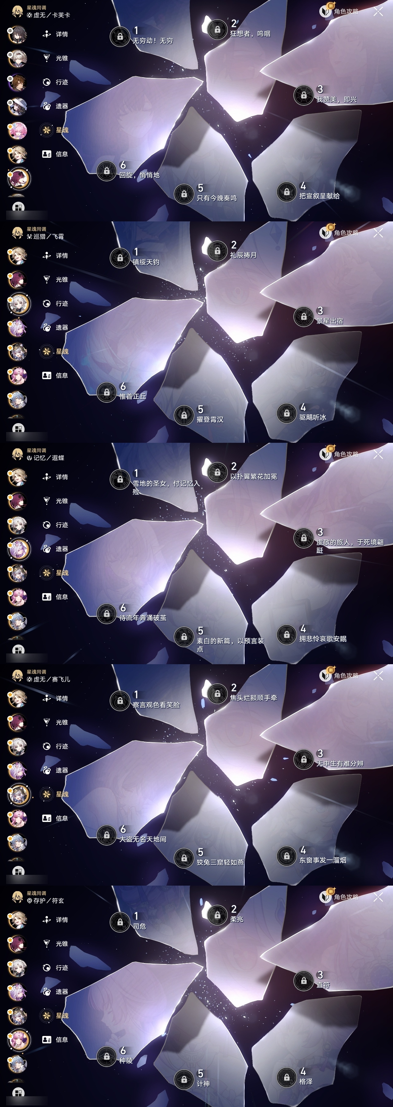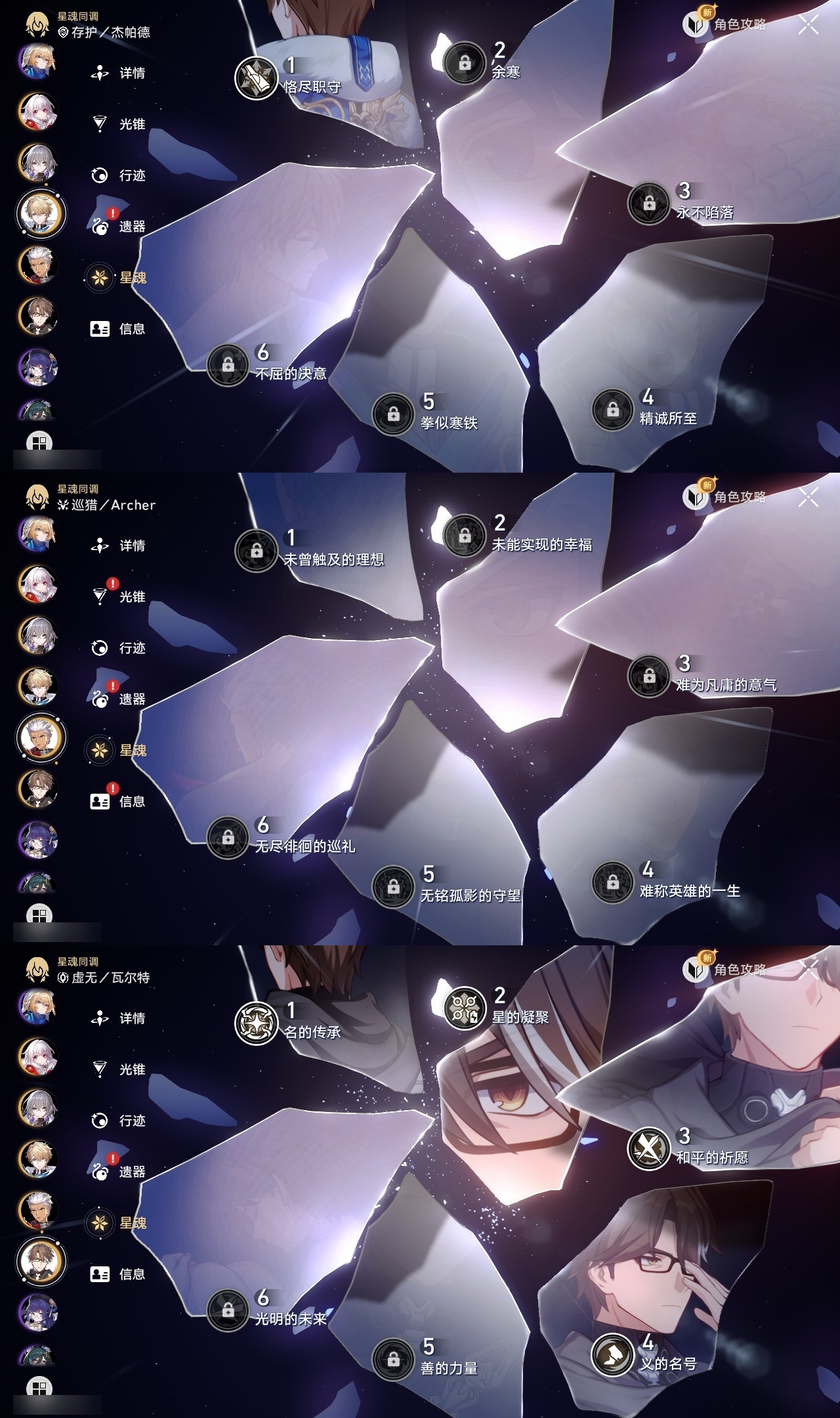 【崩坏·星穹铁道】【lyxq8785】冒险等级:70,女主,五星数量:51,五星角色:瓦尔特 4命布洛妮娅 3命丹恒·饮月 2命白露 1命杰帕德 1命克拉拉 1命椒丘飞霄银狼姬子彦卿乱破星期日刃卡芙卡遐蝶符玄托帕账账藿藿真理医生黑天鹅那刻夏黄泉知更鸟赛飞儿saberarcher长夜月丹恒·腾荒昔涟大丽花流萤__五星光锥:星海巡航 3精制胜的瞬间 3精无可取代的东西 3精那无数个春天银河铁道之夜以世界之名时节不居但战斗还未结束如果时间是一朵花到不了的彼岸孤独的疗愈只需等待比阳光更明亮的她已闭上双眼让告别,更美一些惊魂夜夜色流光溢彩记忆永不落幕梦应归于何处__四星角色:娜塔莎 6命虎克 6命貊泽 6命黑塔 6命丹恒 6命艾丝妲 6命希露瓦 6命停云 6命素裳 6命桑博 6命三月七 6命青雀 6命佩拉 6命驭空 6命卢卡 6命玲可 6命桂乃芬 6命寒鸦 6命雪衣 6命米沙 6命加拉赫 6命阿兰 4命