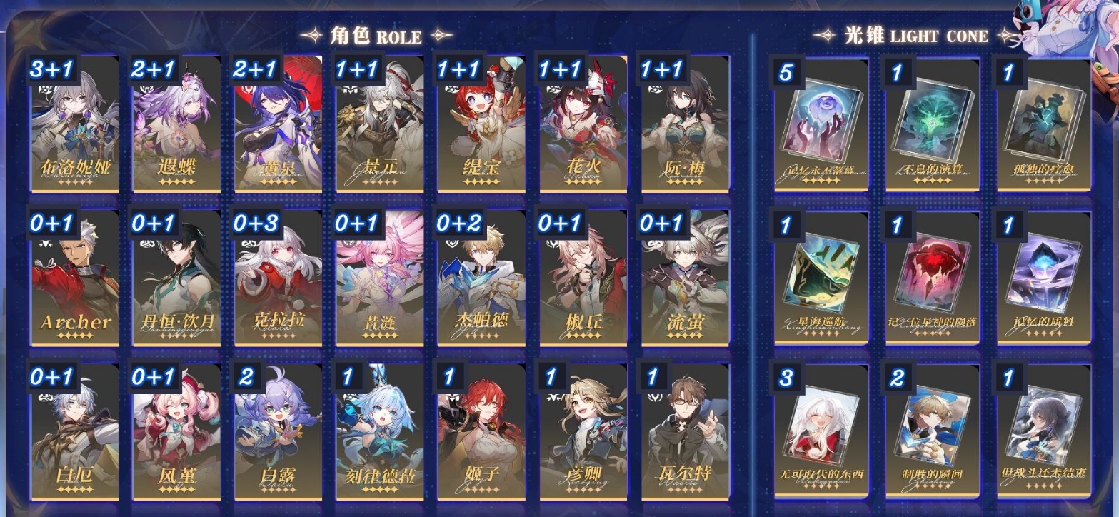 [15515290]m24630,70级 113黄,女主,37个五星角色:5命彦卿,3命白露,2命砂金,2命黄泉,2命镜流,2命布洛妮娅,2命瓦尔特,2命姬子,1命阮梅,1命克拉拉,1命知更鸟,1命流萤,1命忘归人,1命椒丘,1命缇宝,1命丹恒·饮月,花火,黑天鹅,真理医生,银枝,托帕账账,符玄,卡芙卡,希儿,杰帕德,风堇,长夜月,遐蝶,丹恒腾荒,海瑟音,白厄,大丽花,大黑塔,阿格莱雅,翡翠,archer,星期日, 时装:冬去煦至;24个五星光锥:精5星海巡航,精5不息的演算,精5孤独的疗愈,精5记忆的质料,精5记忆永不落幕,精5记一位星神的陨落,精1黎明恰如此燃烧,精1比阳光更明亮的,精1此身为剑,精1无可取代的东西,精1理想燃烧的地狱,精1烦恼着幸福着,精1如泥酣眠,精1银河铁道之夜,精1夜色流光溢彩,精1游戏尘寰,精1镜中故我,精1但战斗还未结束,精1行于流逝的岸,精1以世界之名,精1命运从未公平,精1时节不居,精1愿虹光永驻天空,精1将光阴织成黄金, 梦华0,星琼227,星轨专票0