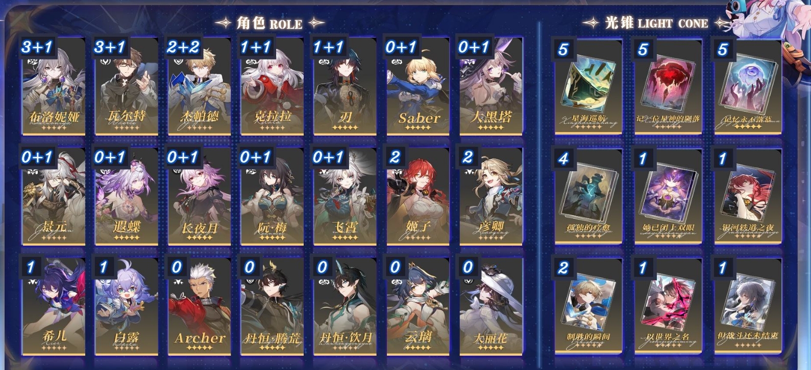 [15512569]m24621,70级女主80黄梦华0星琼198星轨专票0星轨通票030个五星角色:3命布洛妮娅3命瓦尔特2命姬子2命彦卿2命杰帕德1命克拉拉1命白露1命刃1命希儿大丽花长夜月大黑塔风堇saber遐蝶丹恒腾荒知更鸟云璃托帕账账阮梅镜流黄泉景元飞霄花火archer银狼真理医生砂金丹恒饮月服饰:冬去煦至18个五星光锥:精5记一位星神的陨落精5星海巡航精5记忆永不落幕精4孤独的疗愈精2制胜的瞬间精1没有回报的加冕精1到不了的彼岸精1无可取代的东西精1我将巡征追猎精1向着不可追问处精1拂晓之前精1银河铁道之夜精1镜中故我精1但战斗还未结束精1以世界之名精1她已闭上双眼精1致长夜的星光精1让告别更美一些