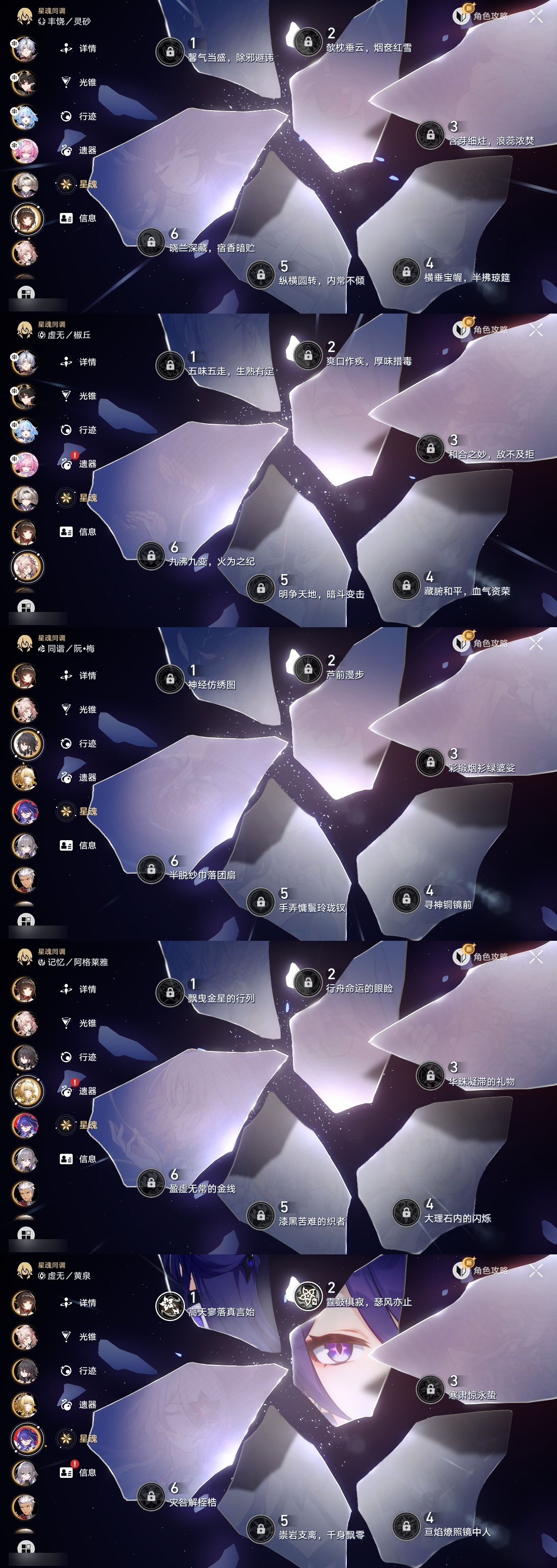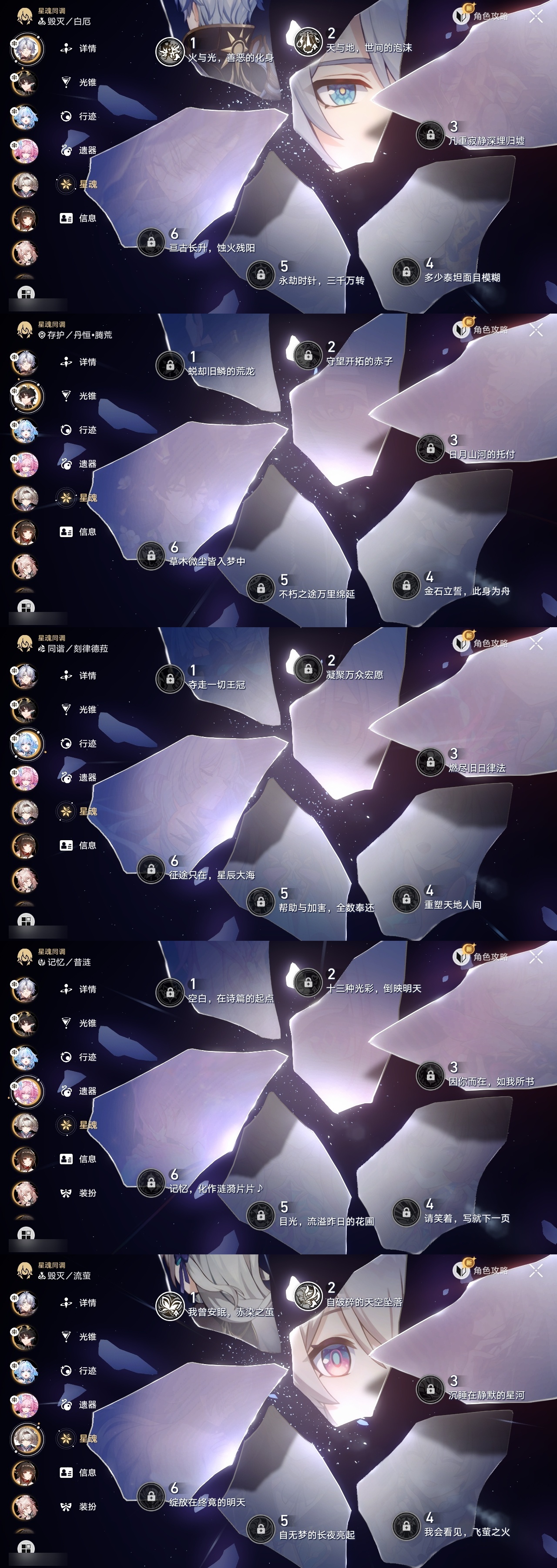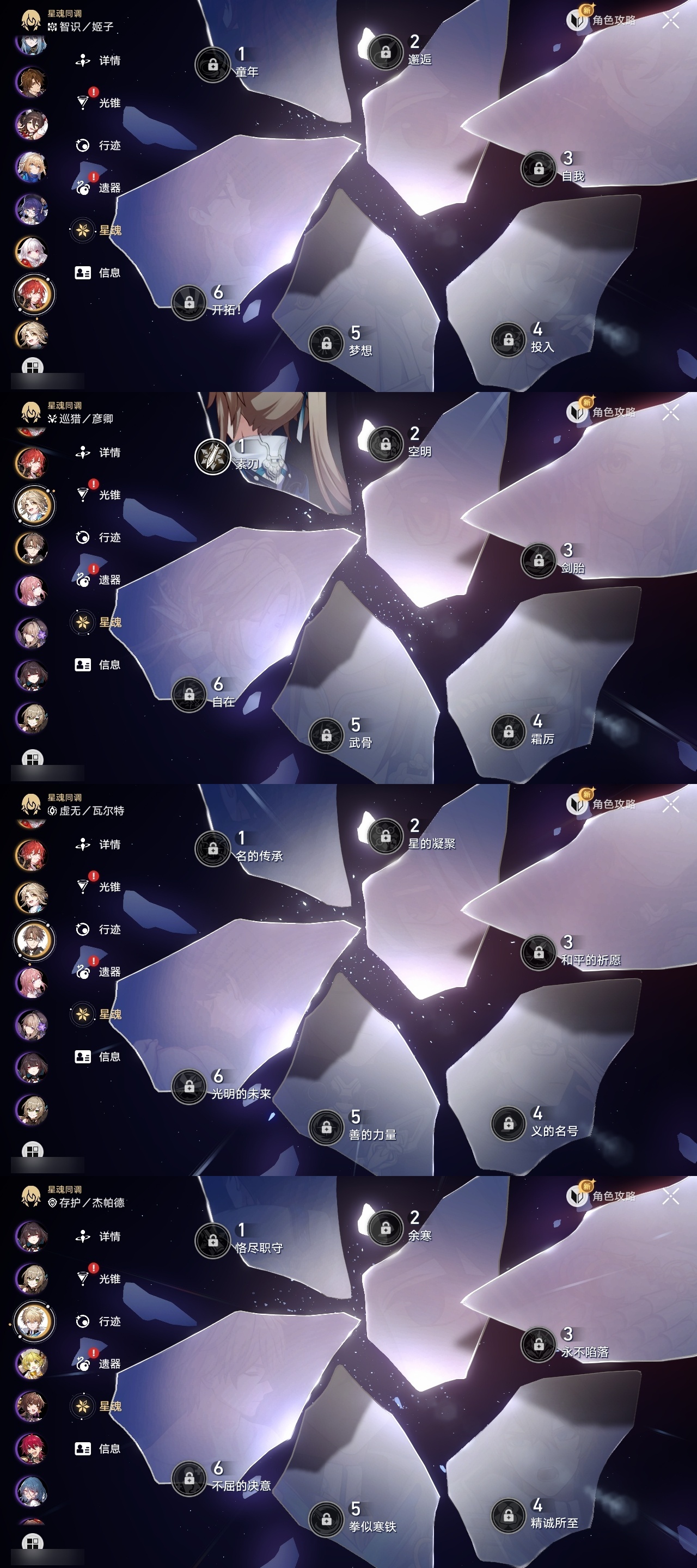 【崩坏·星穹铁道】【lyxq8865】冒险等级:70,男主,五星数量:30,五星角色:布洛妮娅 2命黄泉 2命白厄 2命流萤 2命彦卿 1命椒丘姬子灵砂杰帕德瓦尔特克拉拉阿格莱雅真理医生砂金archer刻律德菈丹恒·腾荒昔涟__五星光锥:记忆的质料 5精以世界之名无可取代的东西时节不居时节不居但战斗还未结束将光阴织成黄金行于流逝的岸黎明恰如此燃烧理想燃烧的地狱金血铭刻的时代梦应归于何处__四星角色:虎克 6命黑塔 6命希露瓦 6命停云 6命素裳 6命桑博 6命三月七 6命佩拉 6命驭空 6命玲可 6命寒鸦 6命雪衣 6命米沙 6命加拉赫 6命青雀 5命娜塔莎 4命貊泽 4命卢卡 4命桂乃芬 4命阿兰 3命艾丝妲 2命丹恒 1命