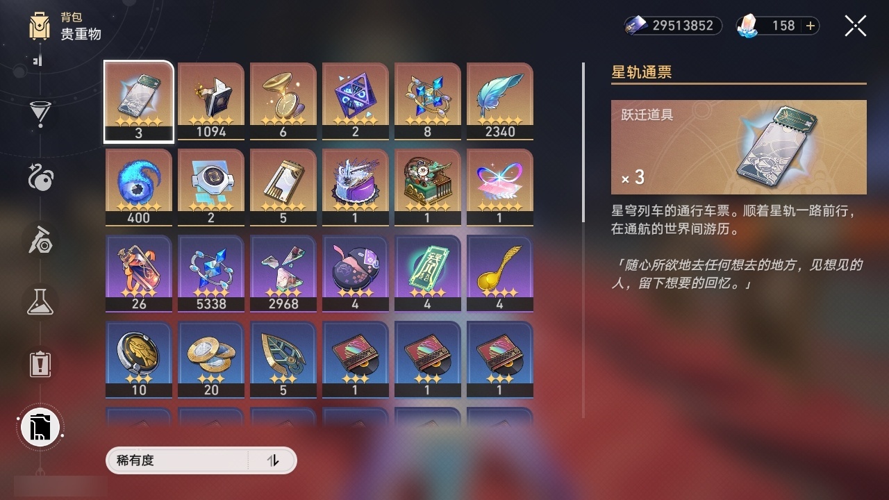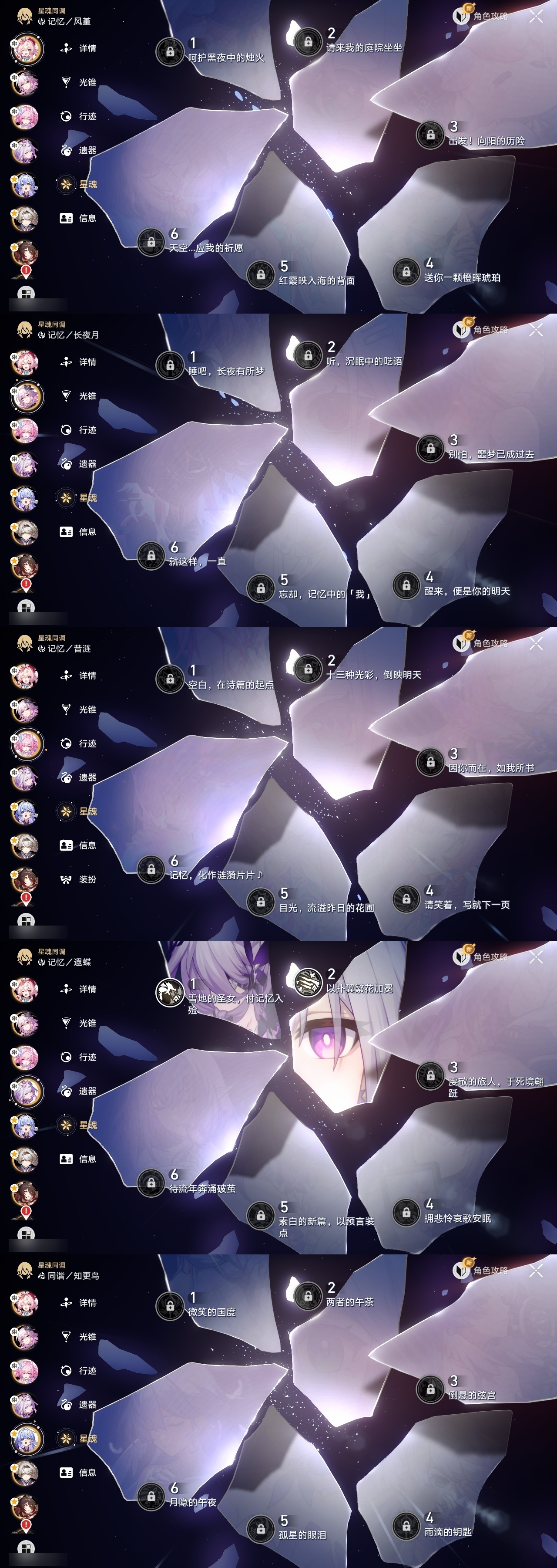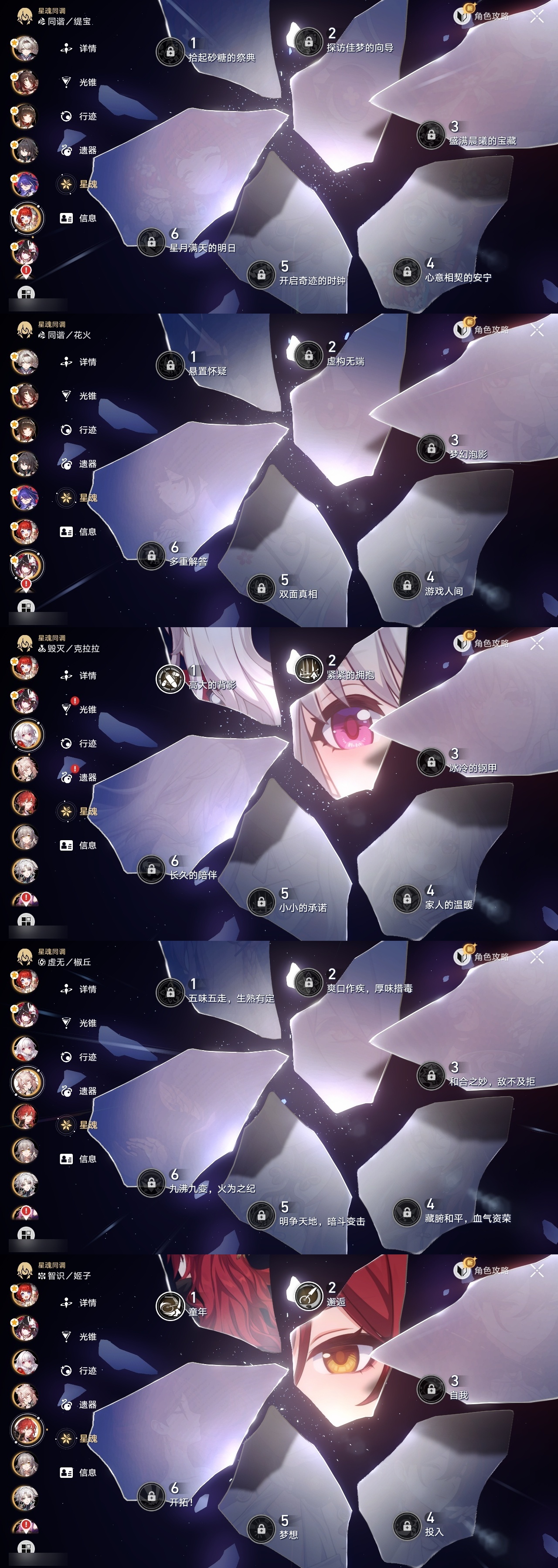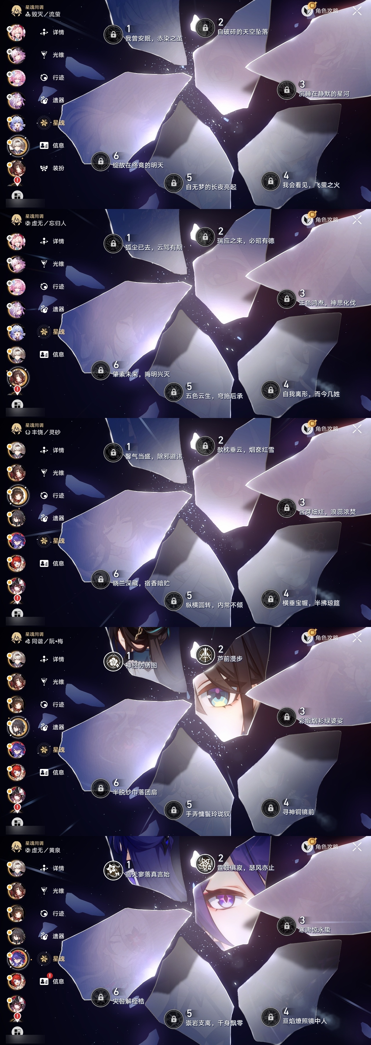 【崩坏·星穹铁道】【lyxq8850】冒险等级:70,女主,五星数量:41,五星角色:布洛妮娅 2命姬子 2命杰帕德 2命克拉拉 2命遐蝶 2命黄泉 2命符玄 1命archer 1命椒丘飞霄希儿白露灵砂瓦尔特忘归人缇宝真理医生花火风堇砂金知更鸟长夜月丹恒·腾荒昔涟流萤__五星光锥:记一位星神的陨落 5精星海巡航 4精但战斗还未结束 2精不息的演算 2精孤独的疗愈 2精记忆的质料制胜的瞬间银河铁道之夜如泥酣眠但战斗还未结束让告别,更美一些行于流逝的岸记忆永不落幕理想燃烧的地狱爱如此刻永恒梦应归于何处__四星角色:娜塔莎 6命虎克 6命丹恒 6命艾丝妲 6命希露瓦 6命停云 6命三月七 6命佩拉 6命驭空 6命卢卡 6命玲可 6命桂乃芬 6命寒鸦 6命雪衣 6命米沙 6命加拉赫 6命黑塔 5命桑博 4命青雀 3命貊泽 2命阿兰 1命素裳