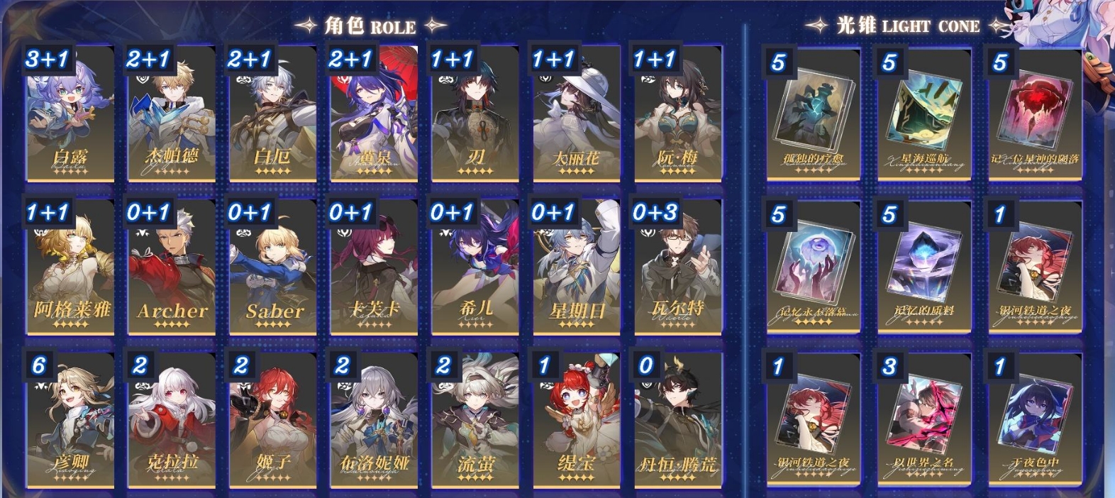 [15557915]m24659,70级女主103黄梦华0星琼557星轨专票2星轨通票031个五星角色:满命彦卿3命白露2命流萤2命白厄2命黄泉2命克拉拉2命姬子2命杰帕德2命布洛妮娅1命大丽花1命阿格莱雅1命缇宝1命阮梅1命刃忘归人卡芙卡刻律德菈saberarcher星期日丹恒腾荒托帕账账昔涟藿藿花火符玄希儿银狼真理医生罗刹瓦尔特服饰:冬去煦至22个五星光锥:精5记一位星神的陨落精5星海巡航精5孤独的疗愈精5记忆的质料精5记忆永不落幕精3以世界之名精1没有回报的加冕精1黎明恰如此燃烧精1到不了的彼岸精1理想燃烧的地狱精1于夜色中精1银河铁道之夜精1回到大地的飞行精1镜中故我精1镜中故我精1勿忘她的火焰精1行于流逝的岸精1只需等待精1制胜的瞬间精1时节不居精1将光阴织成黄金精1银河铁道之夜