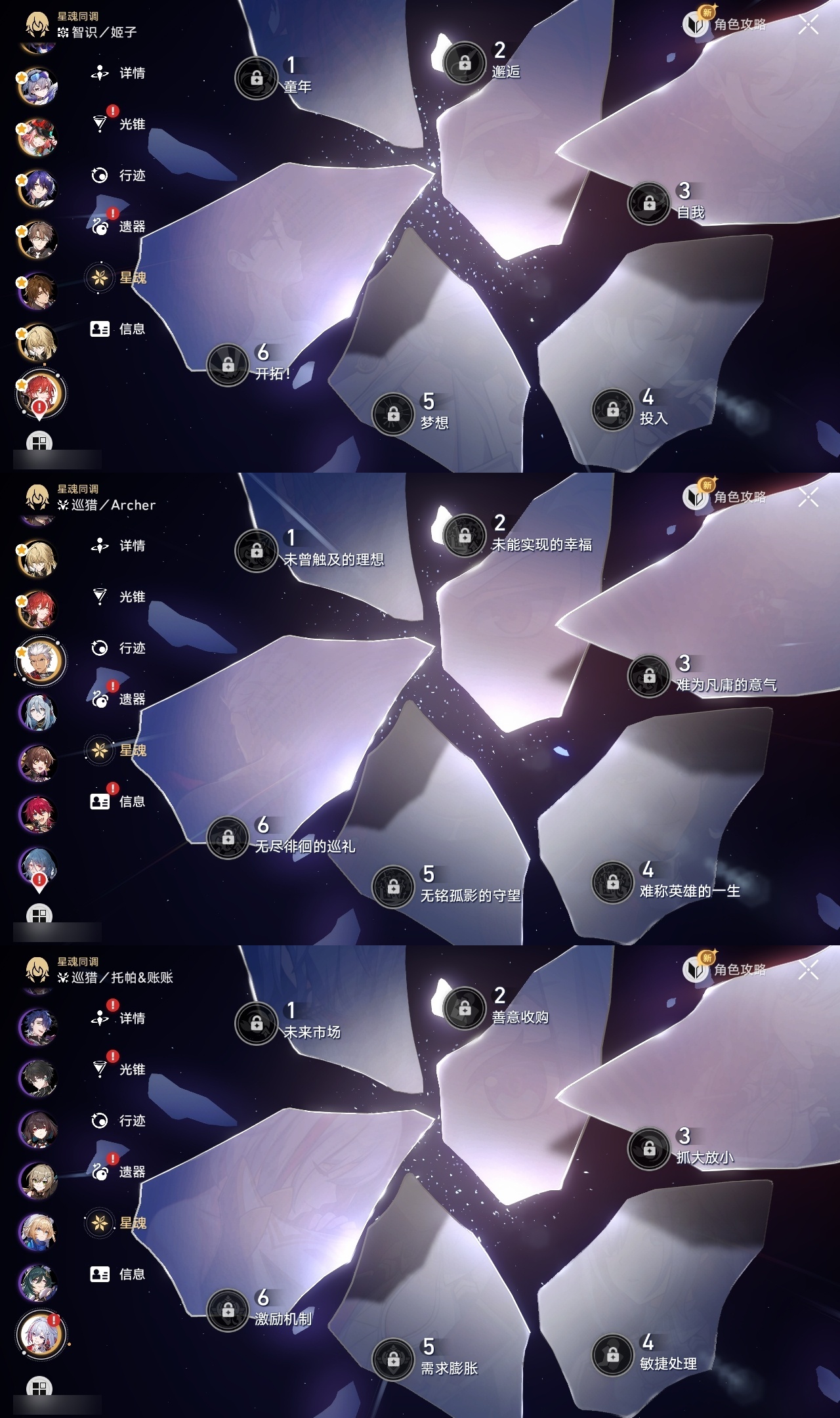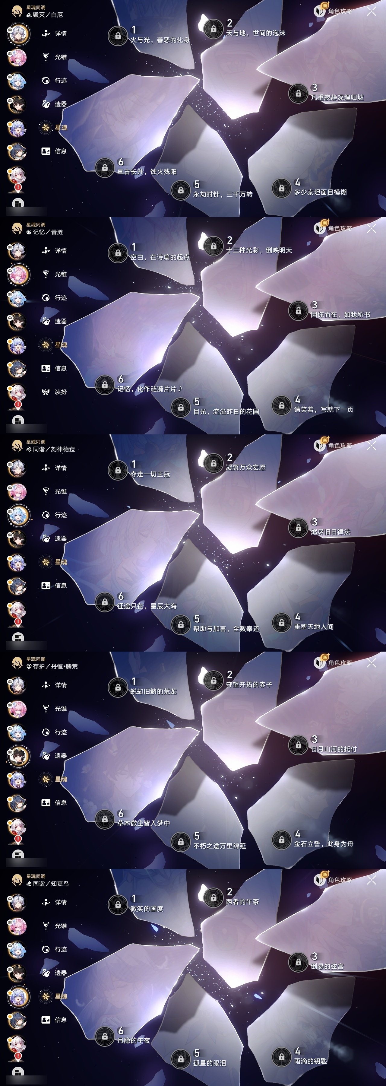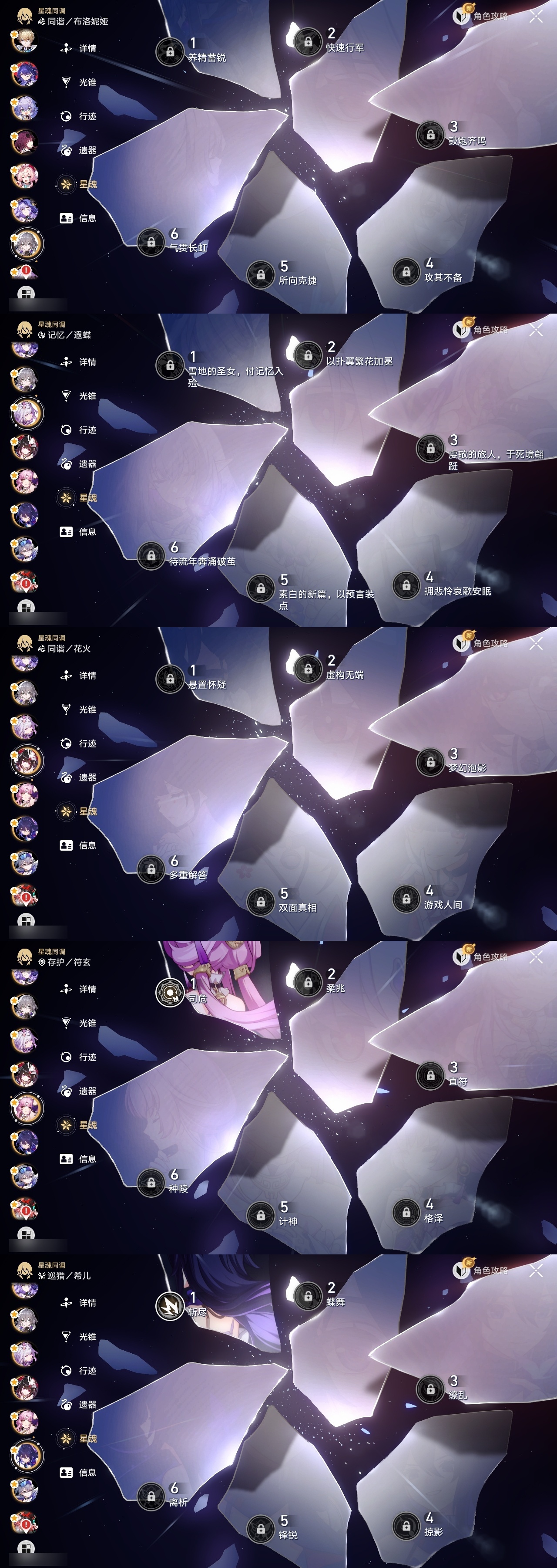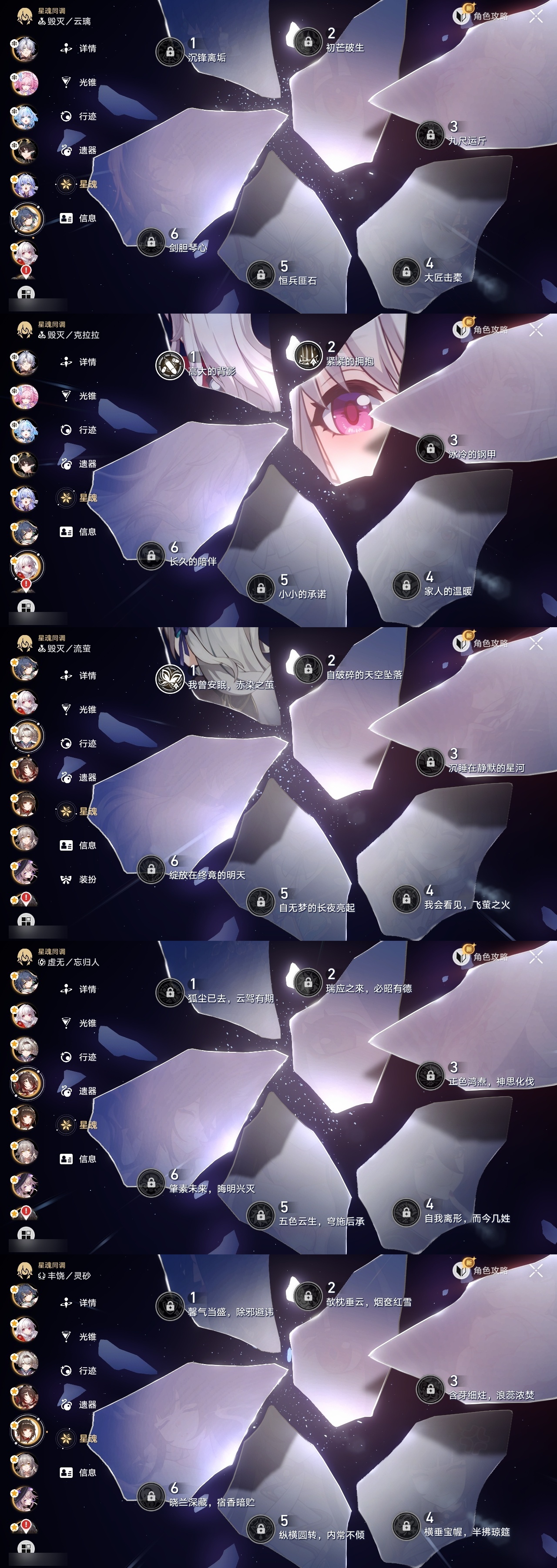 【崩坏·星穹铁道】【lyxq8855】冒险等级:70,女主,五星数量:48,五星角色:白露 2命杰帕德 2命彦卿 2命瓦尔特 2命克拉拉 2命希儿 1命符玄 1命流萤 1命云璃银狼布洛妮娅姬子灵砂乱破大黑塔忘归人罗刹卡芙卡遐蝶镜流托帕账账真理医生黑天鹅花火黄泉风堇知更鸟白厄archer刻律德菈丹恒·腾荒昔涟__五星光锥:星海巡航 5精记忆的质料 5精记一位星神的陨落 5精不息的演算 5精孤独的疗愈 5精记忆永不落幕 5精银河铁道之夜 2精无可取代的东西 2精制胜的瞬间但战斗还未结束于夜色中拂晓之前此身为剑镜中故我行于流逝的岸爱如此刻永恒__四星角色:阿兰 6命娜塔莎 6命虎克 6命貊泽 6命黑塔 6命丹恒 6命艾丝妲 6命希露瓦 6命停云 6命素裳 6命桑博 6命三月七 6命青雀 6命佩拉 6命驭空 6命卢卡 6命玲可 6命寒鸦 6命雪衣 6命米沙 6命加拉赫 6命桂乃芬 5命