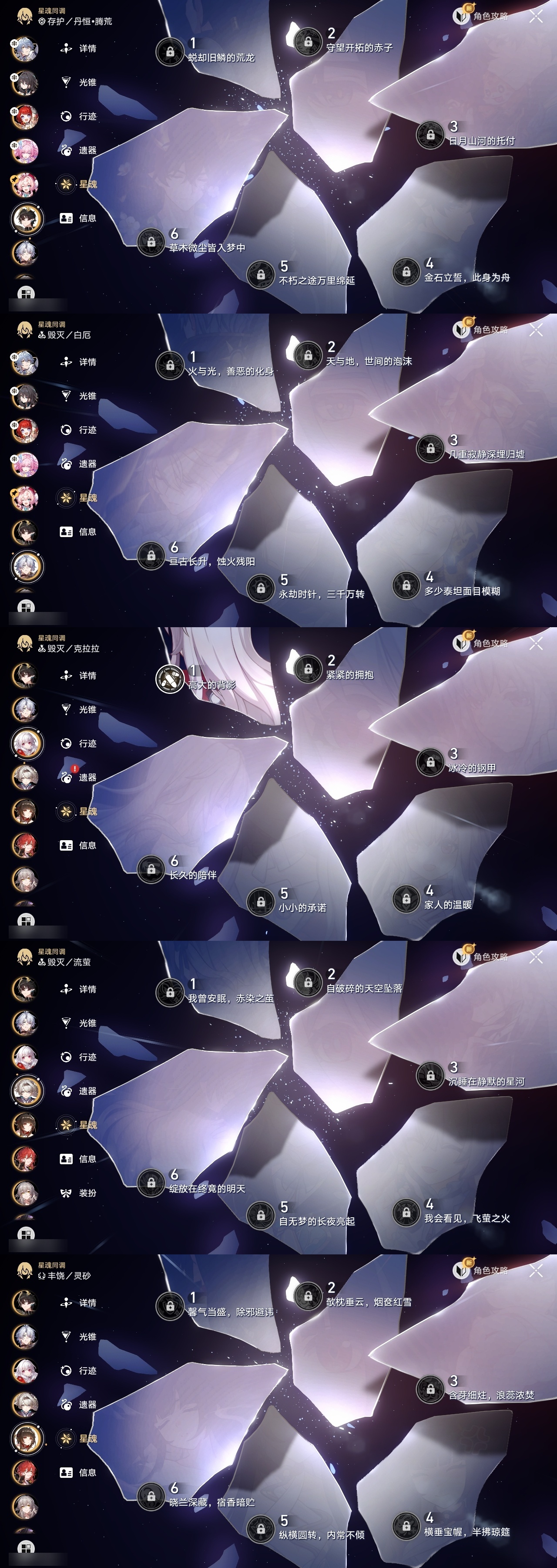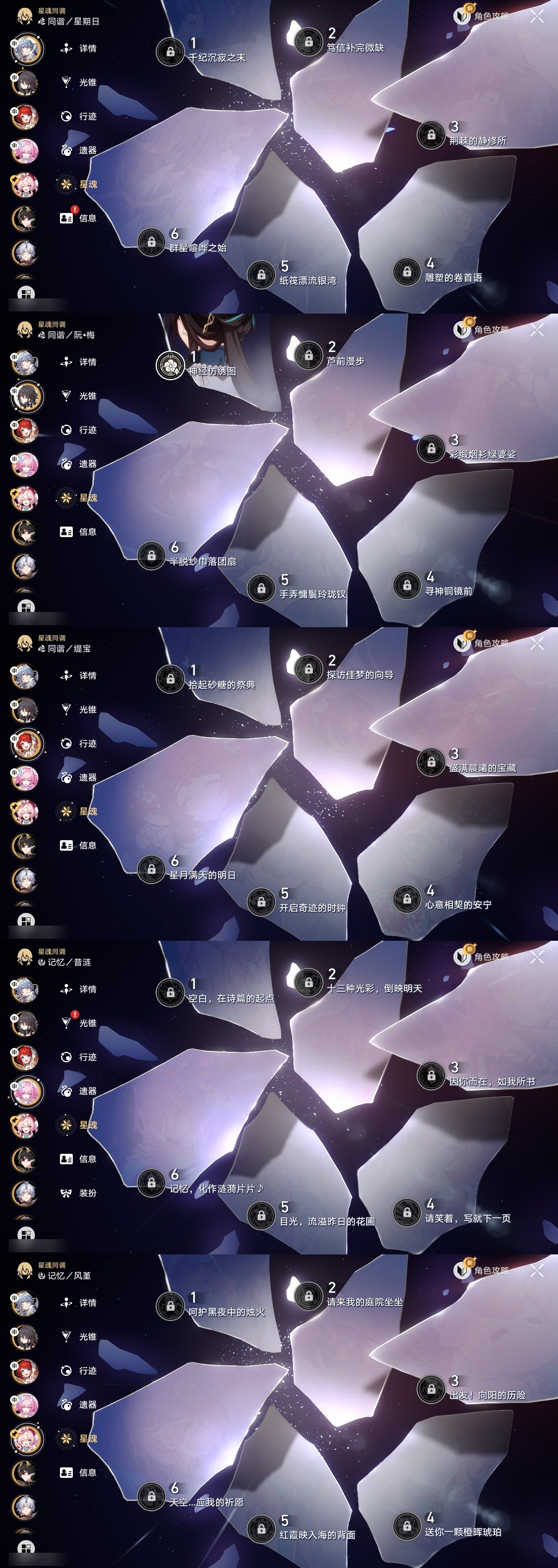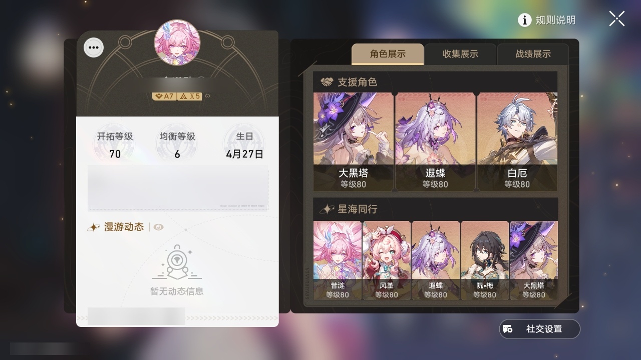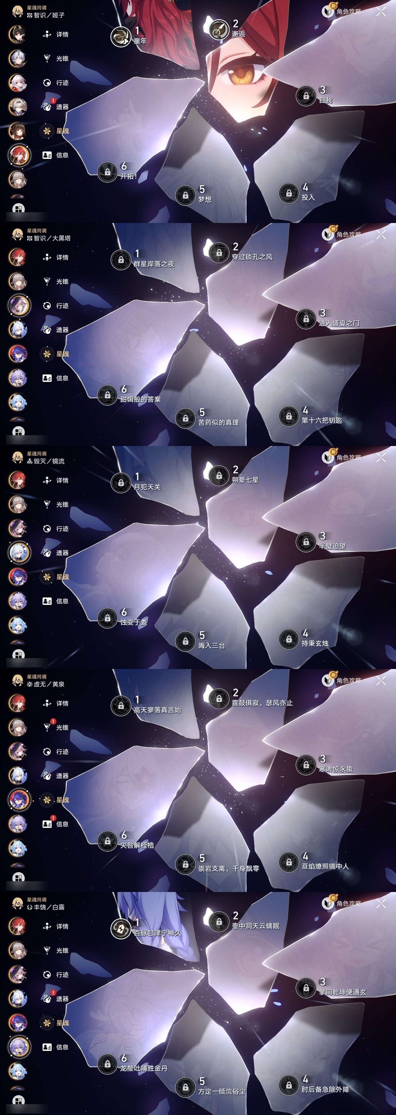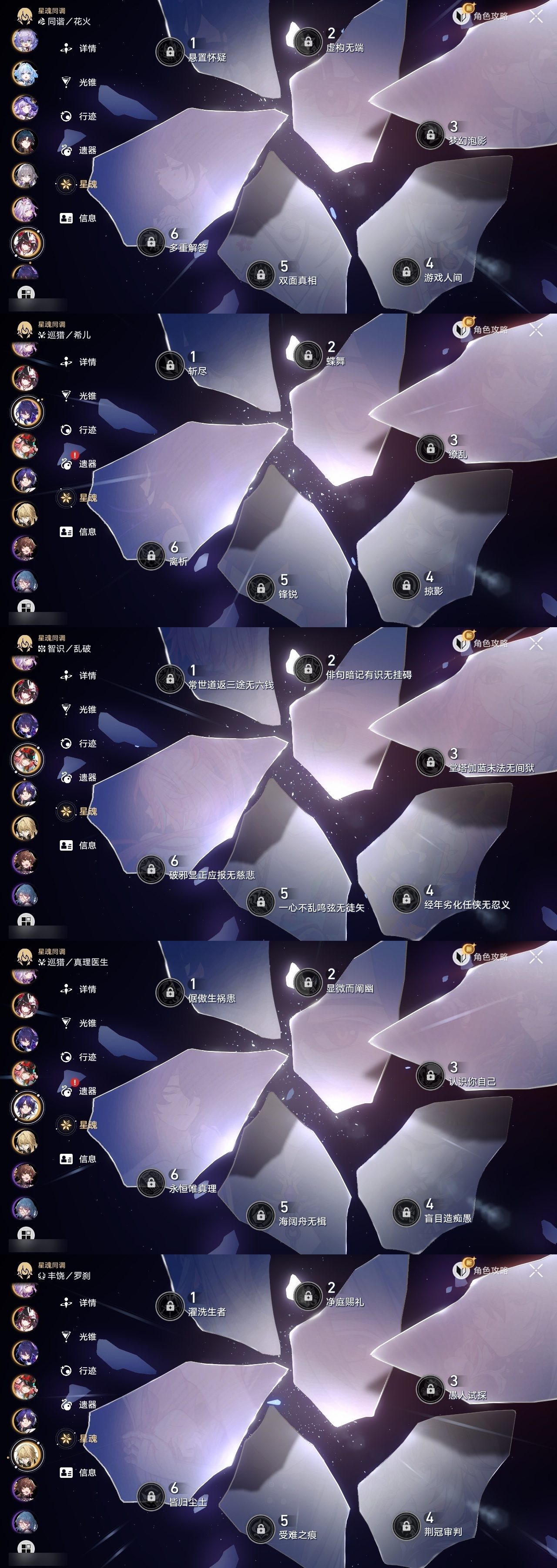 【崩坏·星穹铁道】【lyxq8945】冒险等级:70,女主,五星数量:40,五星角色:刃 3命布洛妮娅 2命姬子 2命白露 1命彦卿 1命克拉拉 1命希儿灵砂杰帕德瓦尔特乱破星期日大黑塔罗刹缇宝遐蝶镜流真理医生黑天鹅花火黄泉风堇白厄archer刻律德菈丹恒·腾荒昔涟流萤__五星光锥:记一位星神的陨落 5精不息的演算 5精记忆永不落幕 4精如泥酣眠 3精星海巡航记忆的质料银河铁道之夜如泥酣眠如泥酣眠孤独的疗愈行于流逝的岸黎明恰如此燃烧__四星角色:阿兰 6命娜塔莎 6命虎克 6命貊泽 6命丹恒 6命艾丝妲 6命希露瓦 6命停云 6命素裳 6命桑博 6命三月七 6命青雀 6命佩拉 6命驭空 6命卢卡 6命玲可 6命桂乃芬 6命寒鸦 6命雪衣 6命米沙 6命加拉赫 6命黑塔 5命