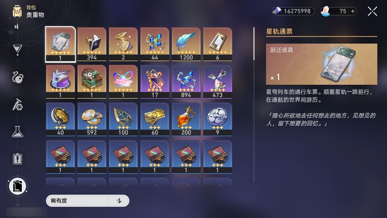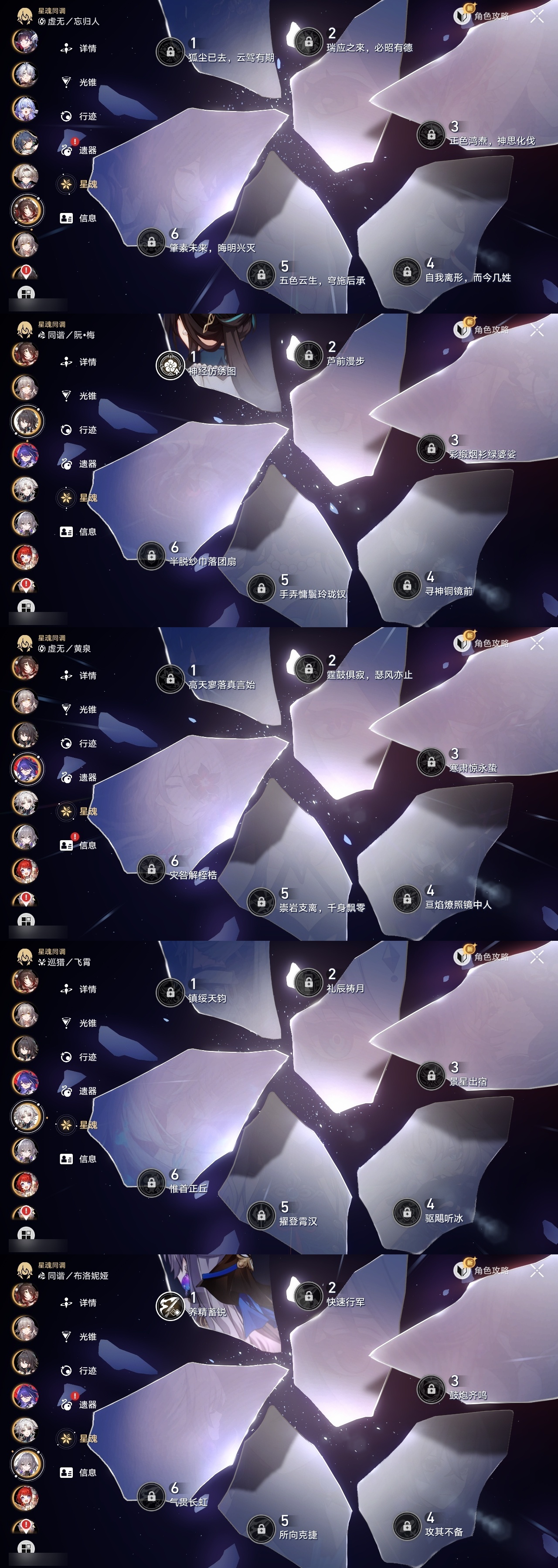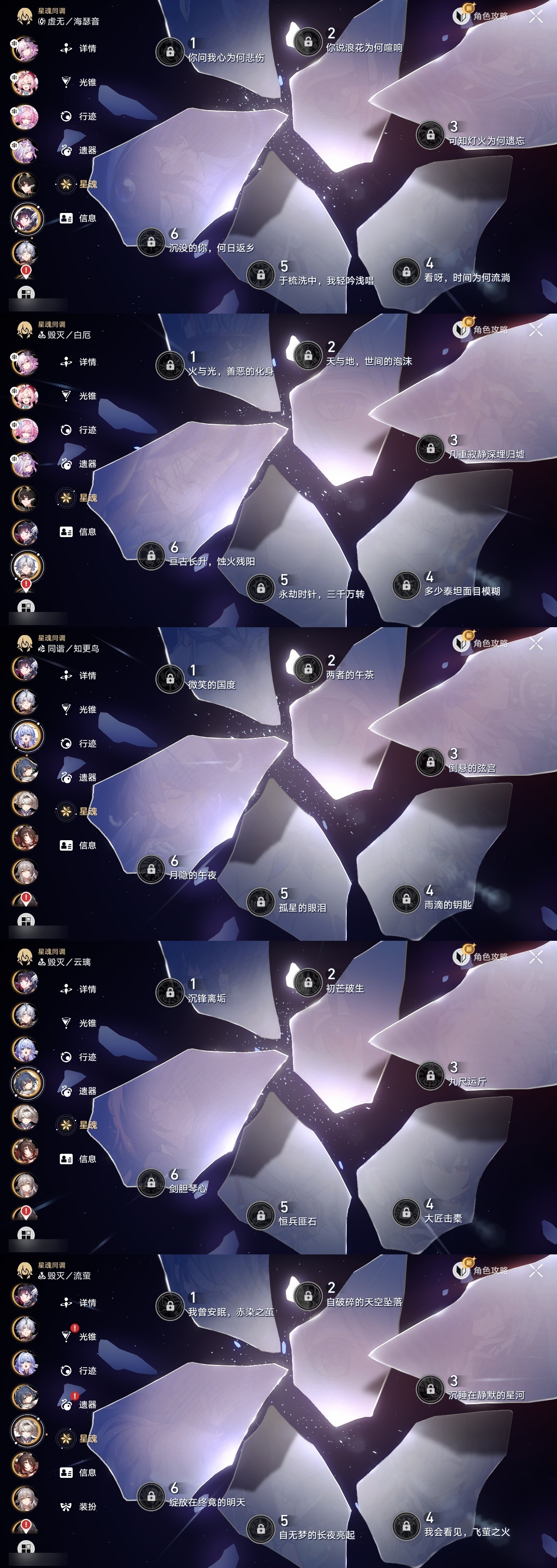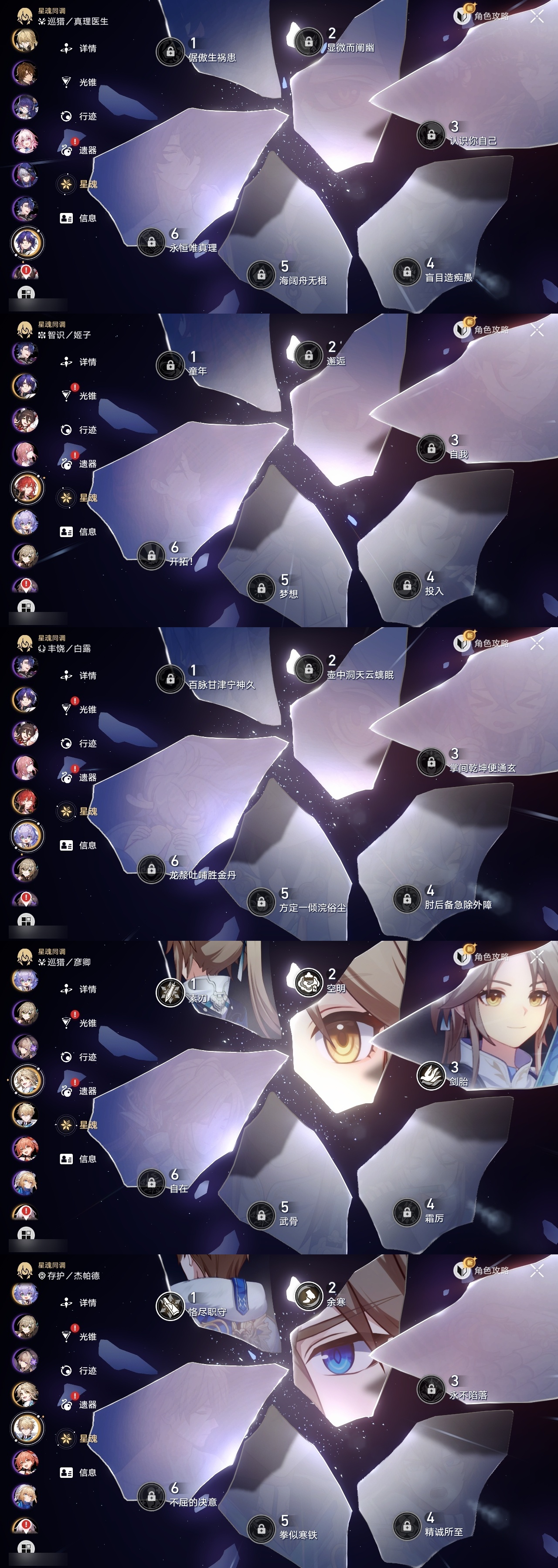 【崩坏·星穹铁道】【lyxq9057】冒险等级:70,女主,五星数量:40,五星角色:彦卿 3命杰帕德 2命布洛妮娅 1命瓦尔特 1命缇宝 1命遐蝶 1命云璃飞霄白露姬子克拉拉星期日忘归人罗刹真理医生黄泉风堇砂金知更鸟白厄archer海瑟音长夜月丹恒·腾荒昔涟流萤__五星光锥:孤独的疗愈 5精记忆永不落幕 5精记一位星神的陨落 2精银河铁道之夜 2精如泥酣眠 2精星海巡航时节不居但战斗还未结束我将,巡征追猎回到大地的飞行让告别,更美一些行于流逝的岸海洋为何而歌爱如此刻永恒__四星角色:阿兰 6命娜塔莎 6命貊泽 6命黑塔 6命丹恒 6命艾丝妲 6命希露瓦 6命三月七 6命青雀 6命佩拉 6命玲可 6命桂乃芬 6命寒鸦 6命雪衣 6命米沙 6命加拉赫 6命虎克 5命桑博 5命驭空 5命停云 3命素裳 2命卢卡 1命