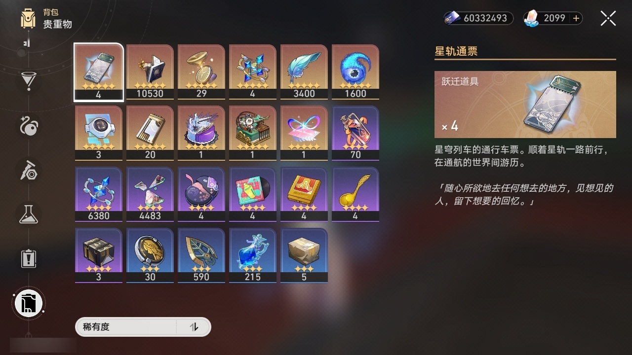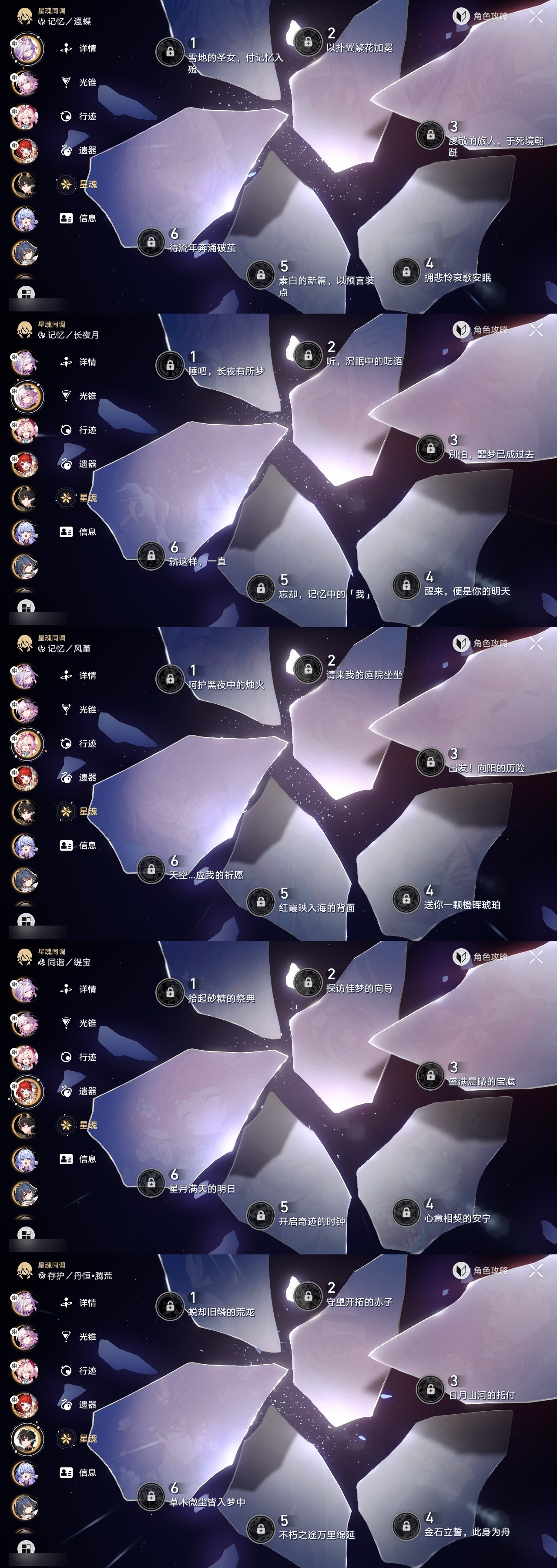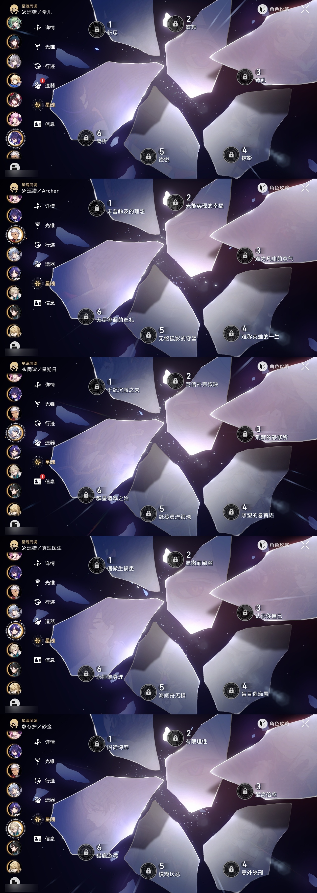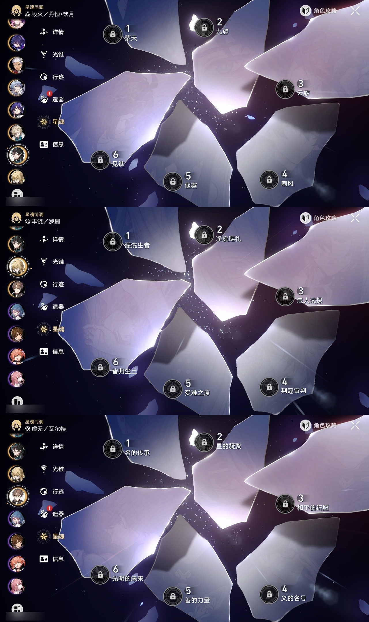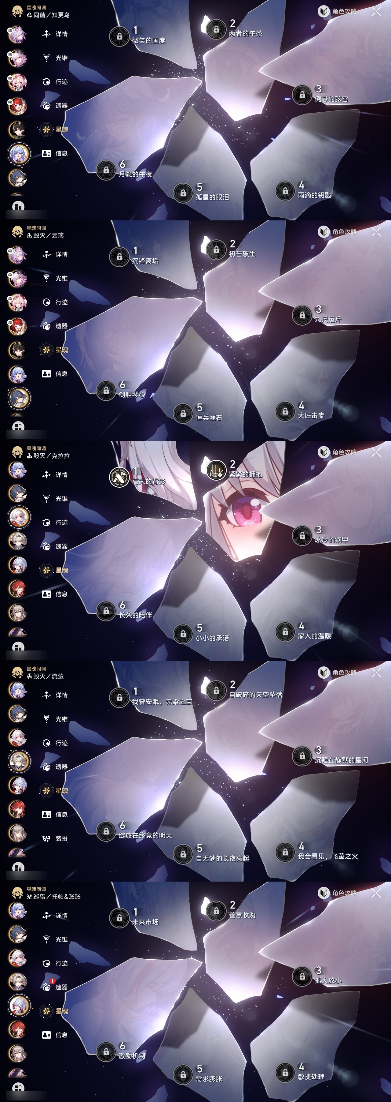 【崩坏·星穹铁道】【lyxq9048】冒险等级:70,女主,五星数量:60,五星角色:彦卿 3命克拉拉 2命白露 1命布洛妮娅 1命姬子 1命刃 1命云璃飞霄希儿杰帕德瓦尔特星期日大黑塔罗刹缇宝丹恒·饮月遐蝶符玄镜流托帕账账藿藿真理医生花火黄泉风堇砂金知更鸟saberarcher长夜月丹恒·腾荒流萤__五星光锥:星海巡航 5精记一位星神的陨落 5精不息的演算 5精记忆永不落幕 5精记忆的质料 2精落日时起舞制胜的瞬间以世界之名以世界之名无可取代的东西时节不居但战斗还未结束但战斗还未结束但战斗还未结束回到大地的飞行向着不可追问处如果时间是一朵花孤独的疗愈比阳光更明亮的让告别,更美一些此身为剑惊魂夜镜中故我游戏尘寰行于流逝的岸愿虹光永驻天空命运从未公平梦应归于何处__四星角色:娜塔莎 6命虎克 6命貊泽 6命黑塔 6命丹恒 6命艾丝妲 6命希露瓦 6命停云 6命素裳 6命桑博 6命三月七 6命青雀 6命佩拉 6命驭空 6命卢卡 6命玲可 6命桂乃芬 6命寒鸦 6命雪衣 6命米沙 6命加拉赫 6命阿兰 4命