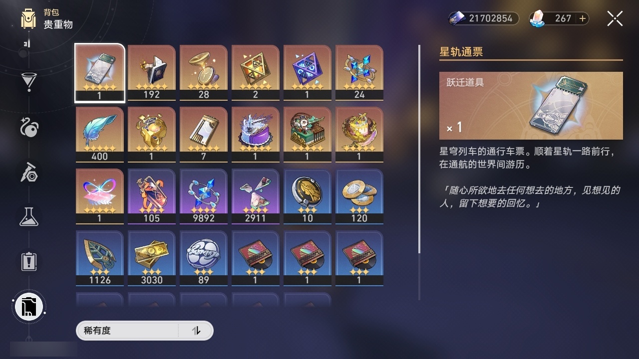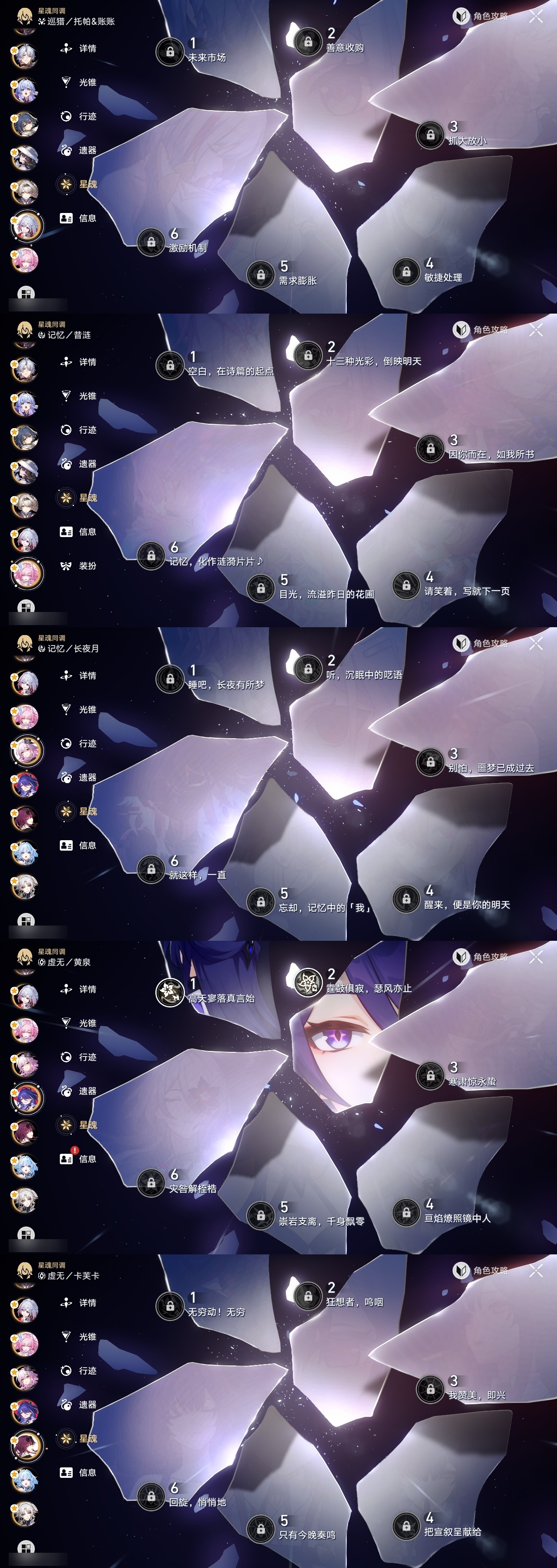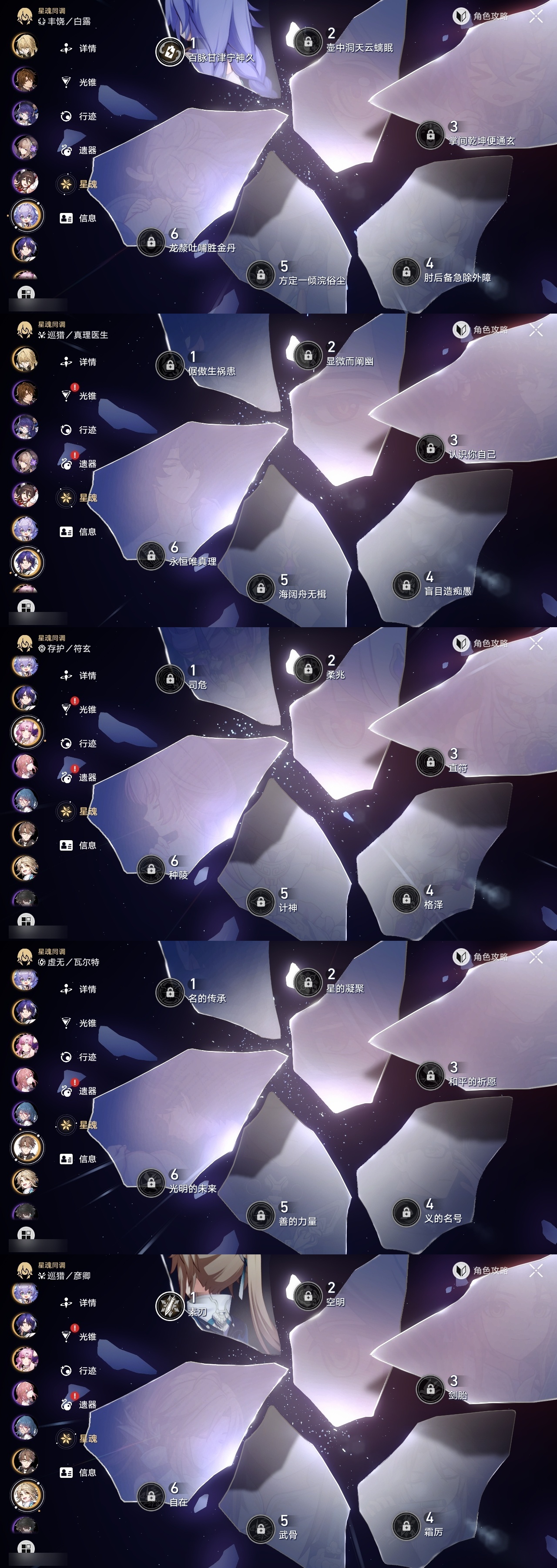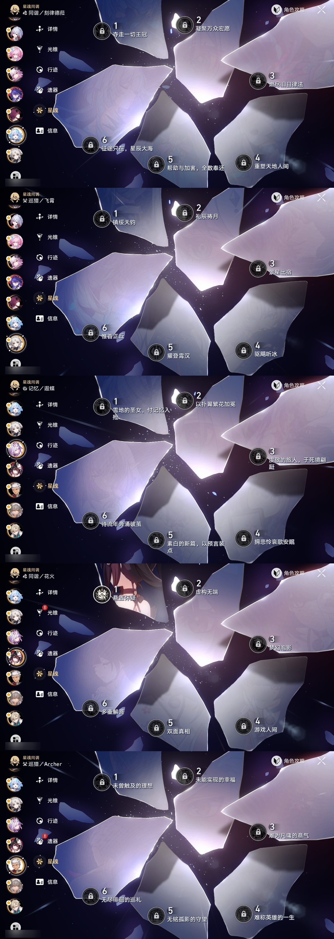 【崩坏·星穹铁道】【lyxq9168】冒险等级:70,女主,五星数量:49,五星角色:姬子 2命黄泉 2命希儿 1命白露 1命布洛妮娅 1命彦卿 1命克拉拉 1命刃 1命花火 1命流萤 1命云璃飞霄景元杰帕德瓦尔特星期日罗刹卡芙卡丹恒·饮月遐蝶符玄镜流托帕账账真理医生砂金知更鸟白厄saberarcher海瑟音刻律德菈长夜月丹恒·腾荒昔涟大丽花__五星光锥:星海巡航 5精记忆的质料 5精记一位星神的陨落 5精不息的演算 5精孤独的疗愈 5精记忆永不落幕 5精银河铁道之夜 2精制胜的瞬间以世界之名如泥酣眠让告别,更美一些行于流逝的岸理想燃烧的地狱没有回报的加冕__四星角色:阿兰 6命娜塔莎 6命虎克 6命貊泽 6命黑塔 6命丹恒 6命艾丝妲 6命希露瓦 6命停云 6命素裳 6命桑博 6命三月七 6命青雀 6命佩拉 6命驭空 6命卢卡 6命玲可 6命桂乃芬 6命寒鸦 6命雪衣 6命米沙 6命加拉赫 6命
