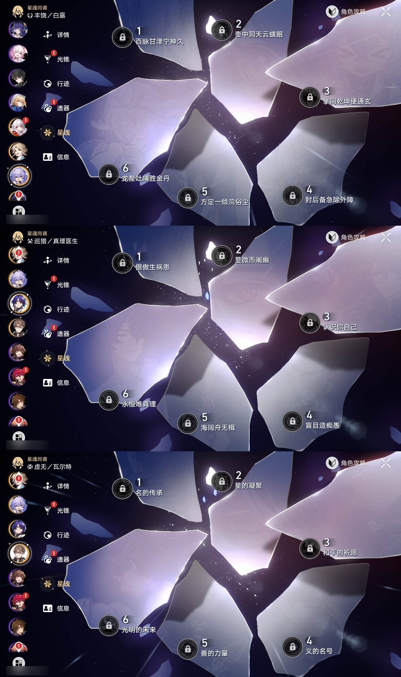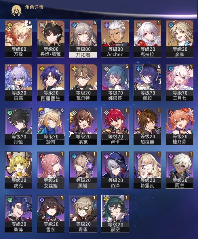 【崩坏·星穹铁道】【lyxq9164】冒险等级:62,女主,五星数量:12,五星角色:万敌 6命克拉拉 1命白露彦卿瓦尔特真理医生archer丹恒·腾荒__五星光锥:星海巡航 5精制胜的瞬间时节不居血火啊,燃烧前路__四星角色:佩拉 6命玲可 6命娜塔莎 5命阿兰 1命貊泽 1命黑塔 1命艾丝妲 1命希露瓦 1命三月七 1命青雀 1命驭空 1命卢卡 1命雪衣 1命加拉赫 1命虎克丹恒素裳桑博桂乃芬还有300抽