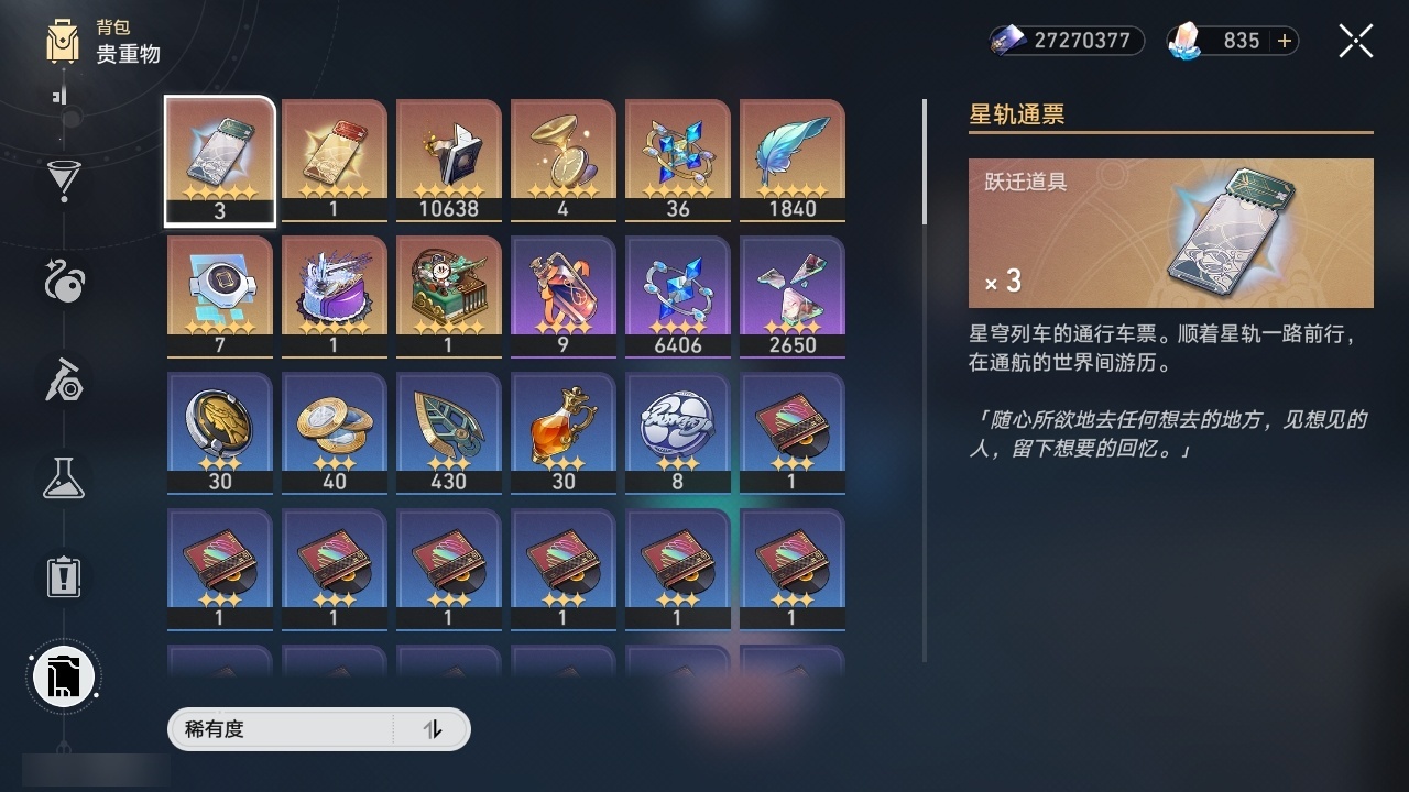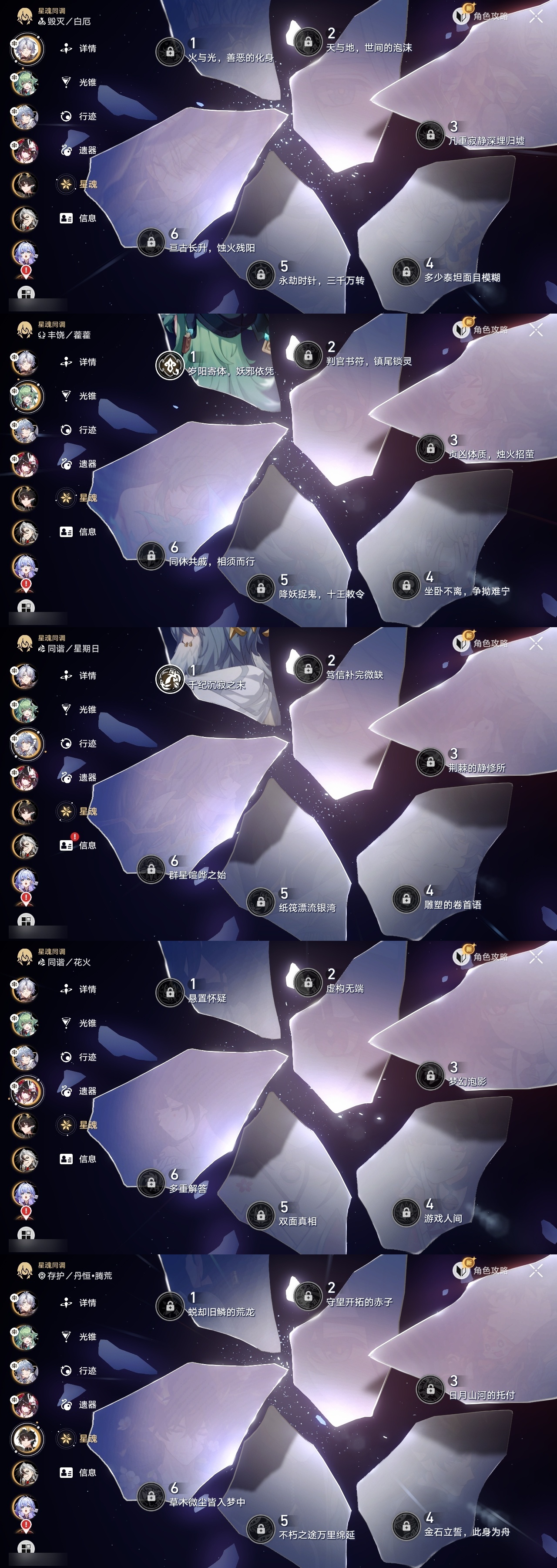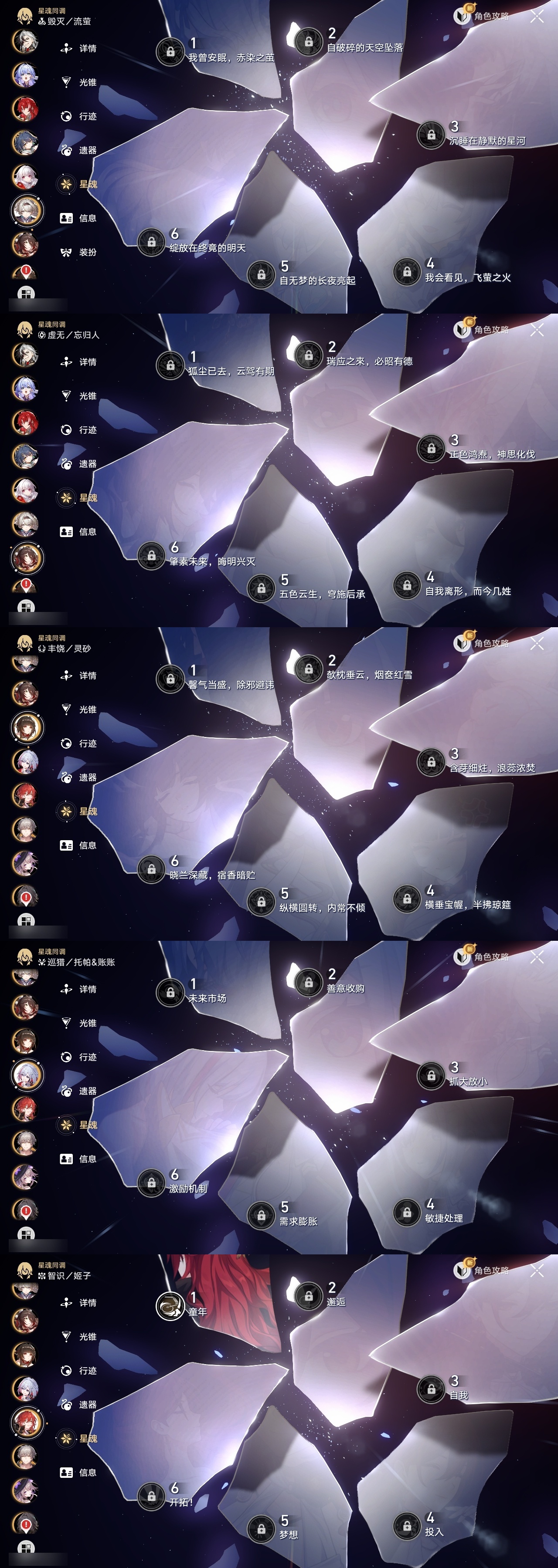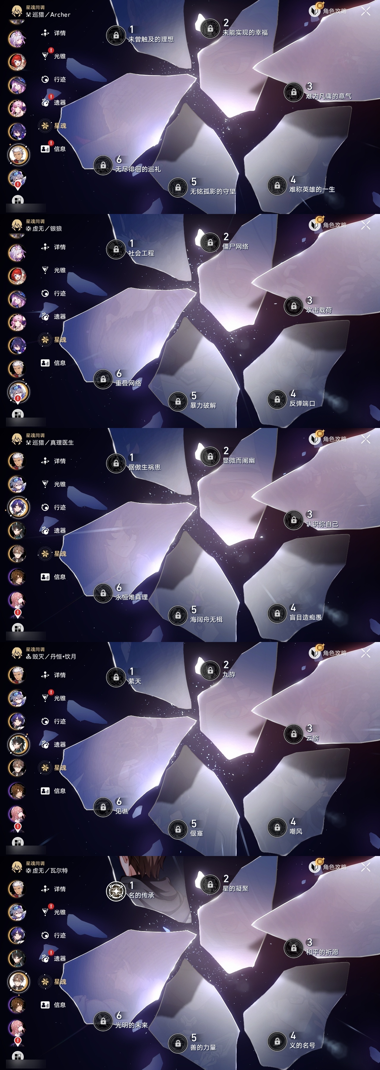 【崩坏·星穹铁道】【lyxq9210】冒险等级:70,男主,五星数量:52,五星角色:白露 5命克拉拉 3命姬子 1命瓦尔特 1命星期日 1命藿藿 1命云璃银狼景元希儿布洛妮娅灵砂杰帕德彦卿大黑塔忘归人缇宝刃卡芙卡丹恒·饮月遐蝶符玄托帕账账银枝真理医生黑天鹅花火黄泉知更鸟白厄archer丹恒·腾荒波提欧流萤翡翠__五星光锥:星海巡航 5精不息的演算 5精记一位星神的陨落 3精制胜的瞬间银河铁道之夜以世界之名无可取代的东西时节不居于夜色中到不了的彼岸孤独的疗愈让告别,更美一些烦恼着,幸福着重塑时光之忆行于流逝的岸记忆永不落幕黎明恰如此燃烧__四星角色:阿兰 6命娜塔莎 6命虎克 6命貊泽 6命黑塔 6命丹恒 6命艾丝妲 6命希露瓦 6命停云 6命素裳 6命桑博 6命三月七 6命青雀 6命佩拉 6命驭空 6命玲可 6命桂乃芬 6命寒鸦 6命雪衣 6命米沙 6命加拉赫 6命卢卡 5命