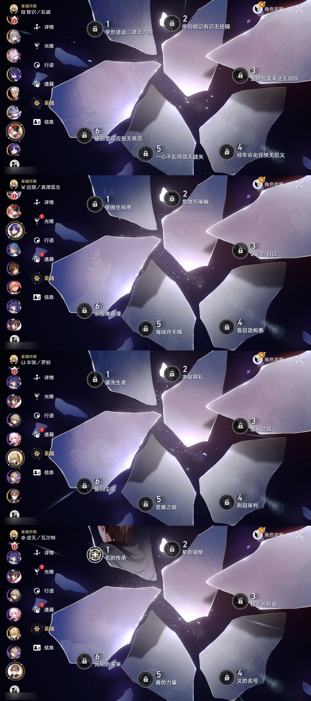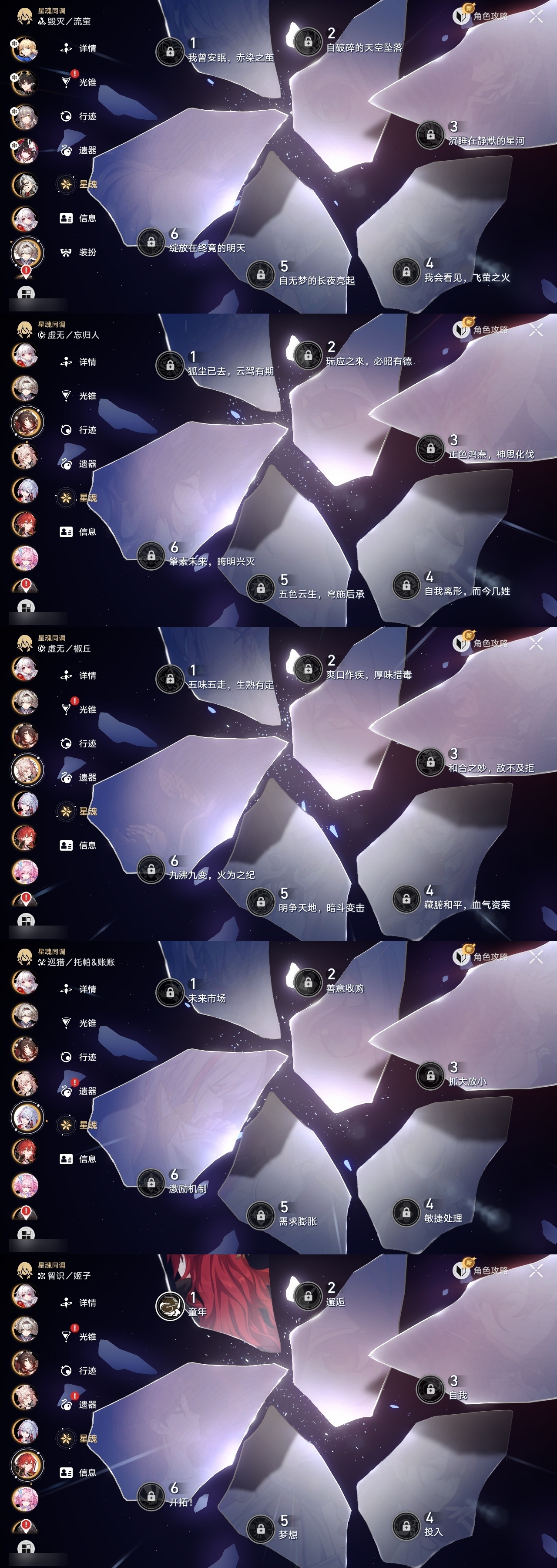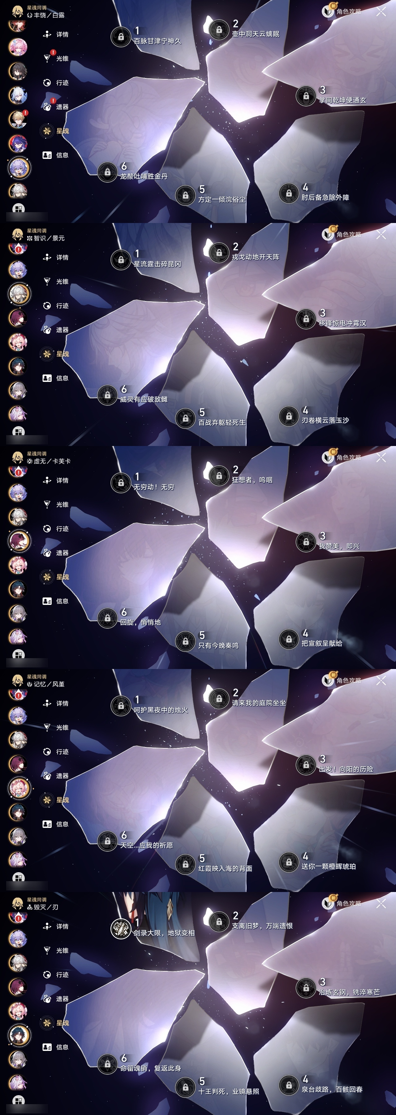 【崩坏·星穹铁道】【lyxq9220】冒险等级:70,女主,五星数量:40,五星角色:布洛妮娅 6命杰帕德 2命希儿 1命姬子 1命瓦尔特 1命克拉拉 1命刃 1命椒丘银狼景元白露乱破忘归人罗刹卡芙卡遐蝶镜流托帕账账真理医生花火黄泉风堇saberarcher丹恒·腾荒昔涟波提欧流萤__五星光锥:星海巡航 5精记忆永不落幕 5精记忆的质料 2精记一位星神的陨落 2精银河铁道之夜 2精无可取代的东西 2精但战斗还未结束到不了的彼岸让告别,更美一些此身为剑行于流逝的岸没有回报的加冕__四星角色:阿兰 6命娜塔莎 6命虎克 6命黑塔 6命丹恒 6命艾丝妲 6命希露瓦 6命素裳 6命桑博 6命三月七 6命青雀 6命佩拉 6命驭空 6命卢卡 6命玲可 6命桂乃芬 6命寒鸦 6命雪衣 6命米沙 6命加拉赫 6命停云 5命貊泽 4命遐碟黄泉带专队伍