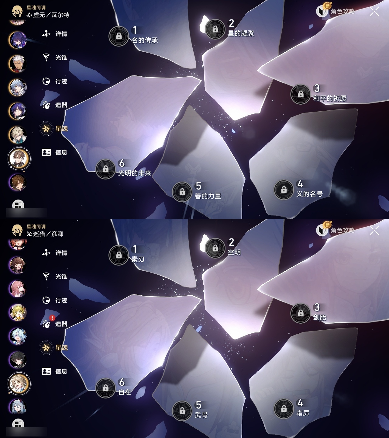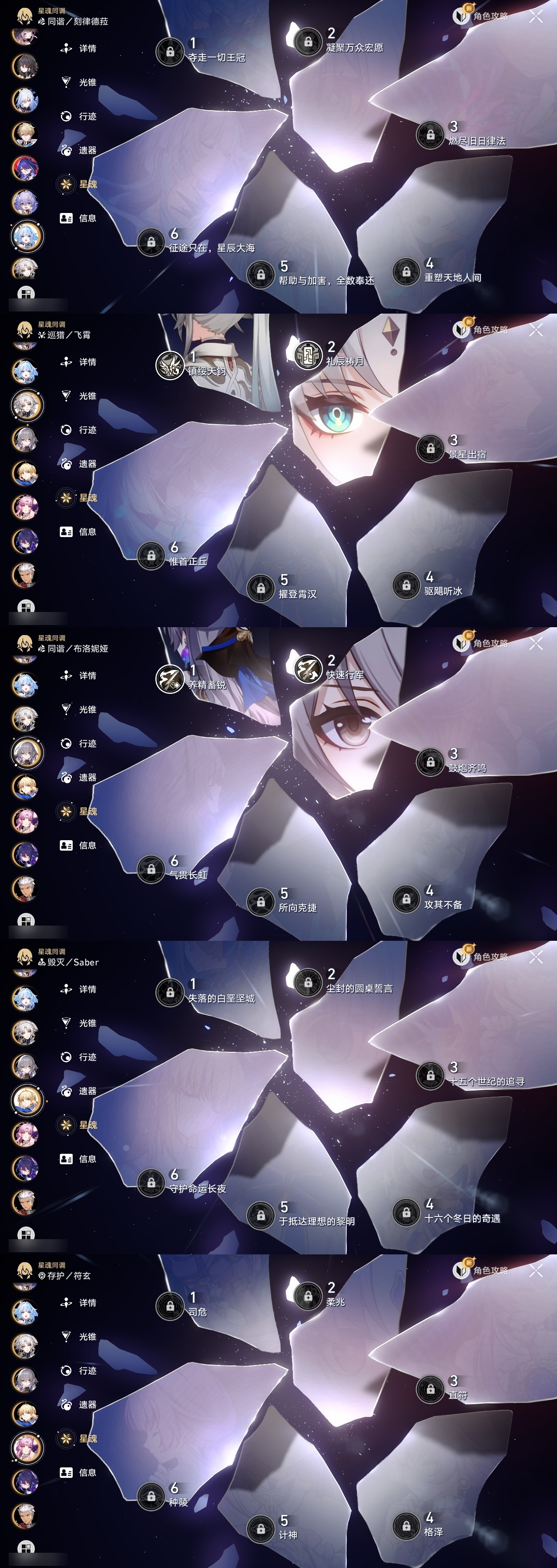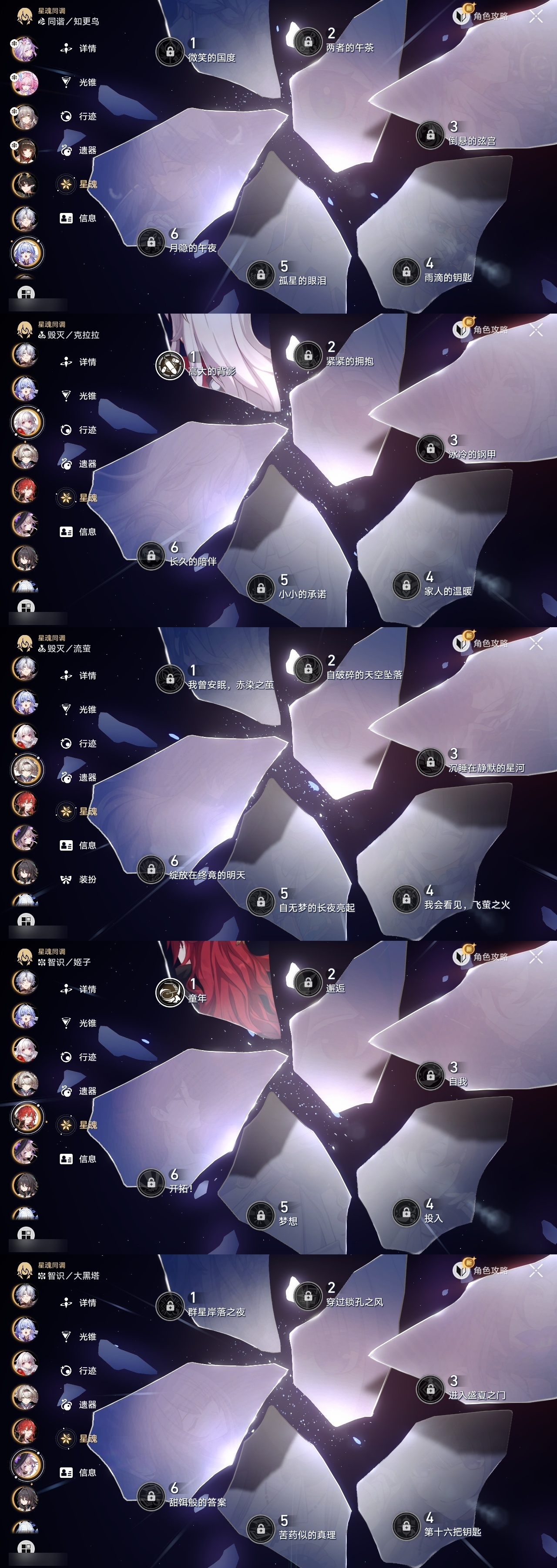 【崩坏·星穹铁道】【lyxq9262】冒险等级:70,女主,五星数量:49,五星角色:白露 3命飞霄 2命布洛妮娅 2命黄泉 2命希儿 1命姬子 1命克拉拉 1命遐蝶 1命灵砂杰帕德彦卿瓦尔特星期日大黑塔符玄镜流真理医生砂金知更鸟白厄saberarcher刻律德菈丹恒·腾荒昔涟流萤__五星光锥:星海巡航 5精记忆的质料 5精记一位星神的陨落 5精不息的演算 5精孤独的疗愈 5精记忆永不落幕 5精落日时起舞 2精以世界之名 2精但战斗还未结束 2精制胜的瞬间无可取代的东西时节不居时节不居我将,巡征追猎回到大地的飞行让告别,更美一些此身为剑镜中故我行于流逝的岸夜色流光溢彩黎明恰如此燃烧理想燃烧的地狱梦应归于何处__四星角色:阿兰 6命娜塔莎 6命虎克 6命貊泽 6命黑塔 6命丹恒 6命艾丝妲 6命希露瓦 6命停云 6命素裳 6命桑博 6命三月七 6命青雀 6命佩拉 6命卢卡 6命玲可 6命雪衣 6命米沙 6命加拉赫 6命驭空 4命桂乃芬 4命寒鸦 3命白厄带专队伍 二命飞霄追击队