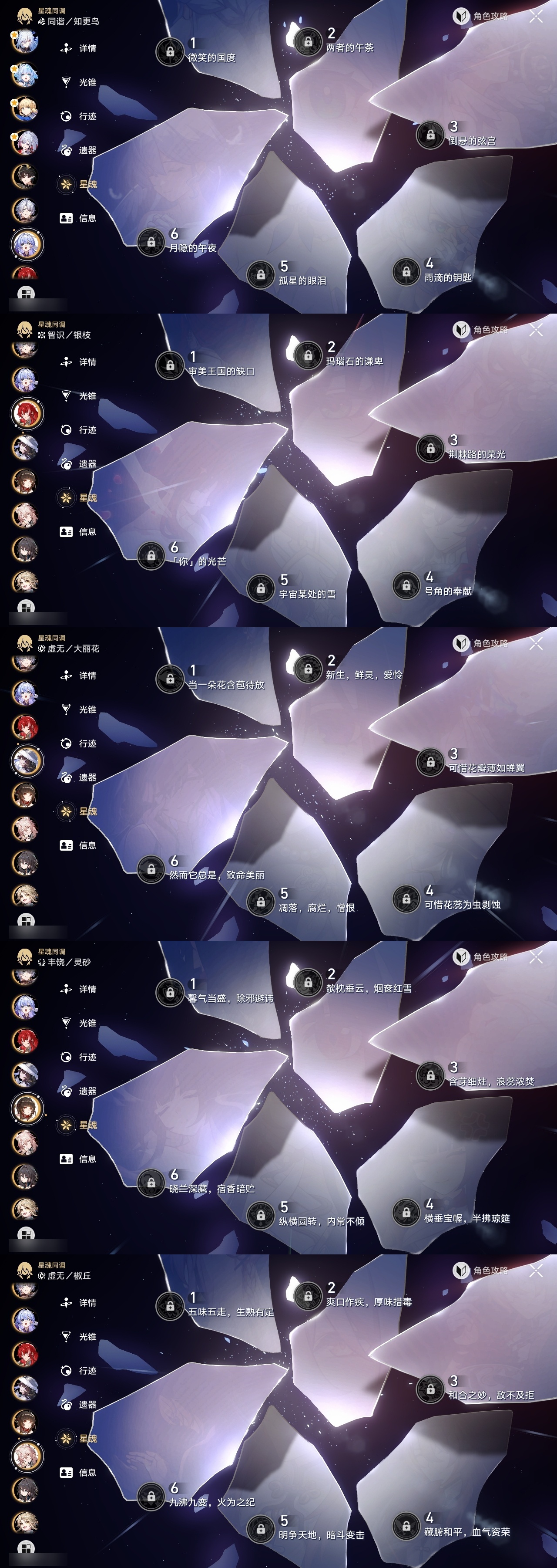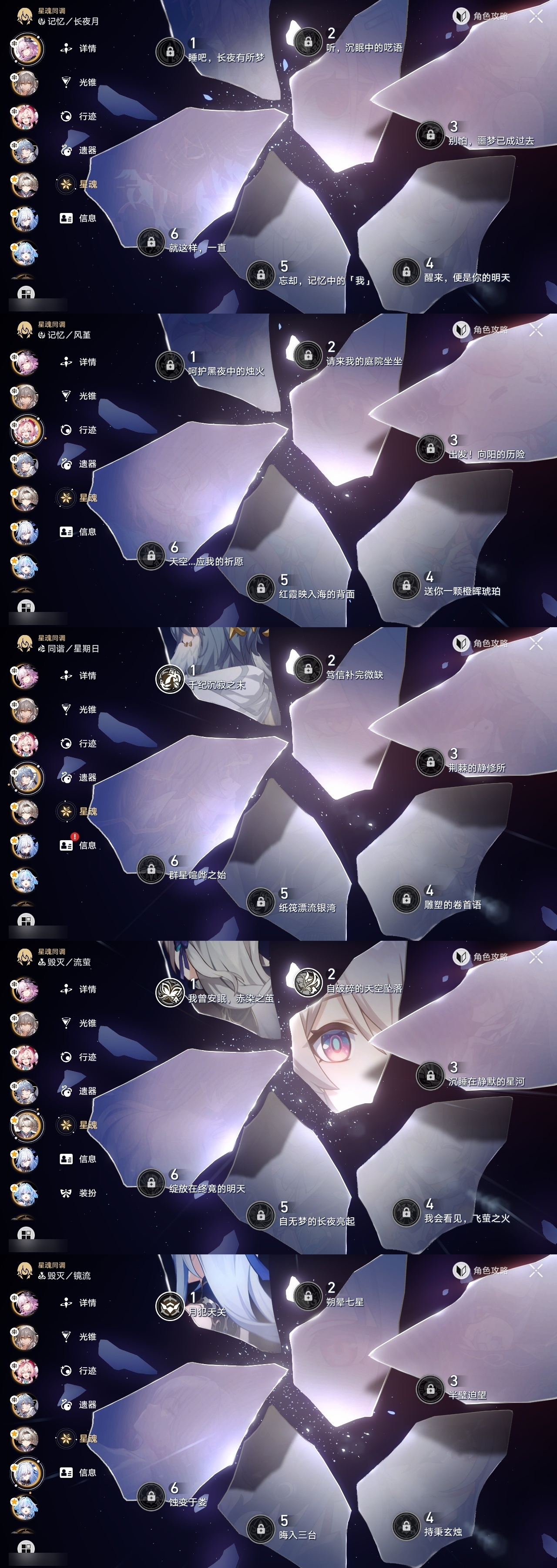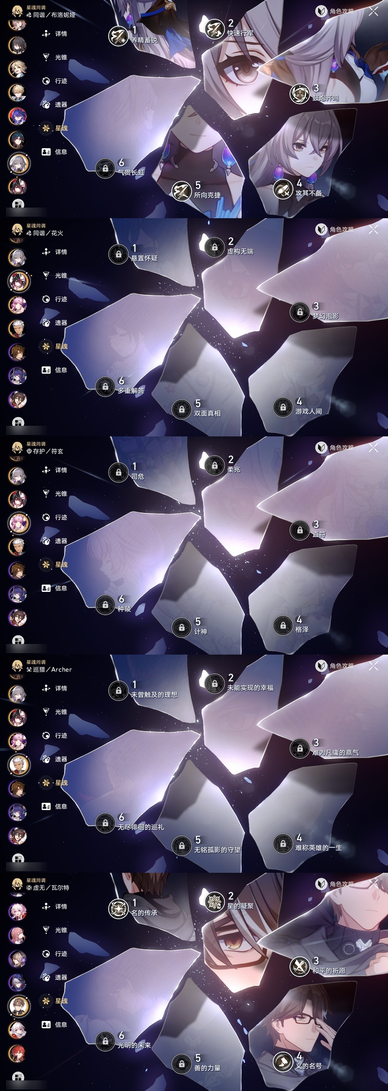 【崩坏·星穹铁道】【lyxq9326】冒险等级:70,女主,五星数量:53,五星角色:布洛妮娅 5命瓦尔特 4命彦卿 3命黄泉 2命刻律德菈 2命流萤 2命杰帕德 1命星期日 1命镜流 1命椒丘希儿姬子灵砂克拉拉刃符玄托帕账账银枝真理医生花火风堇知更鸟白厄saberarcher长夜月丹恒·腾荒大丽花__五星光锥:记忆的质料 5精记一位星神的陨落 5精记忆永不落幕 5精但战斗还未结束 2精星海巡航那无数个春天制胜的瞬间银河铁道之夜银河铁道之夜时节不居如泥酣眠回到大地的飞行到不了的彼岸孤独的疗愈她已闭上双眼此身为剑片刻,留在眼底镜中故我游戏尘寰行于流逝的岸理想燃烧的地狱没有回报的加冕金血铭刻的时代致长夜的星光梦应归于何处__四星角色:阿兰 6命娜塔莎 6命虎克 6命貊泽 6命黑塔 6命丹恒 6命艾丝妲 6命停云 6命素裳 6命桑博 6命三月七 6命青雀 6命佩拉 6命驭空 6命玲可 6命桂乃芬 6命寒鸦 6命雪衣 6命米沙 6命加拉赫 6命卢卡 5命希露瓦 4命白厄队