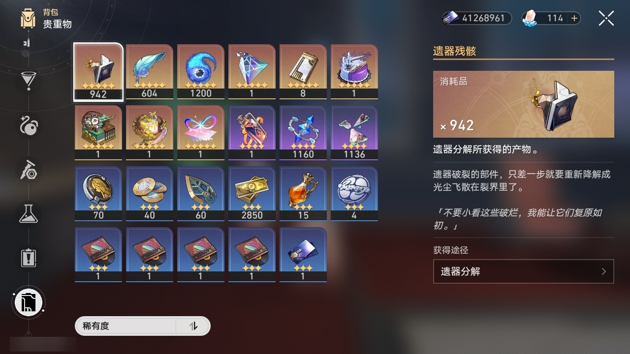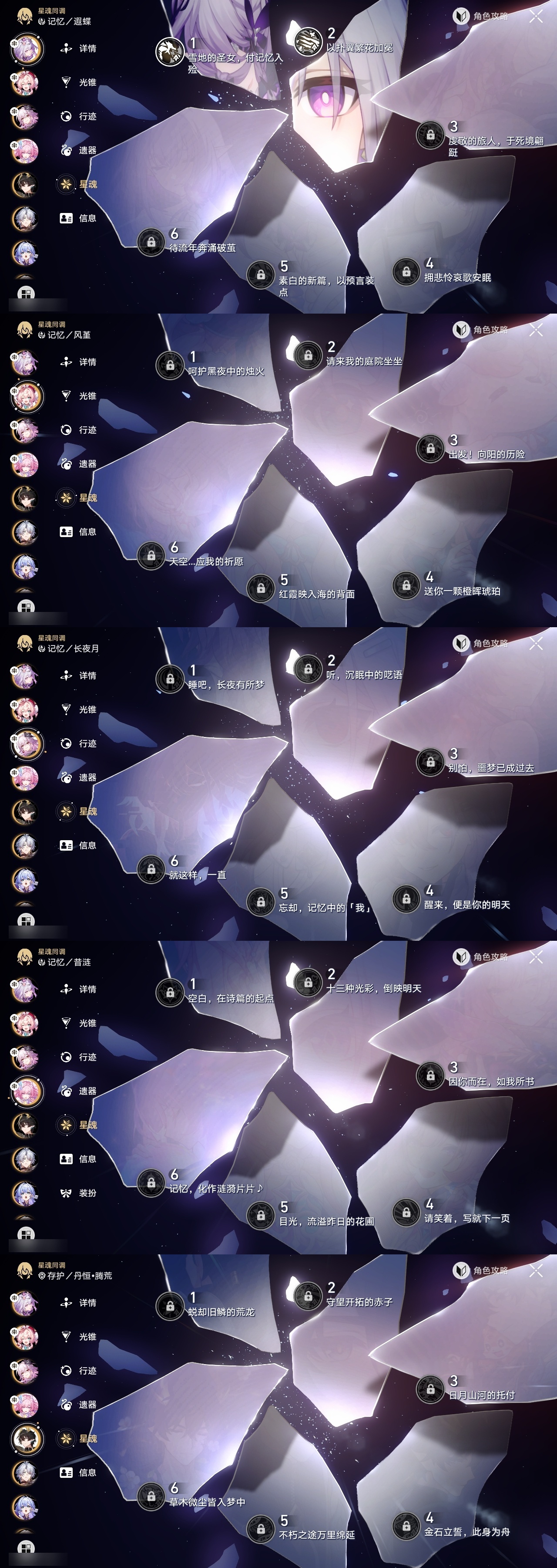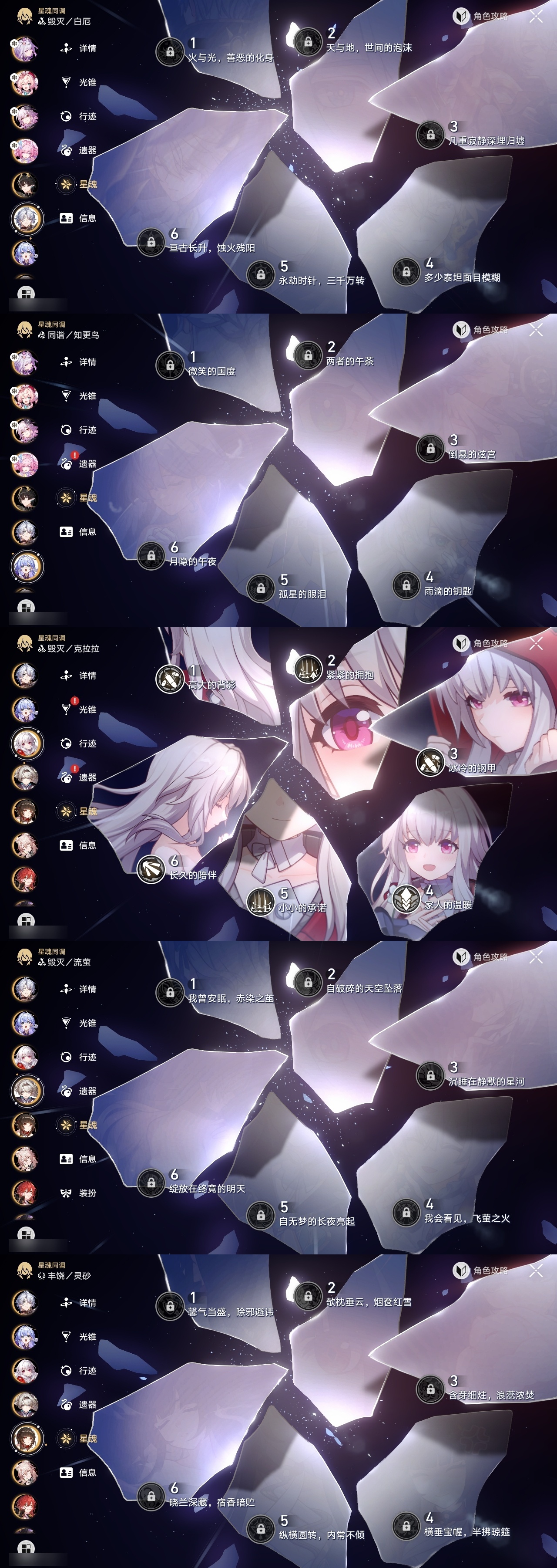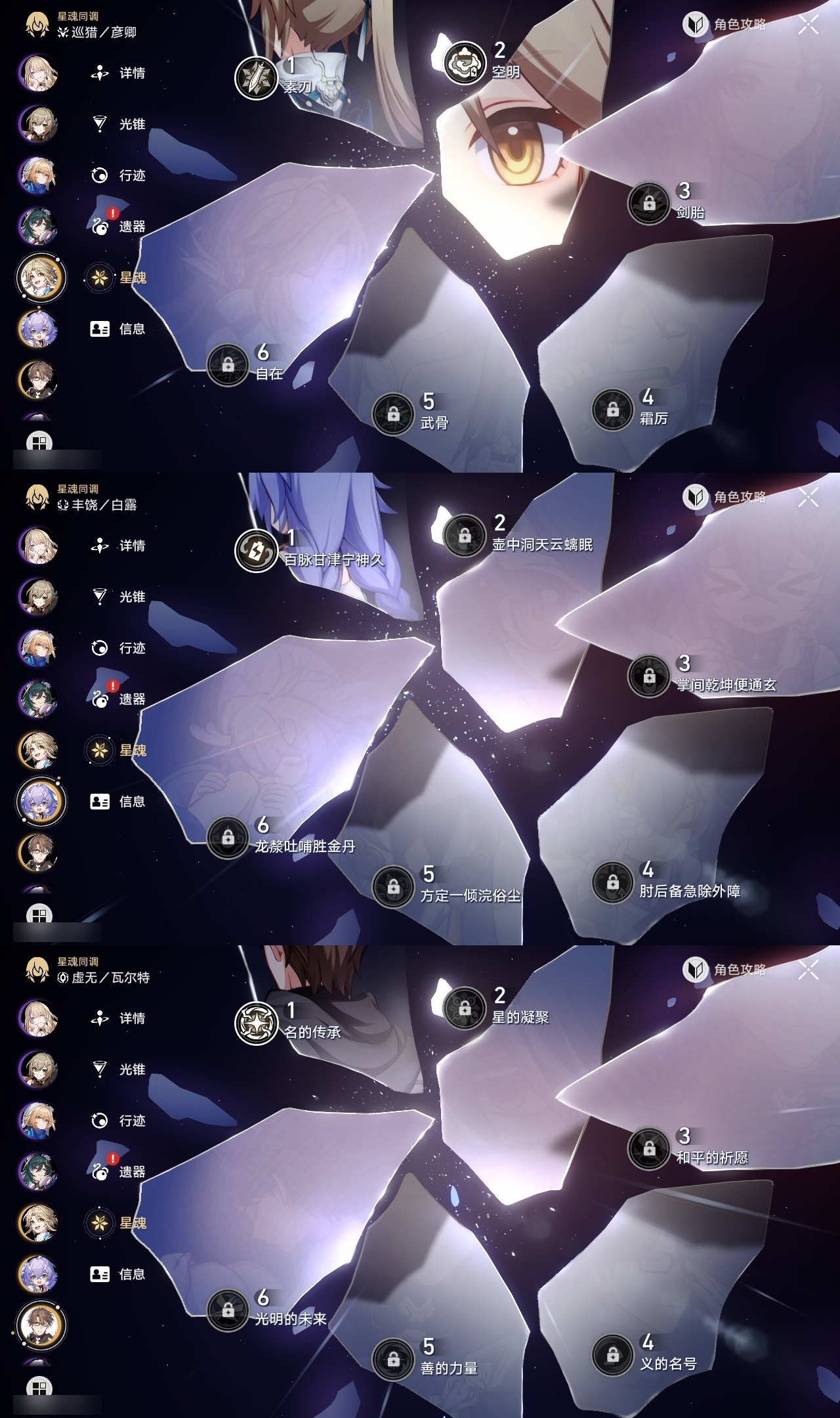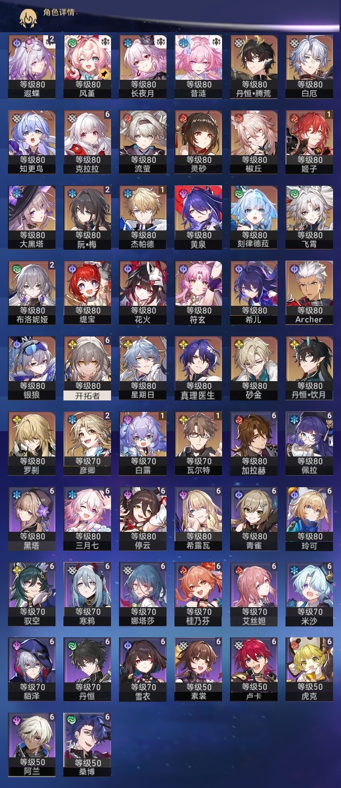 【崩坏·星穹铁道】【lyxq9390】冒险等级:70,女主,五星数量:51,五星角色:克拉拉 6命布洛妮娅 2命彦卿 2命遐蝶 2命白露 1命姬子 1命杰帕德 1命瓦尔特 1命椒丘飞霄银狼希儿灵砂星期日大黑塔罗刹缇宝丹恒·饮月符玄真理医生花火黄泉风堇砂金知更鸟白厄archer刻律德菈长夜月丹恒·腾荒昔涟流萤__五星光锥:记忆的质料 5精记忆永不落幕 5精以世界之名 2精时节不居 2精如泥酣眠 2精落日时起舞制胜的瞬间但战斗还未结束但战斗还未结束但战斗还未结束于夜色中我将,巡征追猎向着不可追问处比阳光更明亮的让告别,更美一些游戏尘寰行于流逝的岸致长夜的星光梦应归于何处__四星角色:阿兰 6命娜塔莎 6命虎克 6命貊泽 6命黑塔 6命丹恒 6命艾丝妲 6命希露瓦 6命停云 6命素裳 6命桑博 6命三月七 6命青雀 6命佩拉 6命驭空 6命卢卡 6命玲可 6命桂乃芬 6命寒鸦 6命雪衣 6命米沙 6命加拉赫 6命