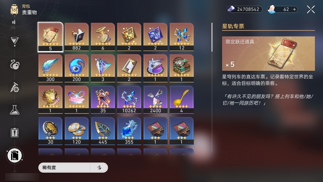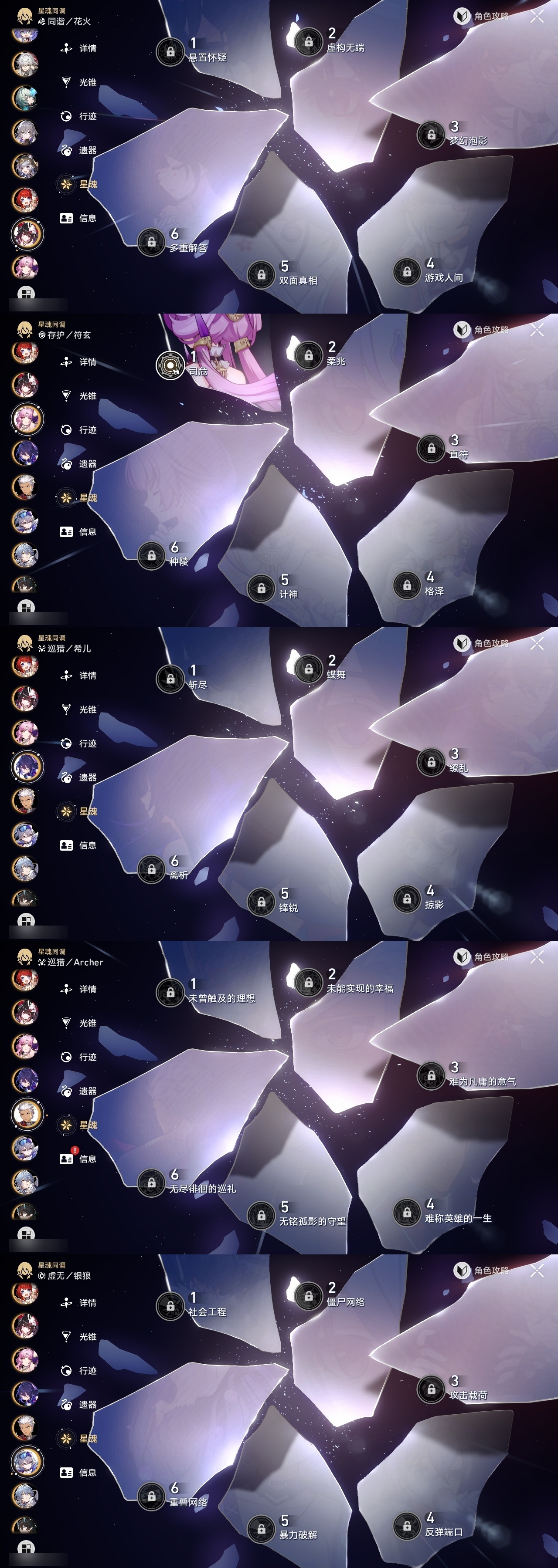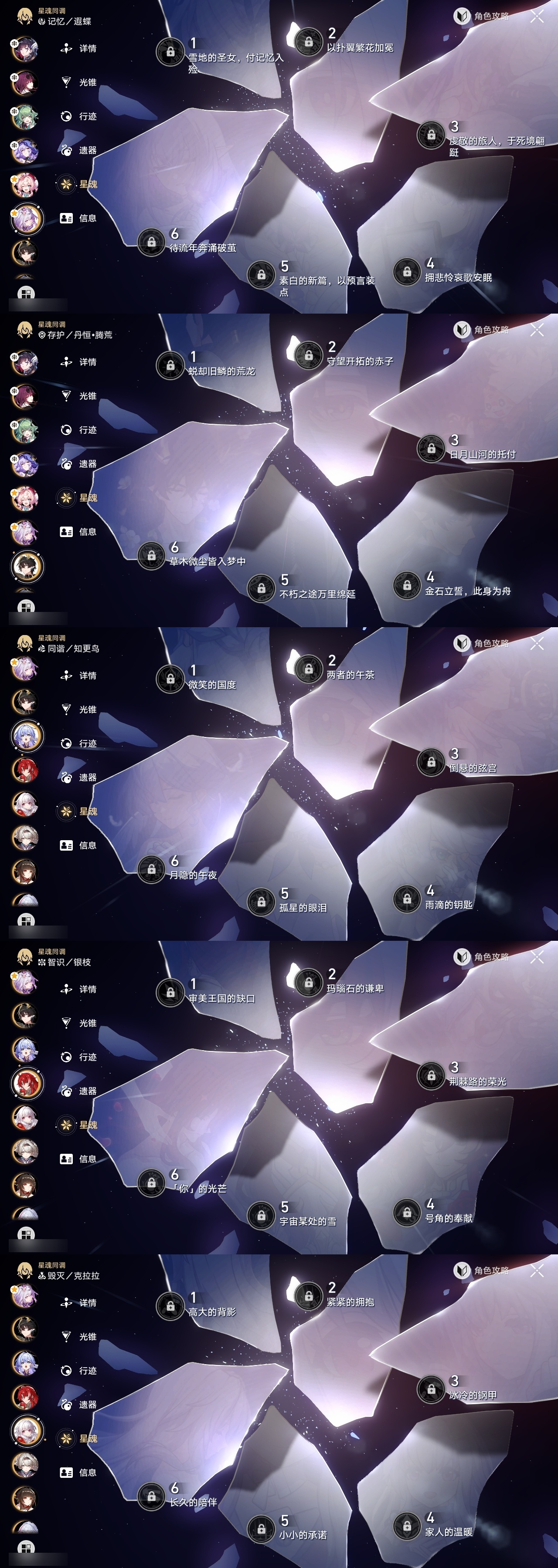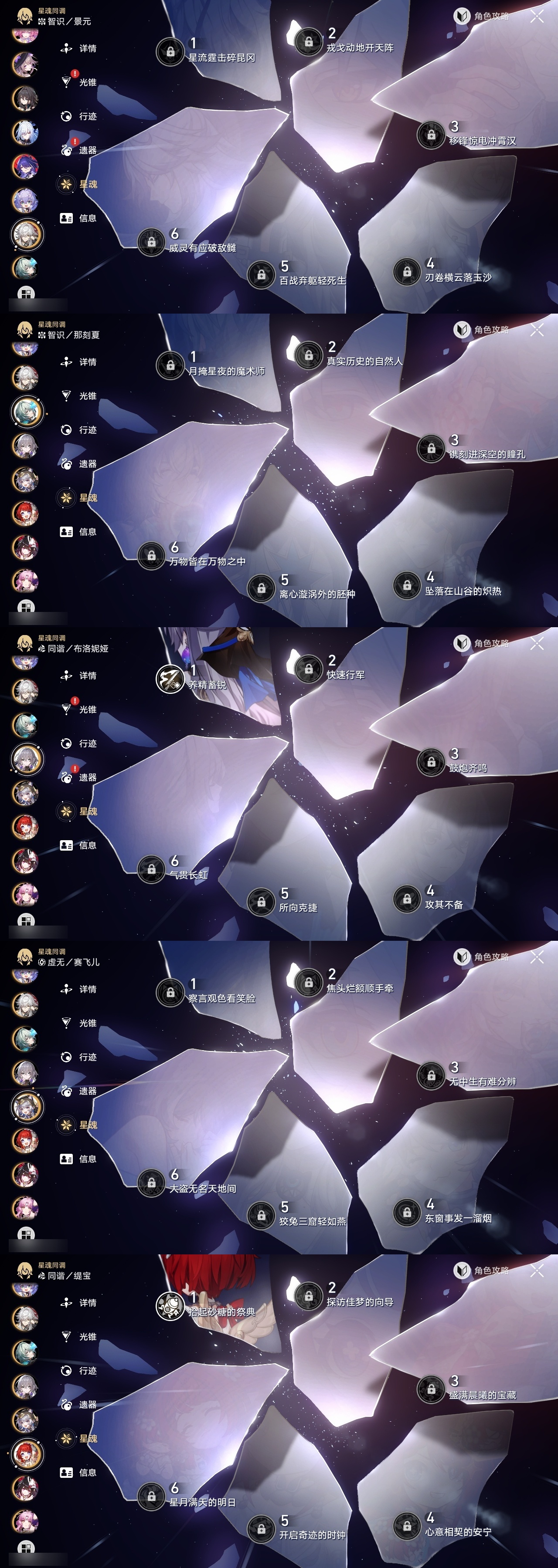 【崩坏·星穹铁道】【lyxq9180】冒险等级:70,女主,五星数量:51,五星角色:白露 6命瓦尔特 3命姬子 2命布洛妮娅 1命缇宝 1命符玄 1命银狼景元希儿灵砂彦卿克拉拉星期日大黑塔卡芙卡丹恒·饮月遐蝶镜流托帕账账藿藿银枝真理医生黑天鹅花火那刻夏黄泉风堇知更鸟赛飞儿archer海瑟音丹恒·腾荒昔涟流萤__五星光锥:记一位星神的陨落 3精记忆永不落幕 3精星海巡航记忆的质料制胜的瞬间银河铁道之夜时节不居如泥酣眠但战斗还未结束于夜色中回到大地的飞行向着不可追问处孤独的疗愈她已闭上双眼让告别,更美一些愿虹光永驻天空理想燃烧的地狱__四星角色:阿兰 6命娜塔莎 6命黑塔 6命丹恒 6命艾丝妲 6命希露瓦 6命停云 6命素裳 6命桑博 6命三月七 6命青雀 6命佩拉 6命驭空 6命卢卡 6命玲可 6命桂乃芬 6命寒鸦 6命雪衣 6命米沙 6命加拉赫 6命虎克 5命貊泽 4命
