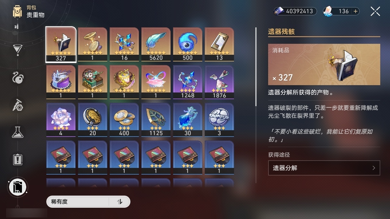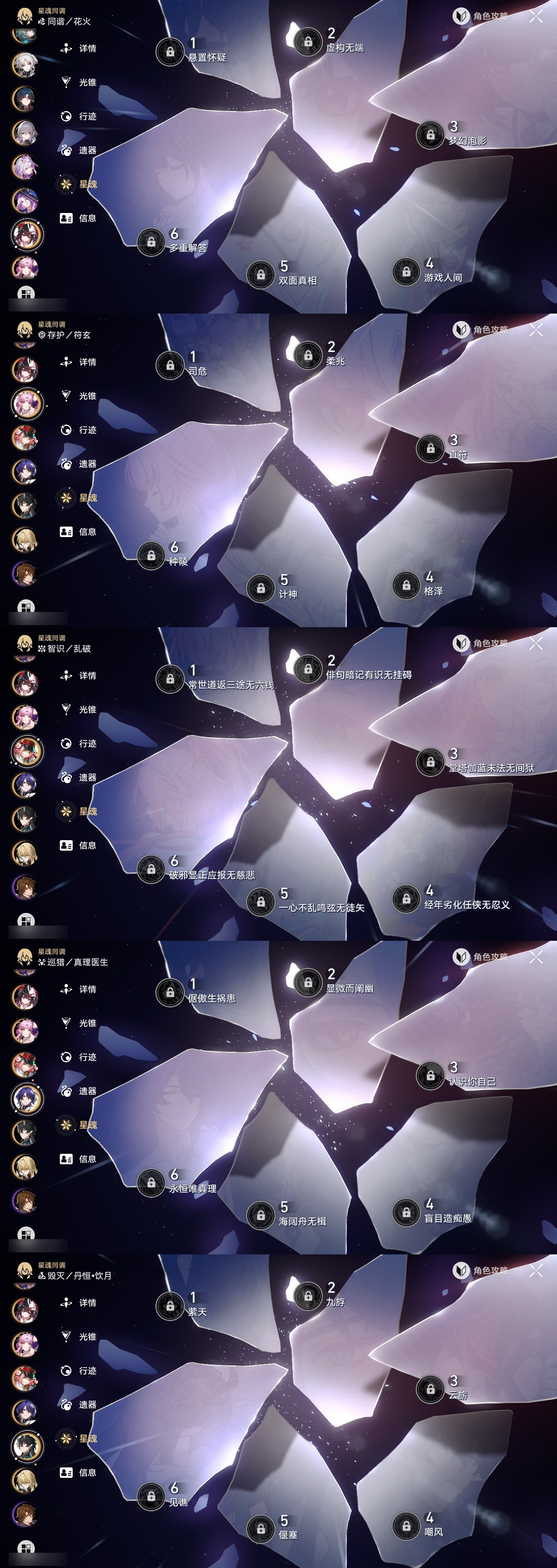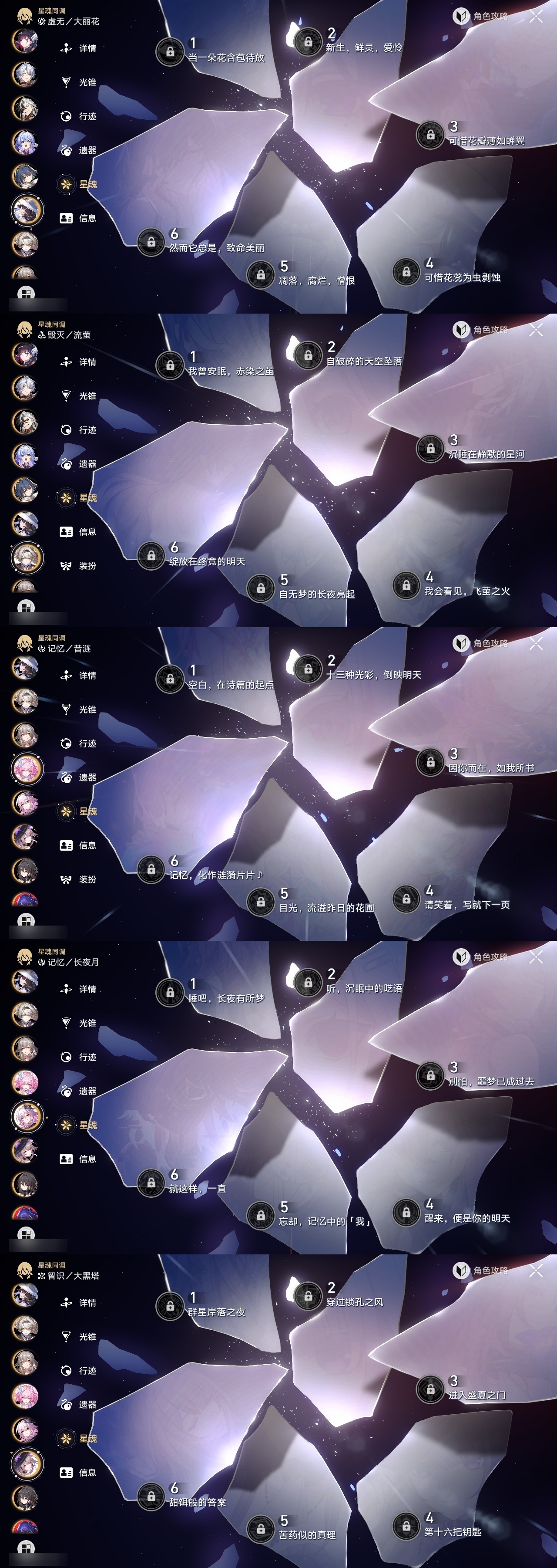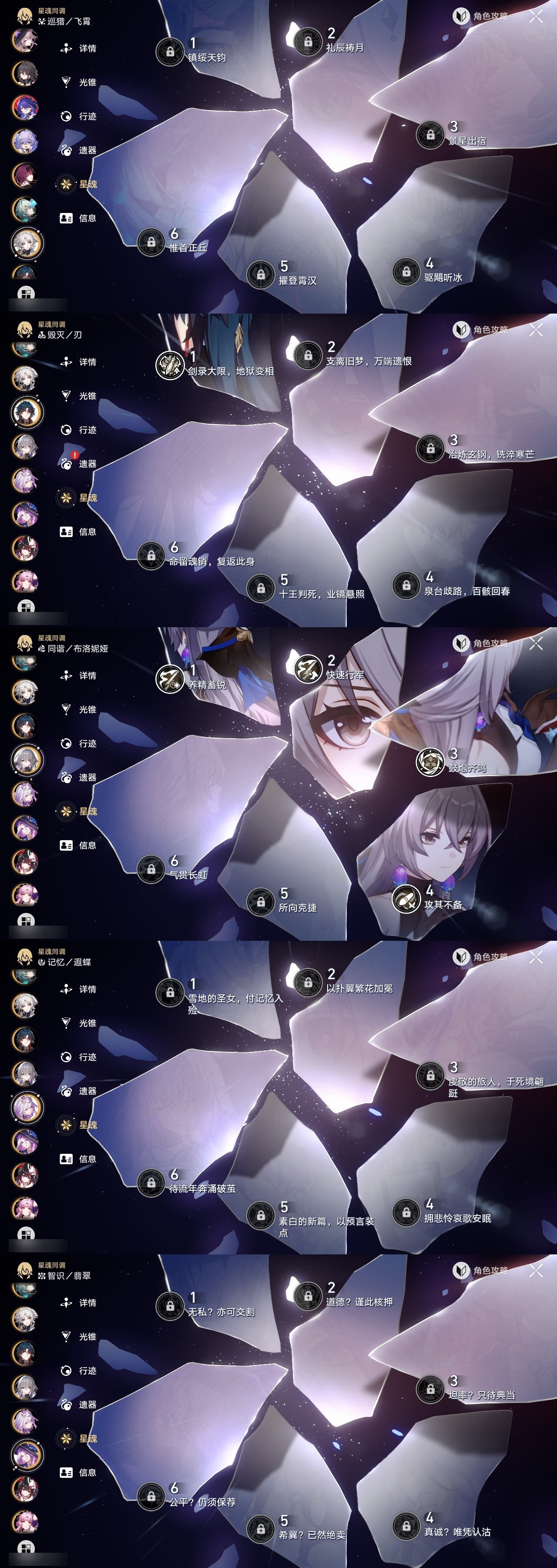 【崩坏·星穹铁道】【lyxq9408】冒险等级:70,女主,五星数量:56,五星角色:布洛妮娅 4命白露 2命杰帕德 2命阿格莱雅 2命姬子 1命瓦尔特 1命克拉拉 1命星期日 1命缇宝 1命刃 1命云璃飞霄灵砂彦卿乱破大黑塔罗刹卡芙卡丹恒·饮月遐蝶符玄托帕账账真理医生花火那刻夏黄泉知更鸟白厄archer海瑟音长夜月丹恒·腾荒昔涟大丽花波提欧流萤翡翠__五星光锥:星海巡航 5精记忆的质料 5精记一位星神的陨落 5精不息的演算 5精到不了的彼岸 2精落日时起舞无可取代的东西无可取代的东西如泥酣眠但战斗还未结束但战斗还未结束将光阴织成黄金如果时间是一朵花孤独的疗愈比阳光更明亮的此身为剑行于流逝的岸记忆永不落幕黎明恰如此燃烧__四星角色:阿兰 6命娜塔莎 6命虎克 6命貊泽 6命黑塔 6命丹恒 6命艾丝妲 6命希露瓦 6命停云 6命素裳 6命桑博 6命三月七 6命青雀 6命佩拉 6命驭空 6命卢卡 6命玲可 6命桂乃芬 6命寒鸦 6命雪衣 6命米沙 6命加拉赫 6命
