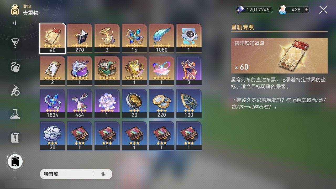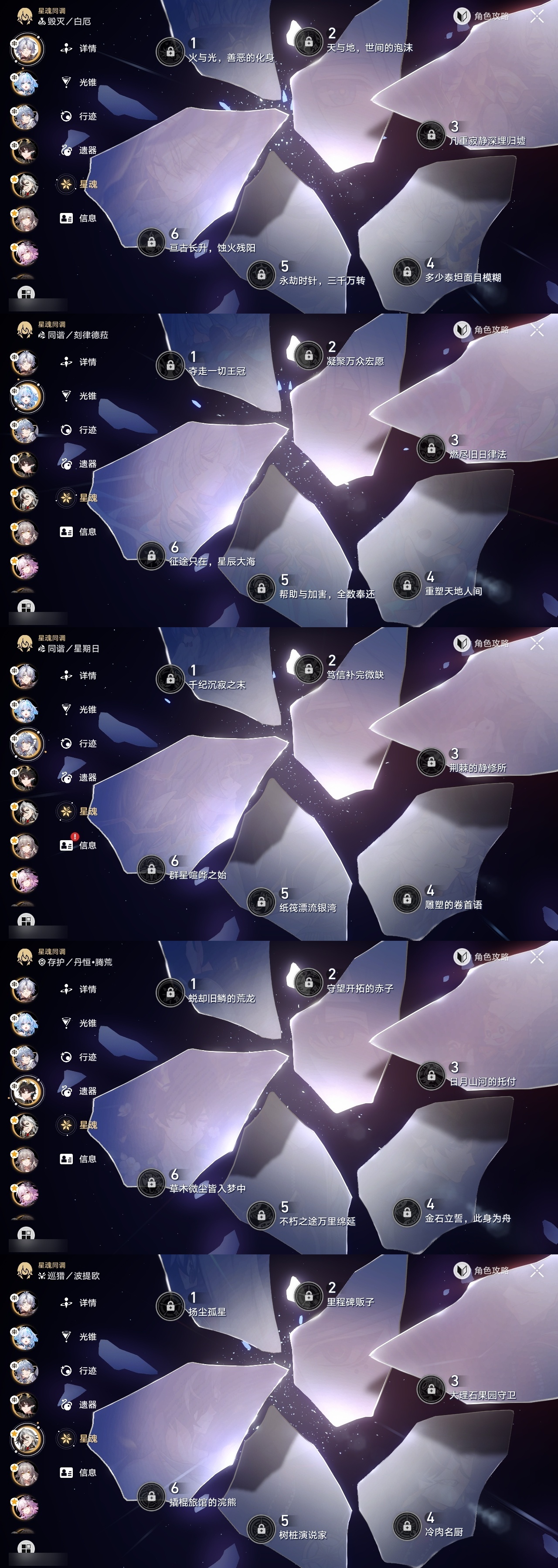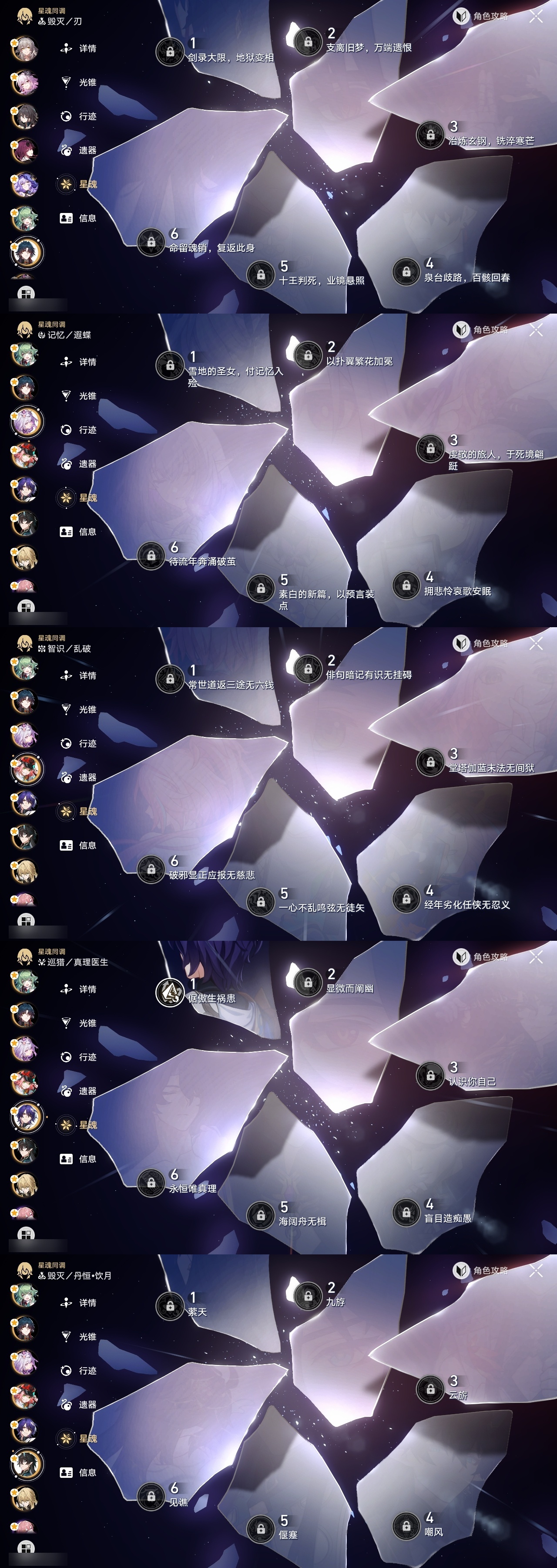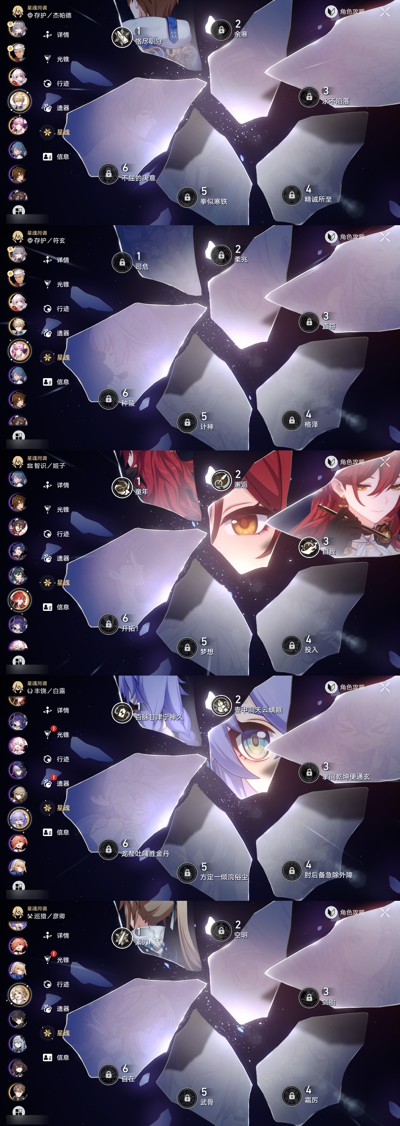 【崩坏·星穹铁道】【lyxq9406】冒险等级:70,女主,五星数量:32,五星角色:姬子 3命白露 2命杰帕德 1命彦卿 1命克拉拉 1命真理医生 1命布洛妮娅瓦尔特乱破星期日罗刹刃卡芙卡丹恒·饮月遐蝶符玄藿藿黑天鹅花火白厄archer刻律德菈长夜月丹恒·腾荒波提欧__五星光锥:星海巡航记一位星神的陨落时节不居但战斗还未结束但战斗还未结束黎明恰如此燃烧致长夜的星光__四星角色:阿兰 6命娜塔莎 6命虎克 6命貊泽 6命丹恒 6命艾丝妲 6命停云 6命素裳 6命桑博 6命三月七 6命青雀 6命佩拉 6命驭空 6命玲可 6命桂乃芬 6命寒鸦 6命加拉赫 6命黑塔 5命希露瓦 5命卢卡 4命雪衣 4命米沙 3命