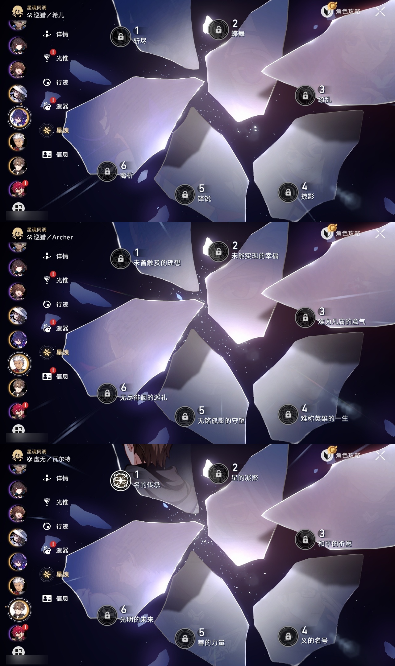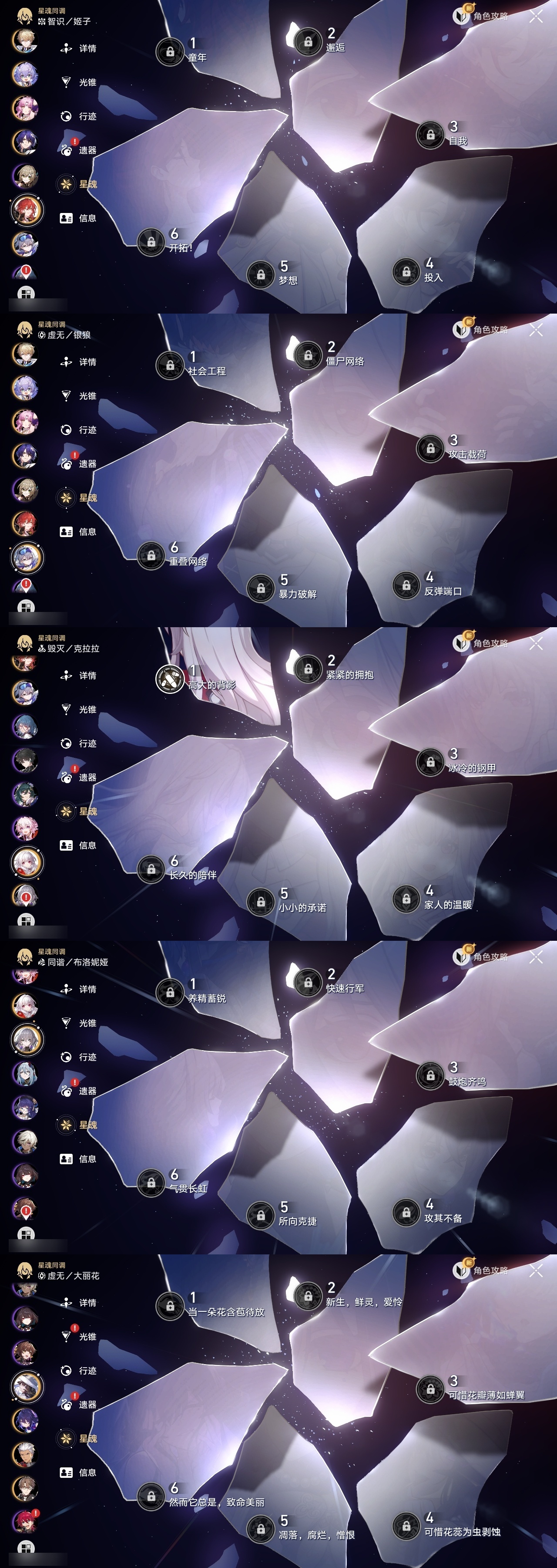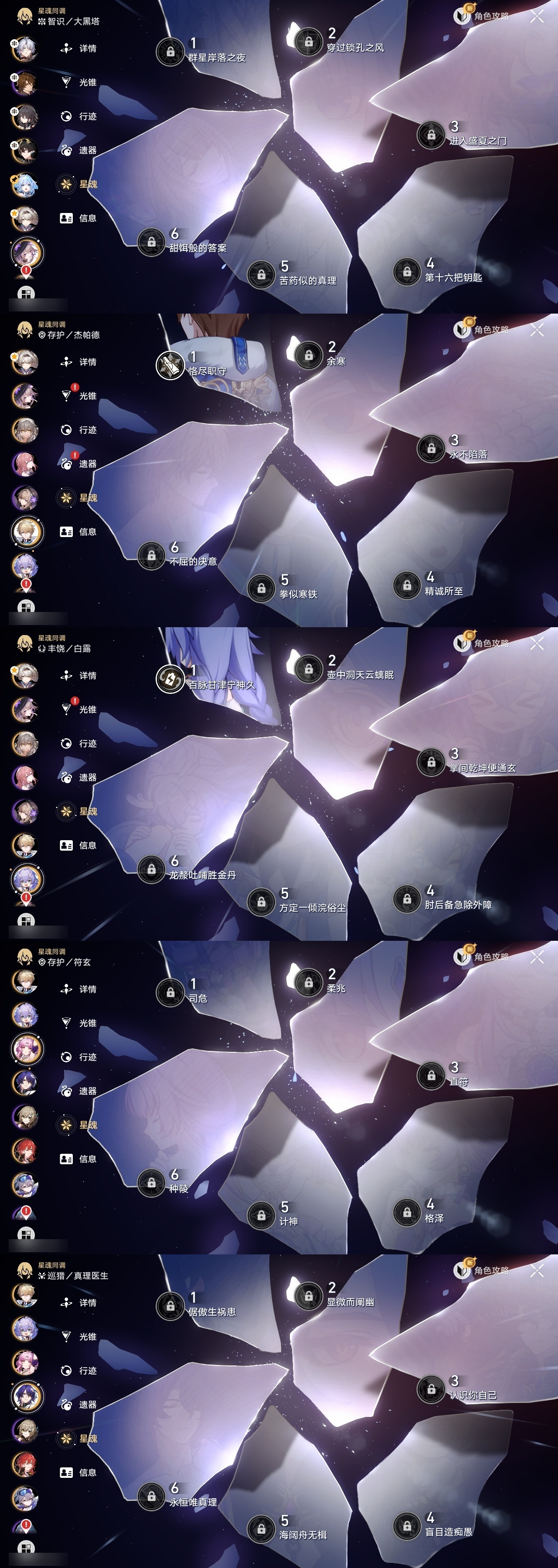 【崩坏·星穹铁道】【lyxq9445】冒险等级:66,女主,五星数量:21,五星角色:白厄 2命流萤 2命白露 1命杰帕德 1命瓦尔特 1命克拉拉 1命银狼希儿布洛妮娅姬子大黑塔符玄真理医生archer刻律德菈丹恒·腾荒大丽花__五星光锥:制胜的瞬间以世界之名黎明恰如此燃烧梦应归于何处__四星角色:黑塔 6命三月七 6命佩拉 6命驭空 6命玲可 6命雪衣 6命加拉赫 6命丹恒 5命艾丝妲 5命娜塔莎 4命停云 4命米沙 4命阿兰 3命青雀 3命寒鸦 3命貊泽 2命桑博 2命卢卡 2命虎克 1命希露瓦 1命素裳 1命桂乃芬 1命21白厄队 21流萤击破队