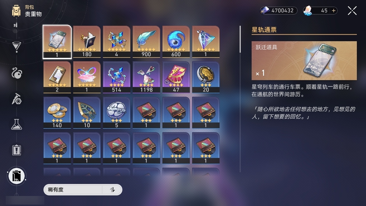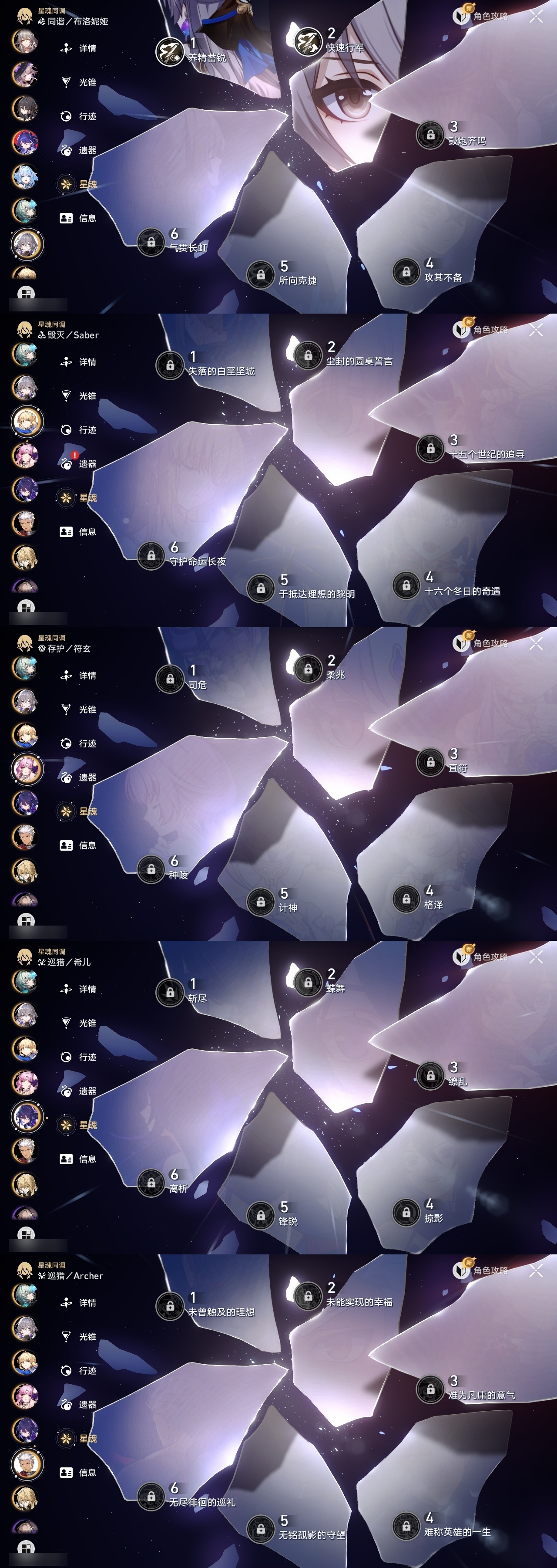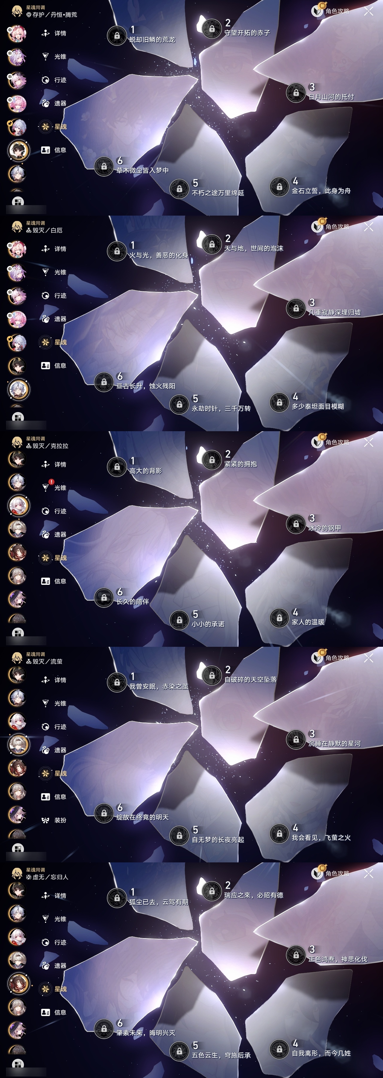 【崩坏·星穹铁道】【lyxq9603】冒险等级:70,女主,五星数量:39,五星角色:布洛妮娅 2命遐蝶 2命昔涟 1命希儿白露杰帕德瓦尔特克拉拉大黑塔忘归人罗刹刃符玄托帕账账那刻夏黄泉风堇白厄saberarcher刻律德菈长夜月丹恒·腾荒流萤__五星光锥:星海巡航 5精记一位星神的陨落 5精记忆永不落幕 5精以世界之名如泥酣眠长路终有归途她已闭上双眼让告别,更美一些镜中故我生命当付之一炬愿虹光永驻天空黎明恰如此燃烧理想燃烧的地狱没有回报的加冕爱如此刻永恒__四星角色:貊泽 6命黑塔 6命丹恒 6命希露瓦 6命停云 6命青雀 6命佩拉 6命驭空 6命玲可 6命加拉赫 6命娜塔莎 5命桂乃芬 5命雪衣 5命艾丝妲 4命桑博 3命阿兰 1命素裳 1命寒鸦 1命米沙 1命三月七卢卡