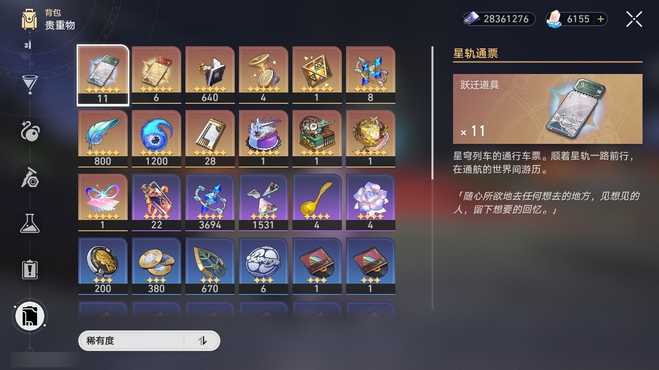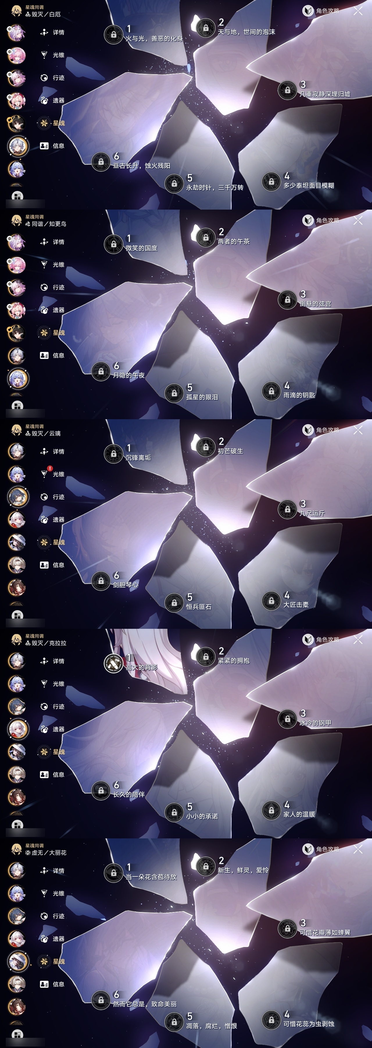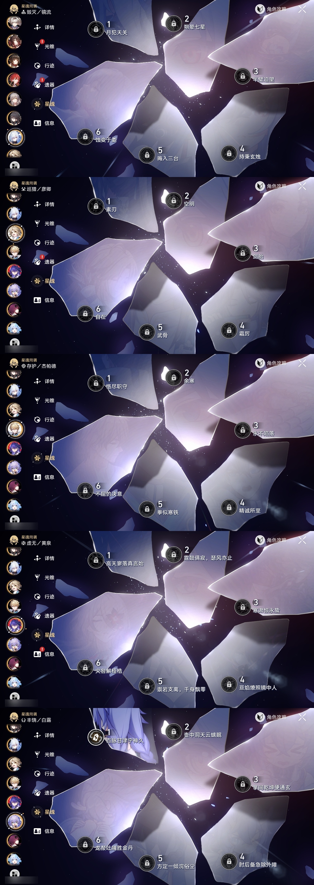 【崩坏·星穹铁道】【lyxq9627】冒险等级:70,女主,五星数量:48,五星角色:姬子 5命布洛妮娅 3命瓦尔特 3命流萤 2命白露 1命克拉拉 1命云璃希儿灵砂杰帕德彦卿乱破星期日忘归人罗刹刃卡芙卡遐蝶符玄镜流托帕账账藿藿真理医生花火黄泉风堇知更鸟白厄saberarcher刻律德菈长夜月丹恒·腾荒昔涟大丽花__五星光锥:记一位星神的陨落 5精孤独的疗愈 3精星海巡航 2精以世界之名 2精银河铁道之夜以世界之名无可取代的东西时节不居如泥酣眠不息的演算让告别,更美一些行于流逝的岸梦应归于何处__四星角色:娜塔莎 6命虎克 6命貊泽 6命黑塔 6命丹恒 6命希露瓦 6命停云 6命三月七 6命青雀 6命佩拉 6命驭空 6命卢卡 6命玲可 6命桂乃芬 6命寒鸦 6命雪衣 6命米沙 6命加拉赫 6命艾丝妲 5命素裳 5命阿兰 4命桑博 4命21流萤击破队辅助全,记忆队,白厄队