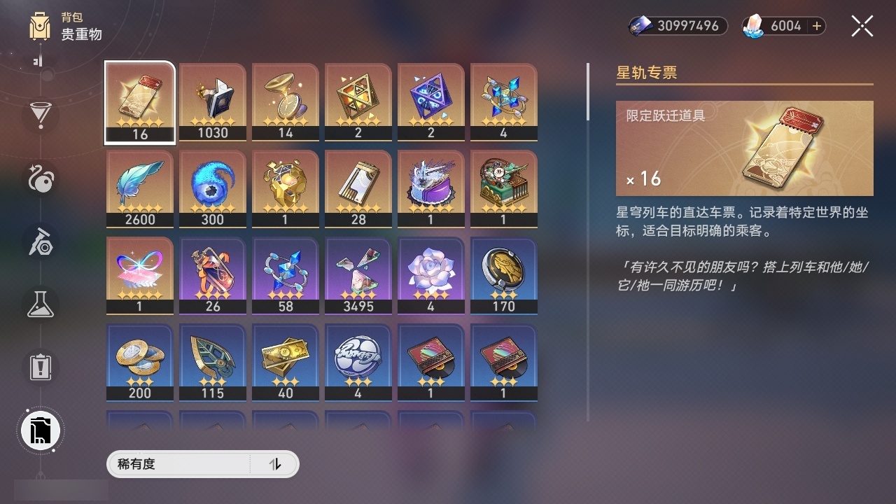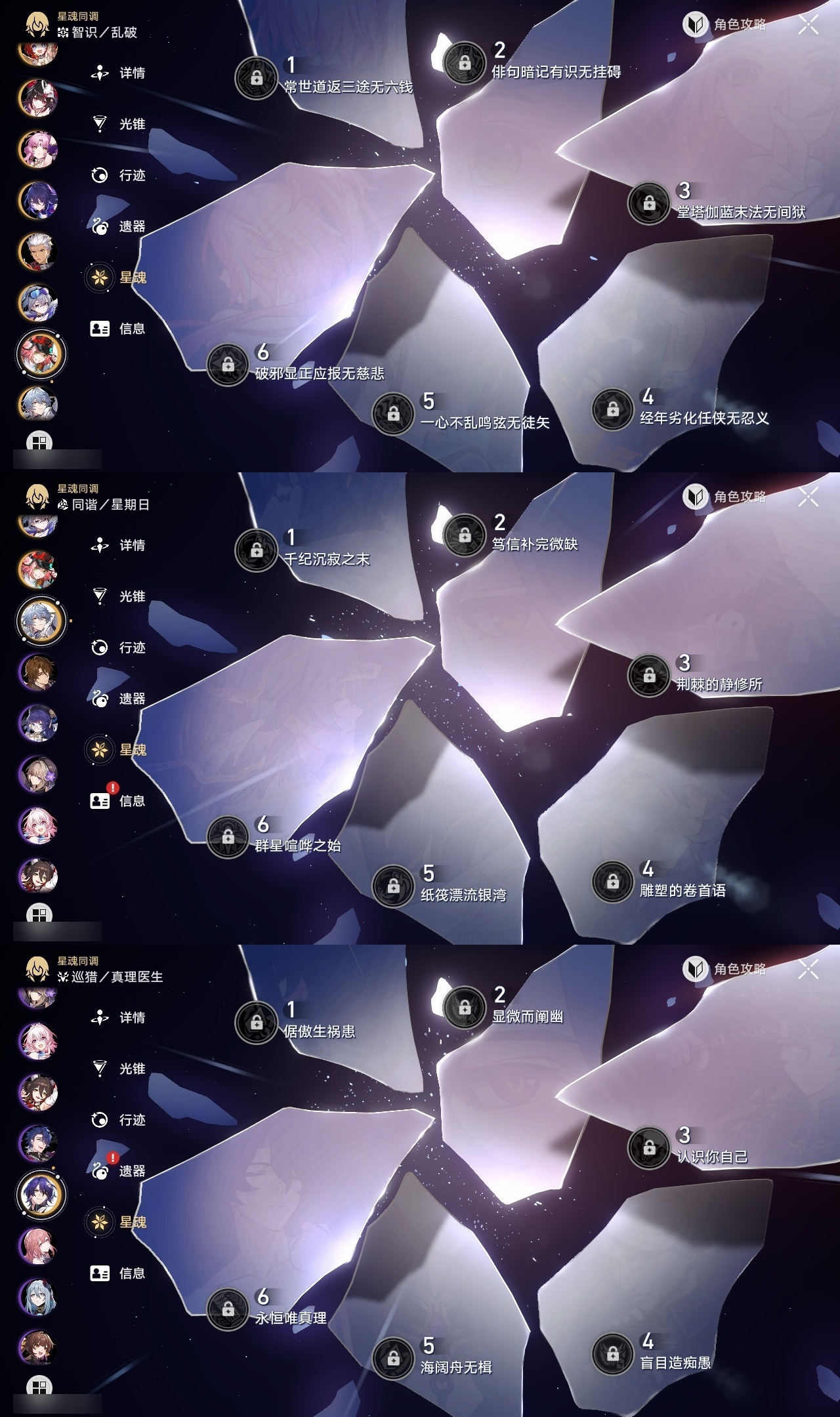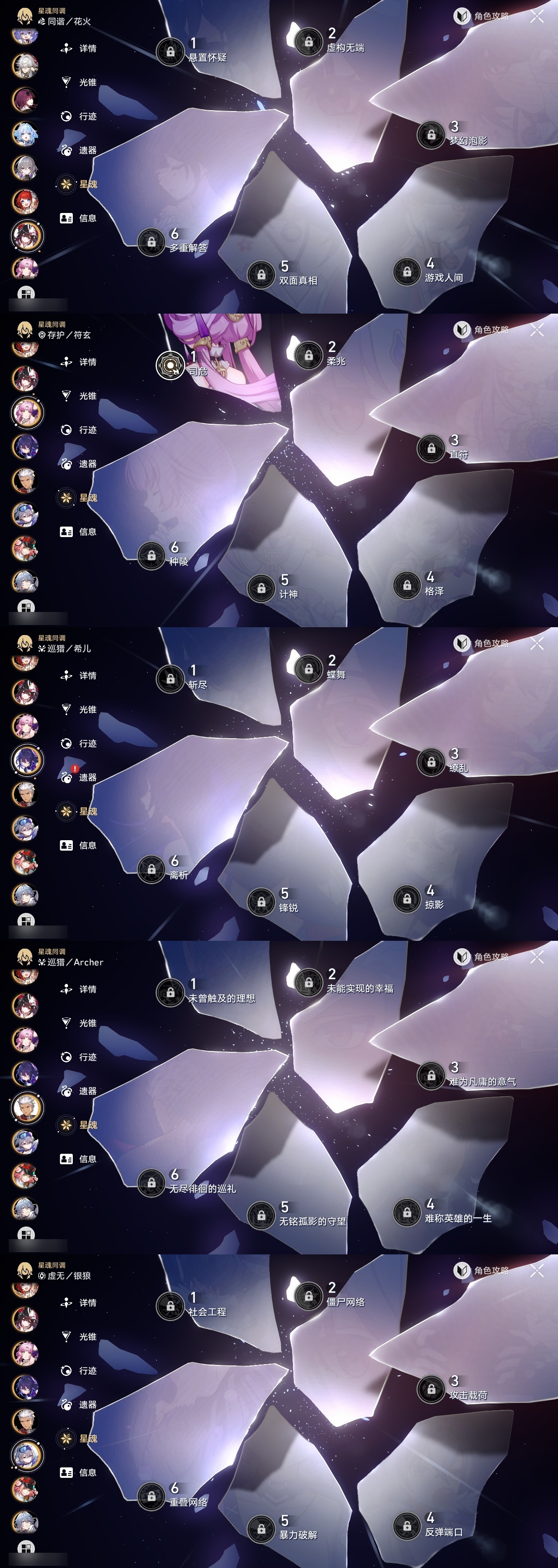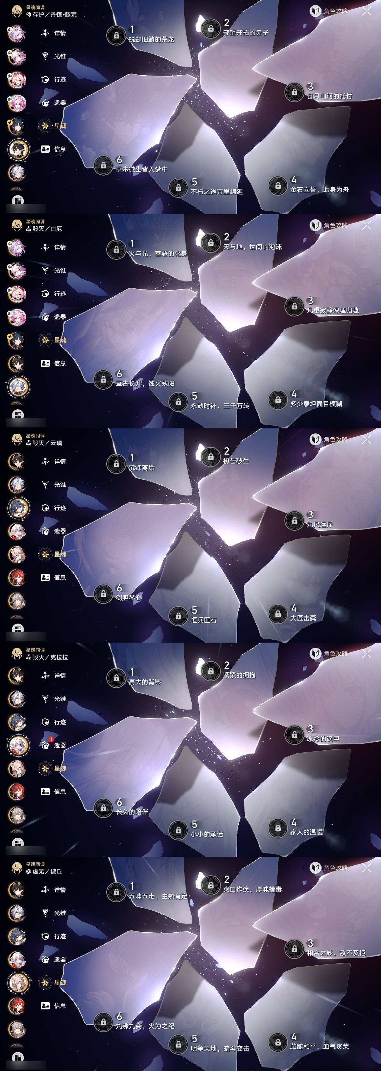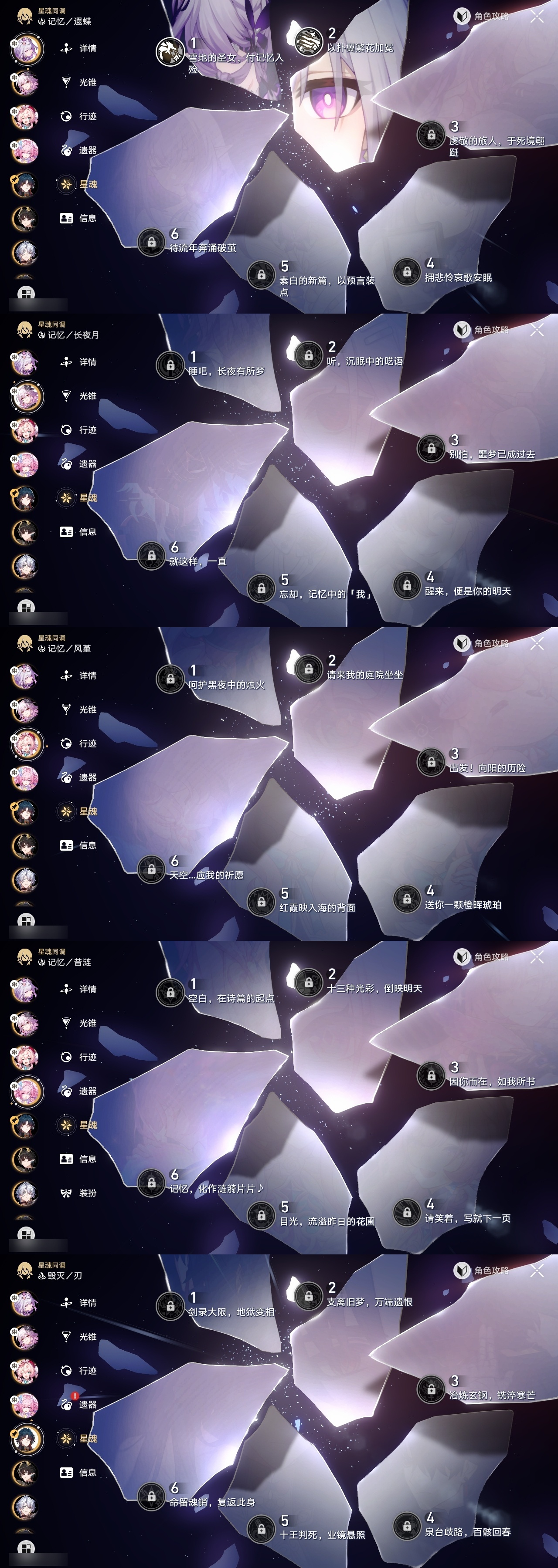 【崩坏·星穹铁道】【lyxq9648】冒险等级:70,女主,五星数量:43,五星角色:白露 6命布洛妮娅 4命姬子 2命遐蝶 2命杰帕德 1命符玄 1命云璃椒丘银狼景元希儿克拉拉乱破星期日缇宝刃卡芙卡真理医生花火黄泉风堇白厄archer刻律德菈长夜月丹恒·腾荒昔涟__五星光锥:星海巡航 5精记忆的质料 5精孤独的疗愈 5精记忆永不落幕 5精记一位星神的陨落 3精如泥酣眠 2精以世界之名无可取代的东西时节不居不息的演算回到大地的飞行让告别,更美一些游戏尘寰行于流逝的岸黎明恰如此燃烧理想燃烧的地狱__四星角色:娜塔莎 6命虎克 6命貊泽 6命黑塔 6命丹恒 6命艾丝妲 6命希露瓦 6命停云 6命素裳 6命桑博 6命三月七 6命青雀 6命佩拉 6命驭空 6命卢卡 6命玲可 6命寒鸦 6命雪衣 6命米沙 6命加拉赫 6命阿兰 5命桂乃芬 2命