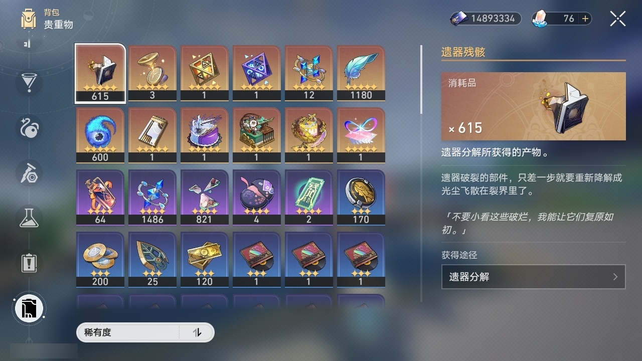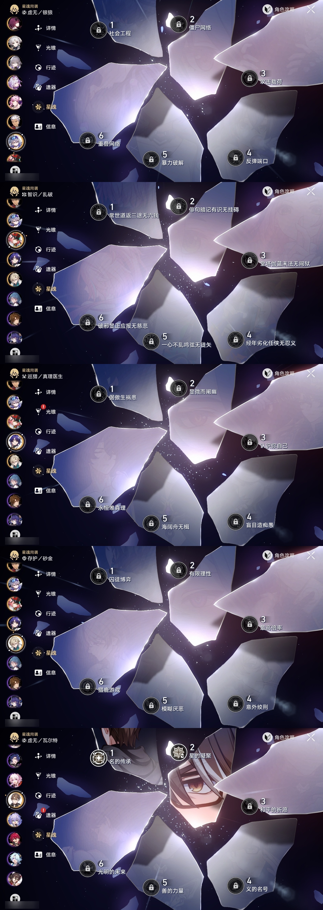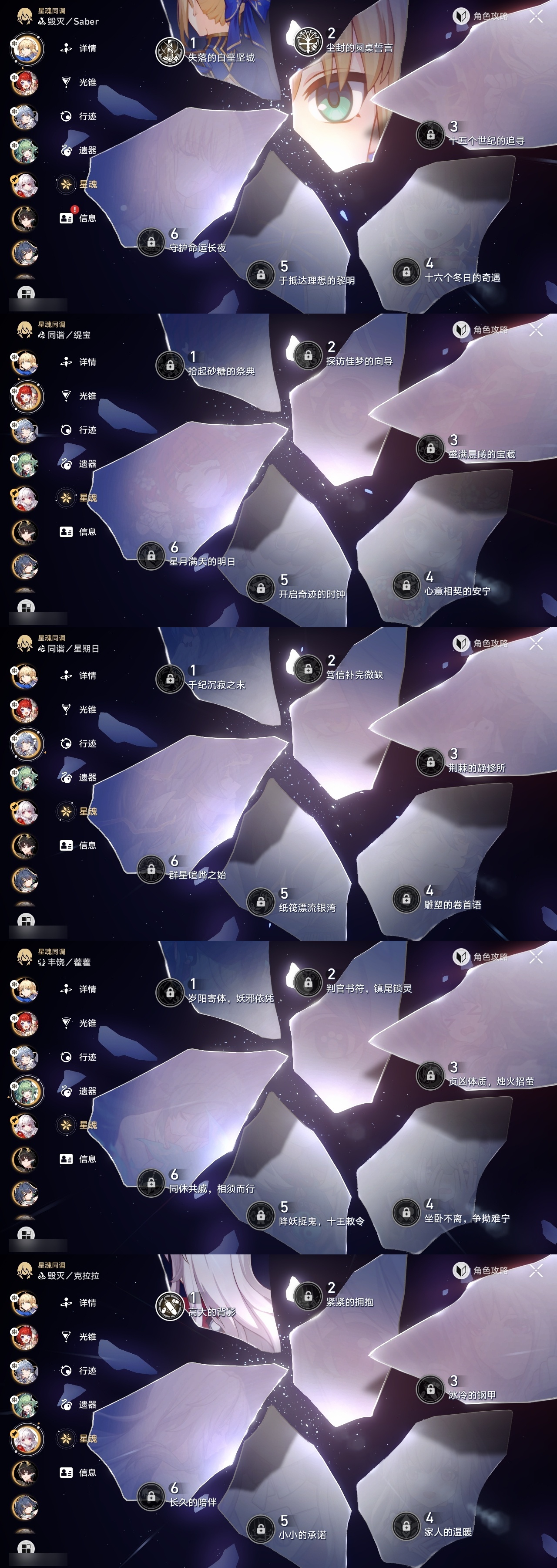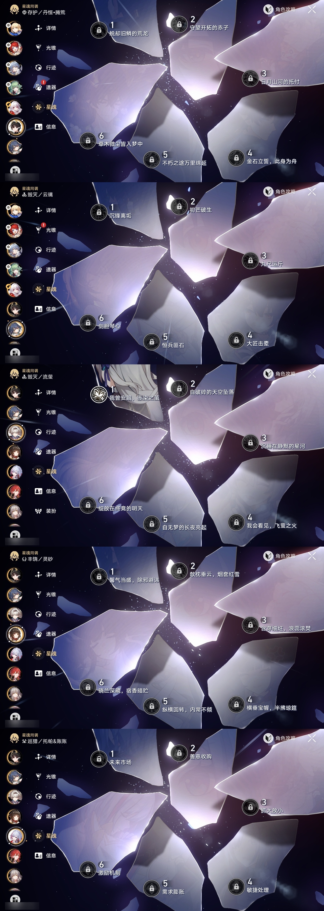 【崩坏·星穹铁道】【lyxq9658】冒险等级:70,女主,五星数量:36,五星角色:姬子 5命白露 2命瓦尔特 2命黄泉 2命saber 2命彦卿 1命克拉拉 1命流萤 1命云璃飞霄银狼布洛妮娅灵砂乱破星期日缇宝卡芙卡遐蝶符玄托帕账账藿藿真理医生砂金archer丹恒·腾荒昔涟__五星光锥:星海巡航 5精以世界之名以世界之名无可取代的东西时节不居如泥酣眠让告别,更美一些行于流逝的岸没有回报的加冕梦应归于何处__四星角色:阿兰 6命娜塔莎 6命貊泽 6命黑塔 6命丹恒 6命艾丝妲 6命希露瓦 6命停云 6命桑博 6命三月七 6命青雀 6命佩拉 6命驭空 6命玲可 6命寒鸦 6命雪衣 6命米沙 6命加拉赫 6命素裳 4命卢卡 3命桂乃芬 3命虎克 2命