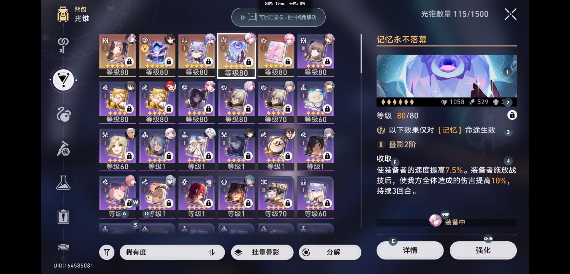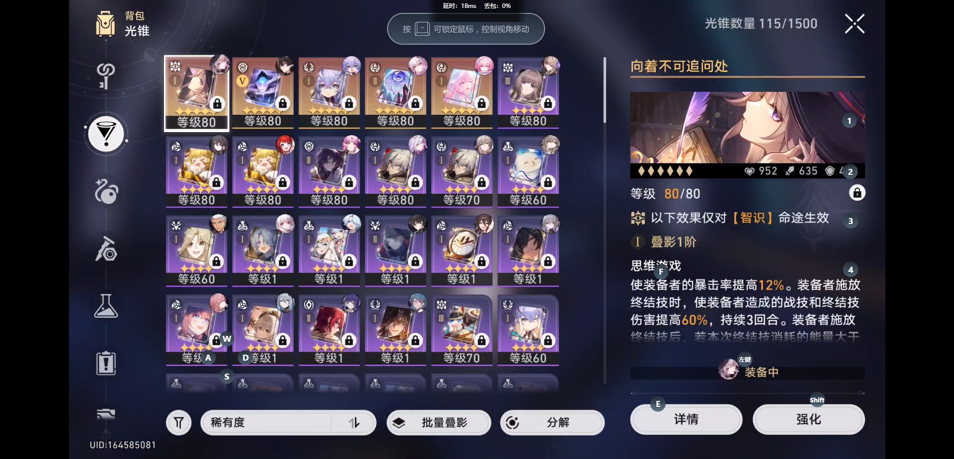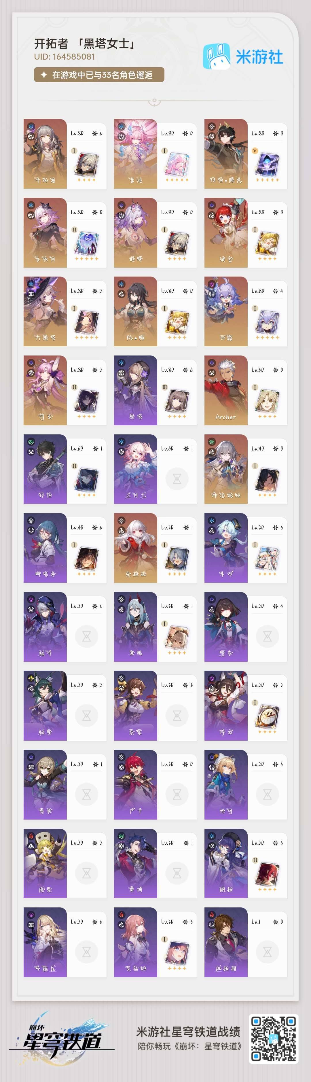 [16345899]【总黄数】:20 【4命金色角色】:4命白露 【2命金色角色】:2命大黑塔2命符玄 【1命金色角色】:1命克拉拉 【0命金色角色】:0命缇宝0命遐蝶0命archer0命长夜月0命丹恒·腾荒0命布洛妮娅0命阮•梅0命昔涟 【精5武器】:精5记忆的质料 【精2武器】:精2记忆永不落幕 【精1武器】:精1向着不可追问处精1时节不居精1爱如此刻永恒