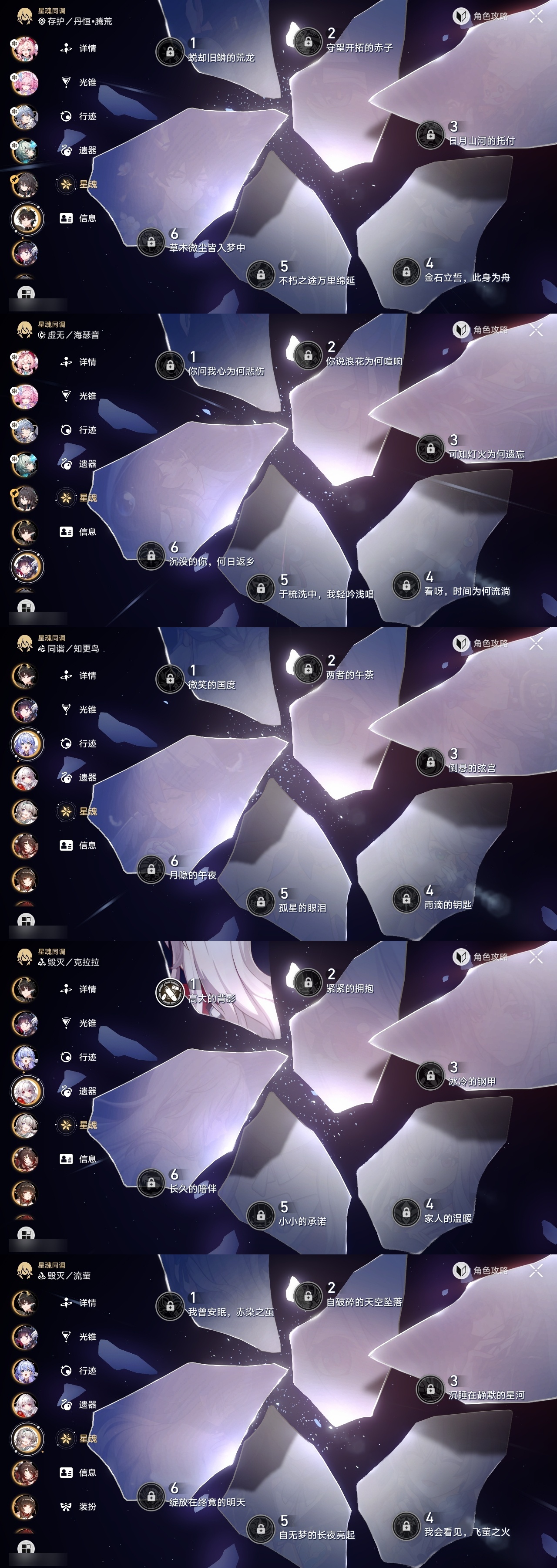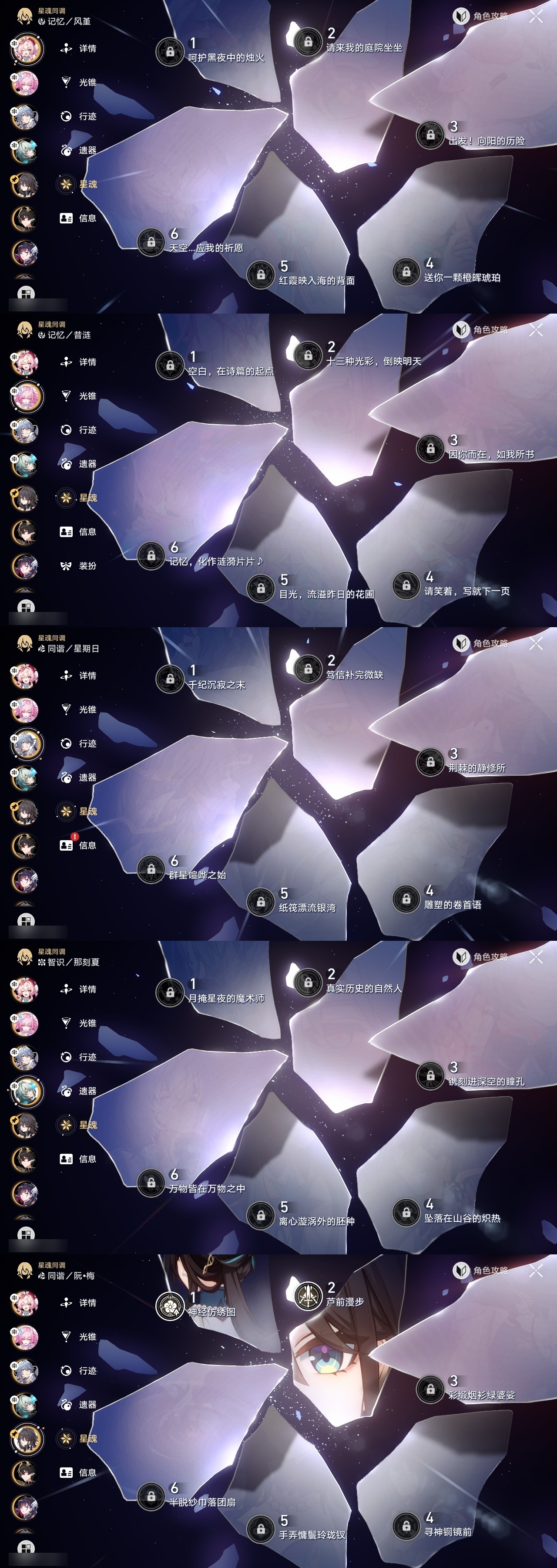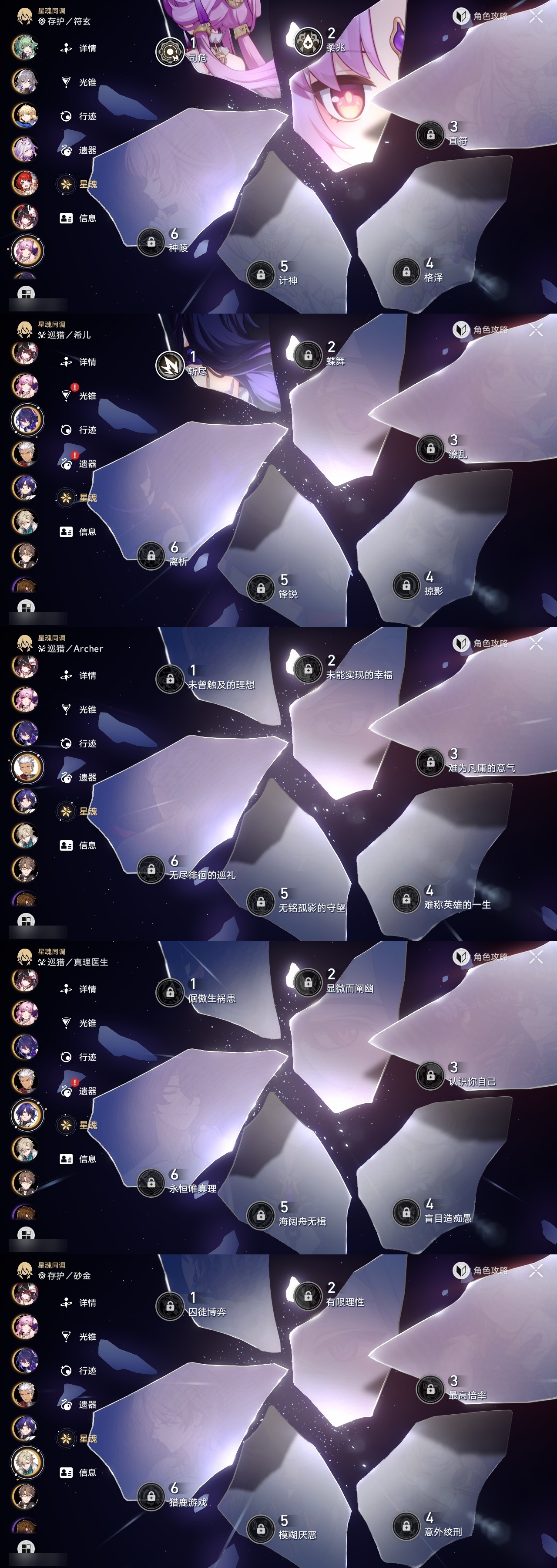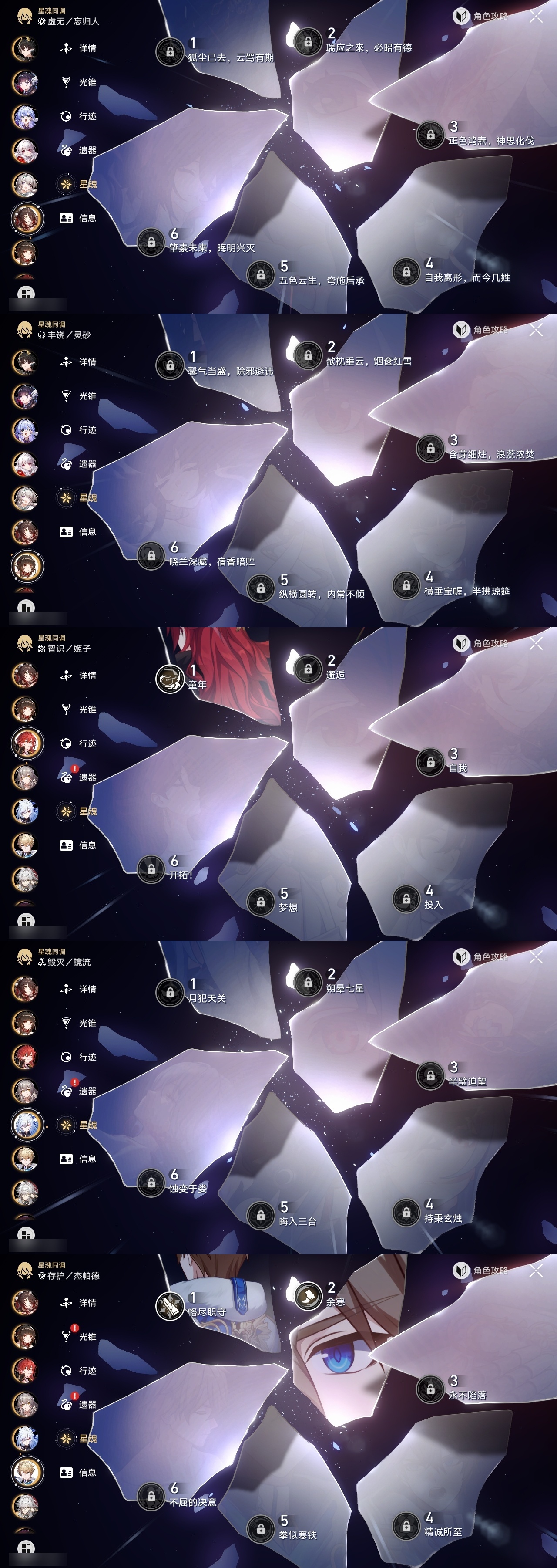 【崩坏·星穹铁道】【lyxq9707】冒险等级:70,女主,五星数量:47,五星角色:瓦尔特 4命布洛妮娅 2命杰帕德 2命符玄 2命希儿 1命姬子 1命克拉拉 1命飞霄景元白露灵砂彦卿星期日忘归人缇宝卡芙卡遐蝶镜流藿藿真理医生黑天鹅花火那刻夏风堇砂金知更鸟saberarcher海瑟音丹恒·腾荒昔涟流萤__五星光锥:星海巡航 5精记一位星神的陨落 5精孤独的疗愈 5精记忆永不落幕 4精以世界之名 3精落日时起舞制胜的瞬间银河铁道之夜时节不居如泥酣眠拂晓之前我将,巡征追猎将光阴织成黄金此身为剑重塑时光之忆__四星角色:阿兰 6命娜塔莎 6命虎克 6命貊泽 6命黑塔 6命丹恒 6命艾丝妲 6命希露瓦 6命停云 6命素裳 6命桑博 6命三月七 6命青雀 6命佩拉 6命驭空 6命卢卡 6命玲可 6命桂乃芬 6命寒鸦 6命雪衣 6命米沙 6命加拉赫 6命记忆队击破队带辅助