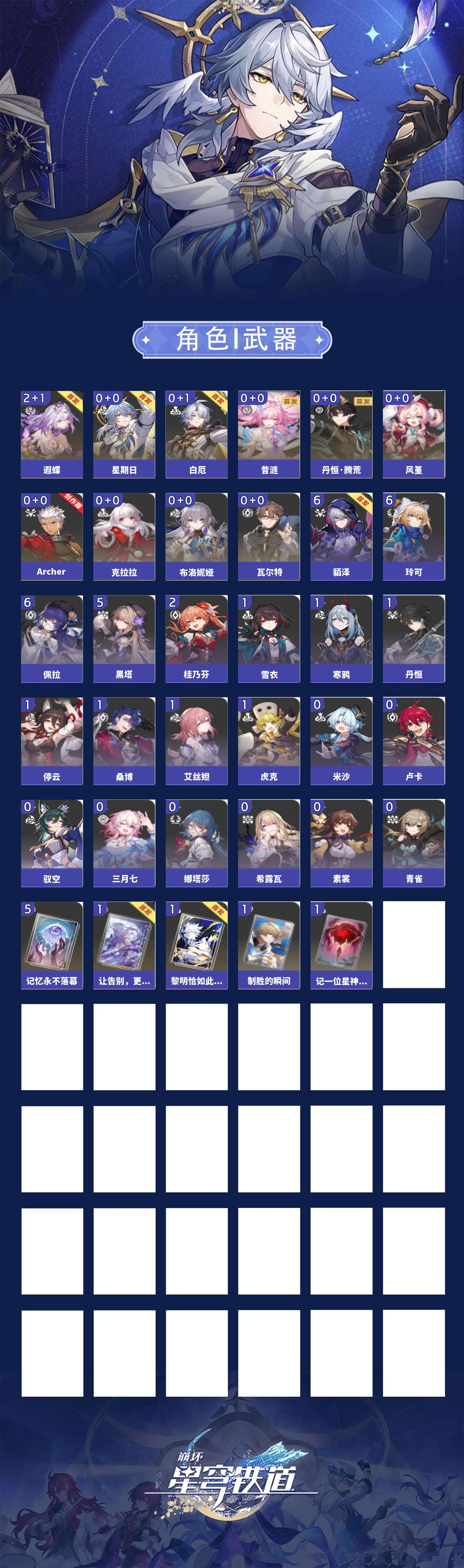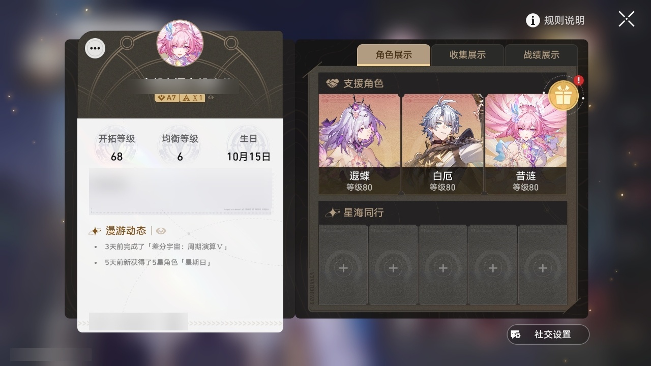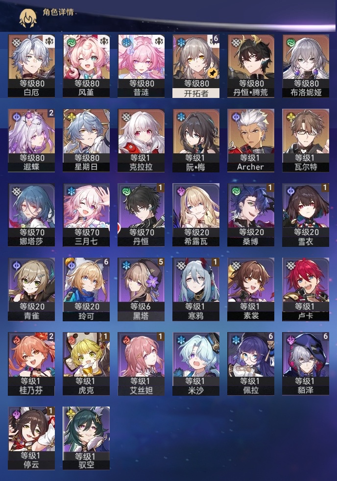 【崩坏·星穹铁道】【lyxq9686】冒险等级:68,女主,五星数量:15,五星角色:遐蝶 2命布洛妮娅瓦尔特克拉拉星期日风堇白厄archer丹恒·腾荒昔涟__五星光锥:记忆永不落幕 5精记一位星神的陨落制胜的瞬间让告别,更美一些黎明恰如此燃烧__四星角色:貊泽 6命佩拉 6命玲可 6命黑塔 5命桂乃芬 2命虎克 1命丹恒 1命艾丝妲 1命停云 1命桑博 1命寒鸦 1命雪衣 1命娜塔莎希露瓦素裳三月七青雀驭空卢卡米沙21遐蝶记忆队 01白厄队 98抽