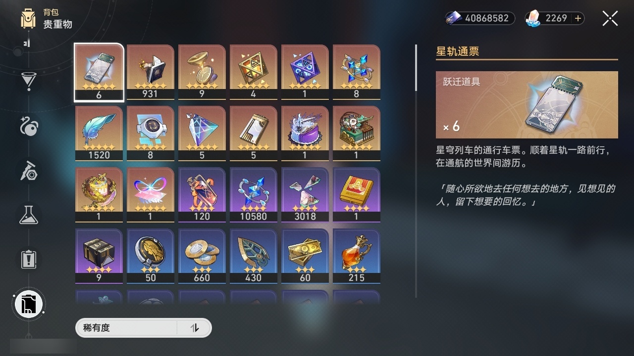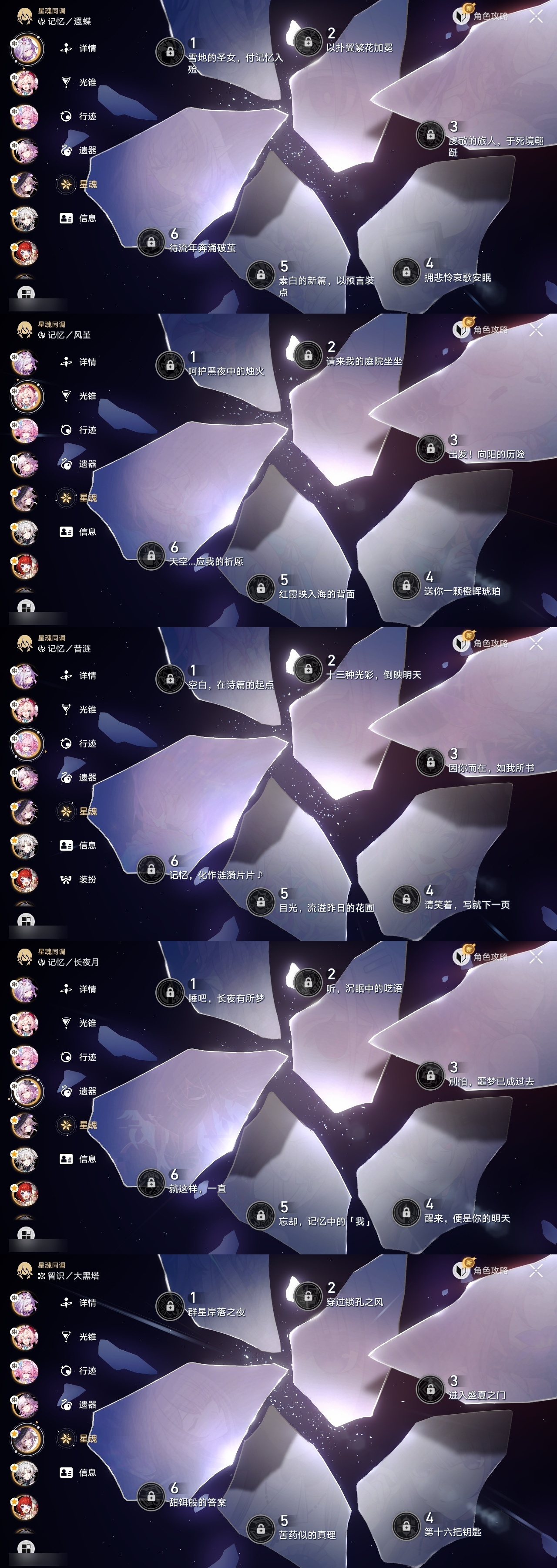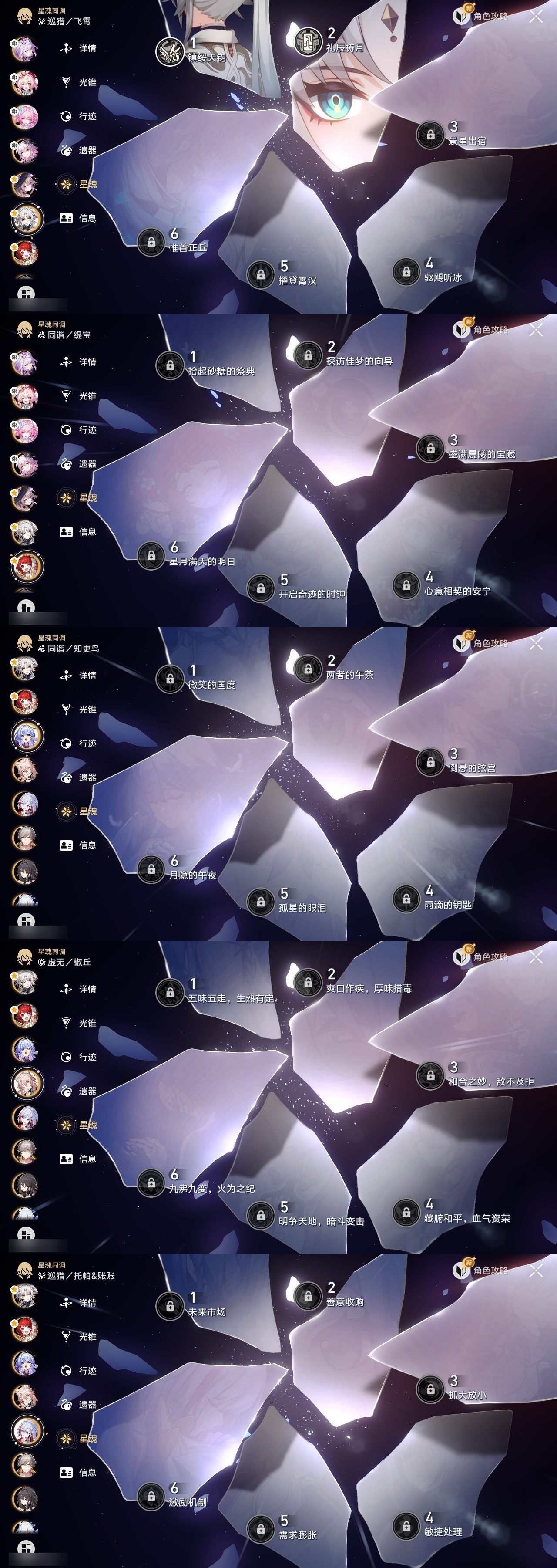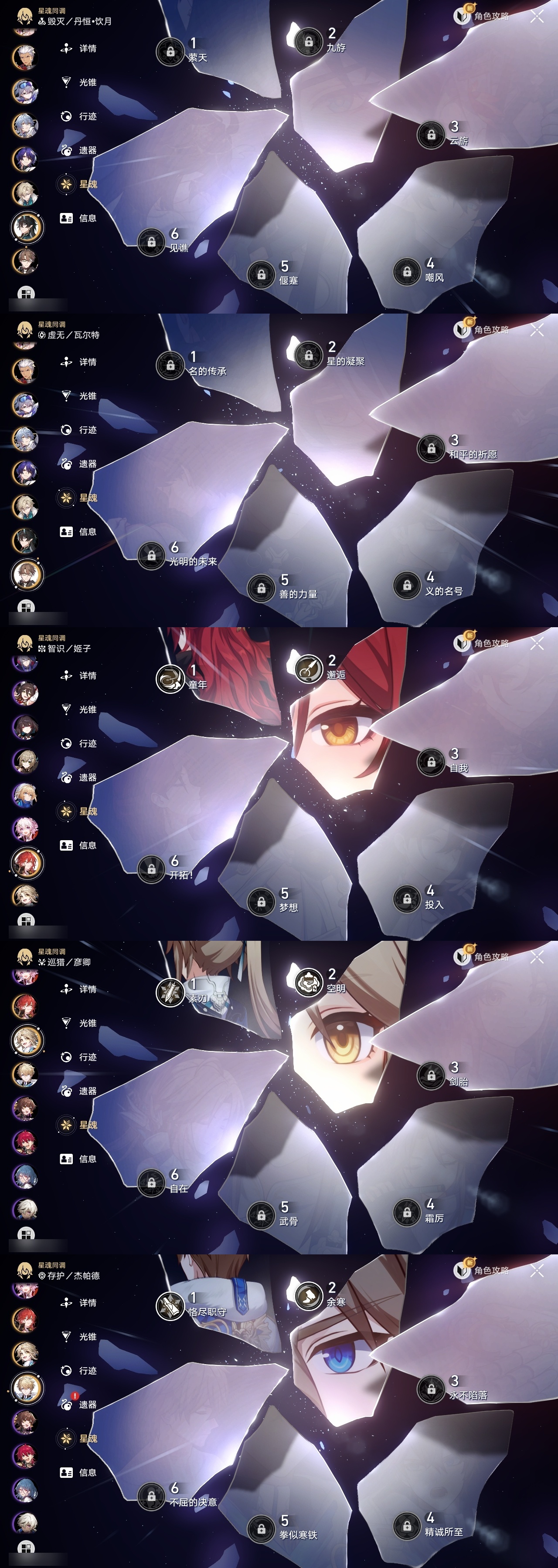 【崩坏·星穹铁道】【lyxq9720】冒险等级:70,男主,五星数量:53,五星角色:白露 6命布洛妮娅 4命飞霄 2命姬子 2命杰帕德 2命彦卿 2命黄泉 2命saber 1命椒丘银狼瓦尔特星期日大黑塔缇宝卡芙卡丹恒·饮月遐蝶符玄镜流托帕账账真理医生黑天鹅风堇砂金知更鸟archer刻律德菈长夜月丹恒·腾荒昔涟__五星光锥:星海巡航记一位星神的陨落制胜的瞬间制胜的瞬间制胜的瞬间无可取代的东西如泥酣眠但战斗还未结束我将,巡征追猎不息的演算回到大地的飞行孤独的疗愈她已闭上双眼让告别,更美一些烦恼着,幸福着纯粹思维的洗礼行于流逝的岸夜色流光溢彩记忆永不落幕理想燃烧的地狱没有回报的加冕海洋为何而歌爱如此刻永恒__四星角色:阿兰 6命娜塔莎 6命虎克 6命貊泽 6命黑塔 6命丹恒 6命艾丝妲 6命希露瓦 6命停云 6命桑博 6命三月七 6命青雀 6命佩拉 6命驭空 6命卢卡 6命玲可 6命桂乃芬 6命寒鸦 6命雪衣 6命米沙 6命加拉赫 6命素裳 5命