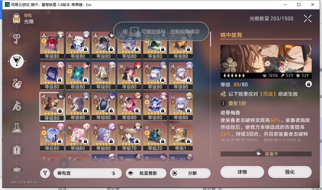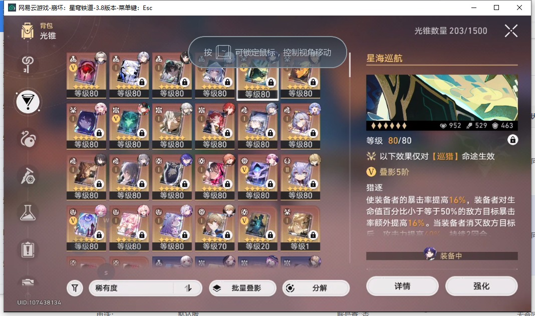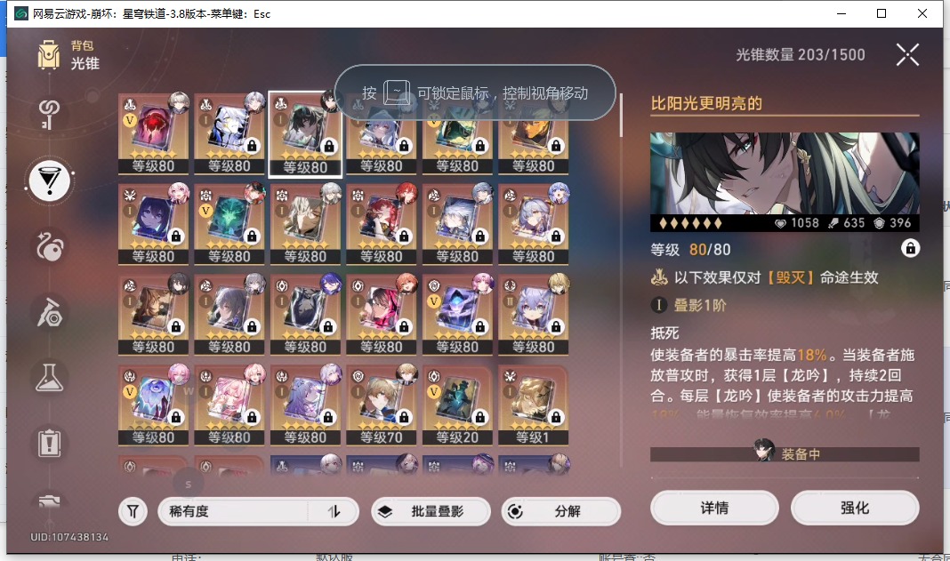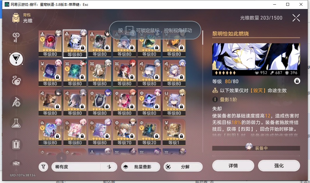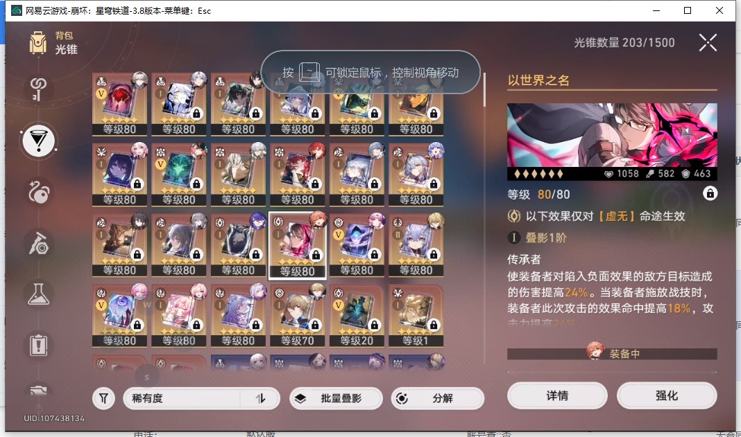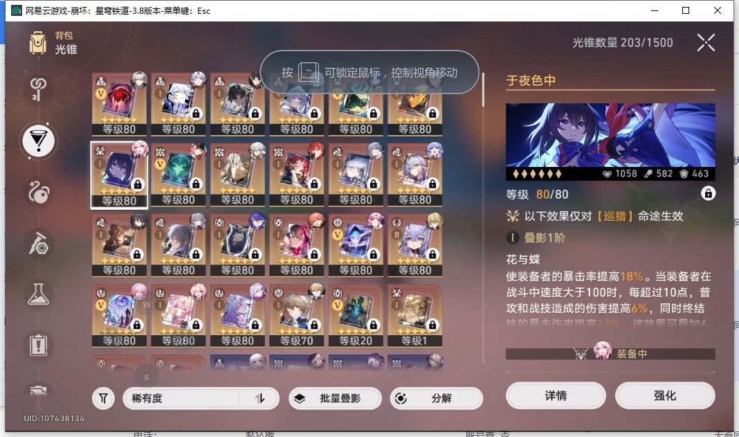 [16407206]【总黄数】108 【4命金色角色】4命布洛妮娅4命克拉拉 【3命金色角色】3命姬子 【2命金色角色】2命白露2命丹恒•饮月 【1命金色角色】1命忘归人1命阿格莱雅1命长夜月1命彦卿1命阮•梅 【0命金色角色】0命希儿0命飞霄0命灵砂0命星期日0命遐蝶0命流萤0命赛飞儿0命白厄0命saber0命archer0命丹恒·腾荒0命昔涟0命卡芙卡0命杰帕德0命银狼0命刃0命知更鸟0命托帕账账0命藿藿0命真理医生0命黑天鹅0命黄泉0命大丽花 【精5武器】精5不息的演算精5记忆永不落幕精5记忆的质料精5孤独的疗愈精5记一位星神的陨落精5星海巡航 【精3武器】精3时节不居 【精1武器】精1拂晓之前精1回到大地的飞行精1让告别,更美一些精1愿虹光永驻天空精1黎明恰如此燃烧精1理想燃烧的地狱精1夜色流光溢彩精1于夜色中精1如泥酣眠精1制胜的瞬间精1以世界之名精1但战斗还未结束精1银河铁道之夜精1比阳光更明亮的精1此身为剑精1镜中故我精1行于流逝的岸