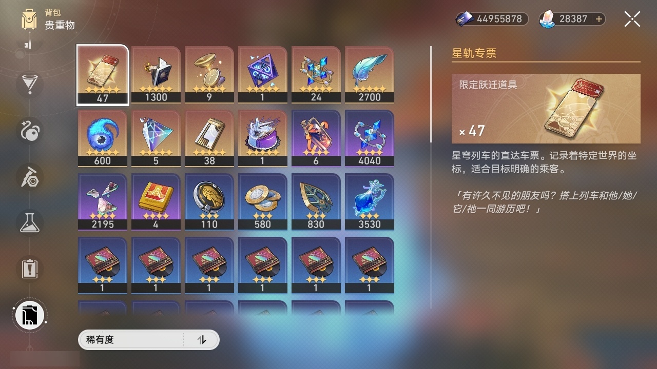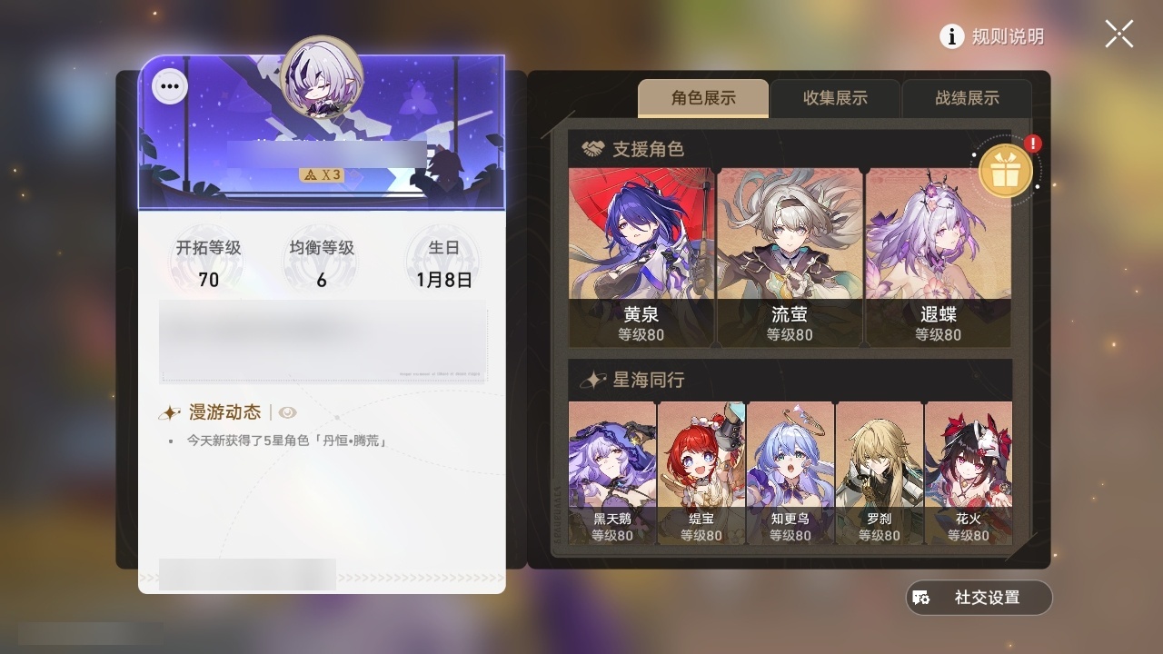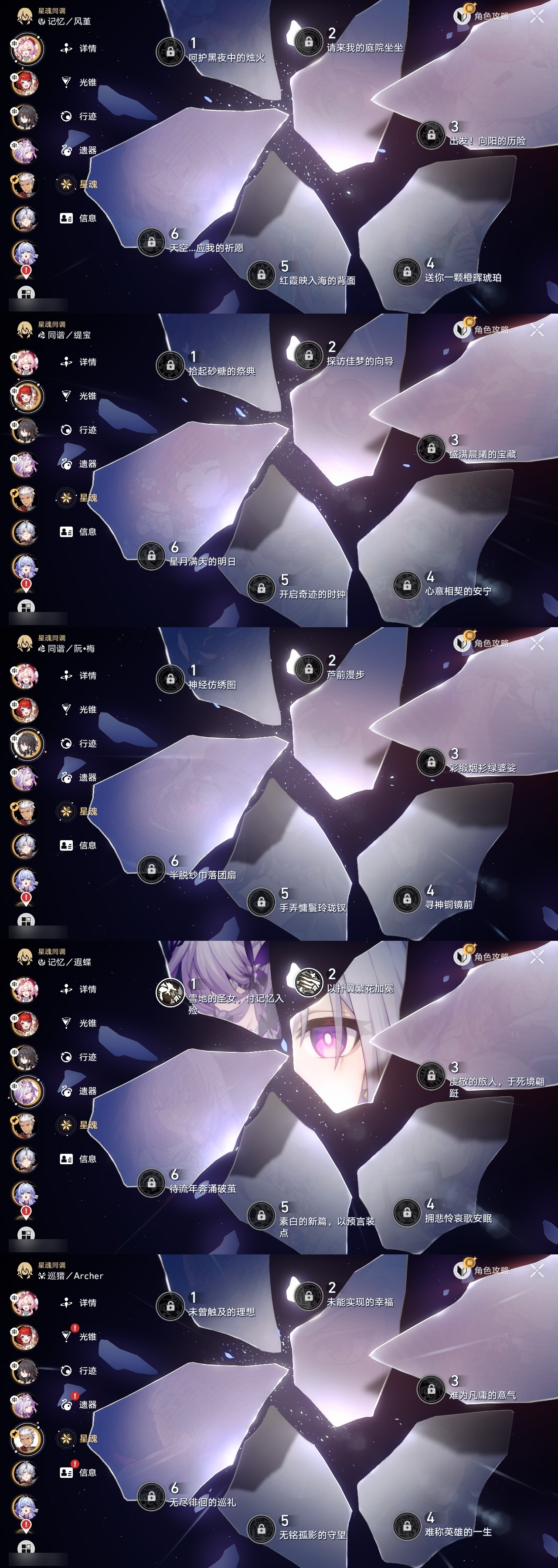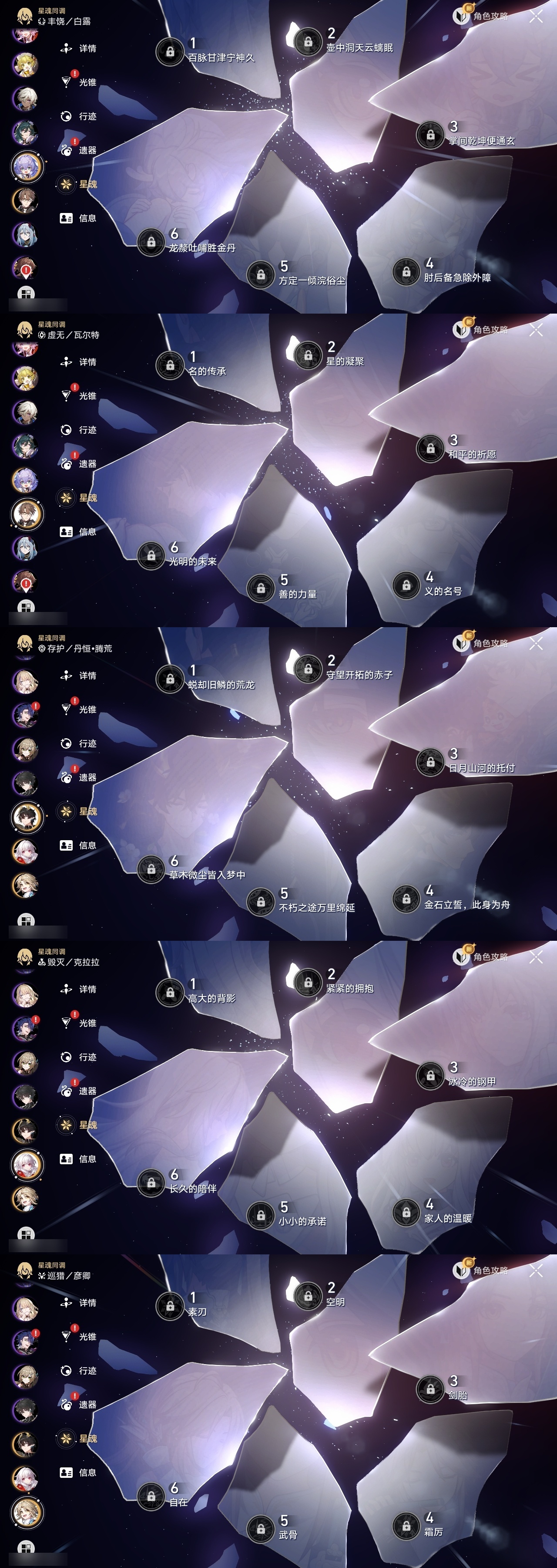 【崩坏·星穹铁道】【lyxq9757】冒险等级:70,女主,五星数量:38,五星角色:布洛妮娅 2命姬子 2命遐蝶 2命黄泉 2命流萤 2命杰帕德 1命云璃飞霄白露彦卿瓦尔特克拉拉罗刹缇宝卡芙卡符玄真理医生黑天鹅花火风堇知更鸟白厄archer丹恒·腾荒__五星光锥:记忆的质料 5精记一位星神的陨落 5精记忆永不落幕 5精银河铁道之夜银河铁道之夜以世界之名如泥酣眠她已闭上双眼让告别,更美一些镜中故我纯粹思维的洗礼行于流逝的岸黎明恰如此燃烧梦应归于何处__四星角色:娜塔莎 6命虎克 6命黑塔 6命丹恒 6命停云 6命三月七 6命青雀 6命佩拉 6命驭空 6命卢卡 6命玲可 6命桂乃芬 6命寒鸦 6命雪衣 6命米沙 6命加拉赫 6命希露瓦 5命艾丝妲 4命貊泽 3命素裳 3命阿兰 2命桑博 2命记忆队,黄泉队,击破队