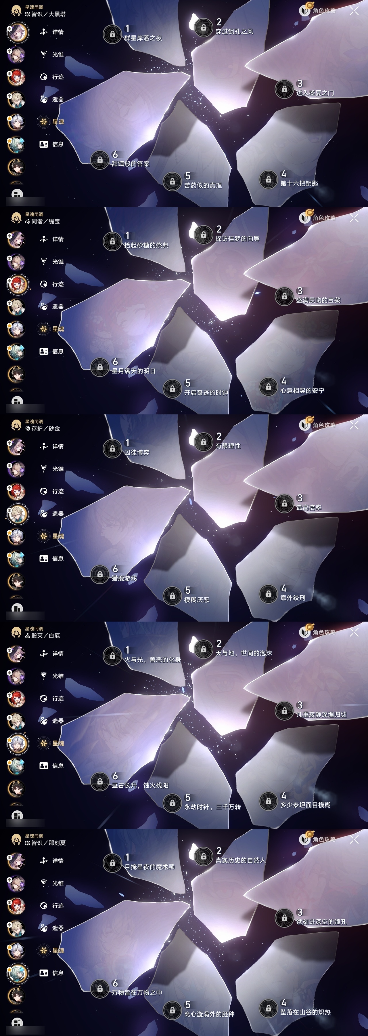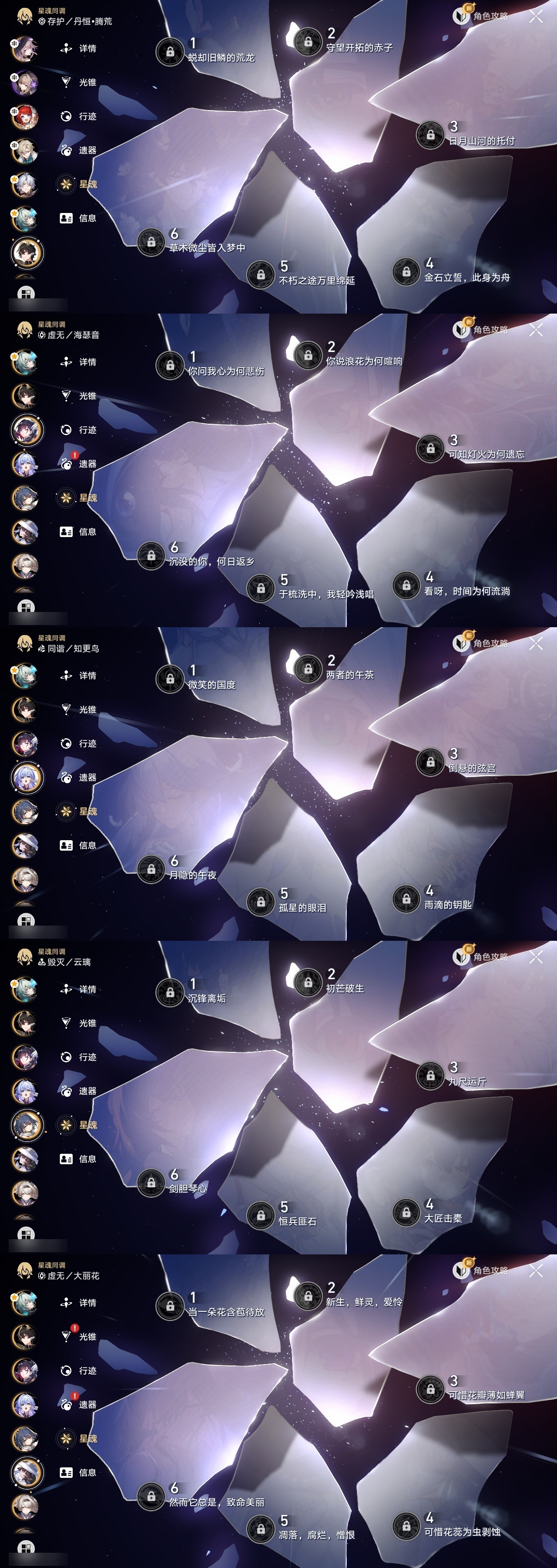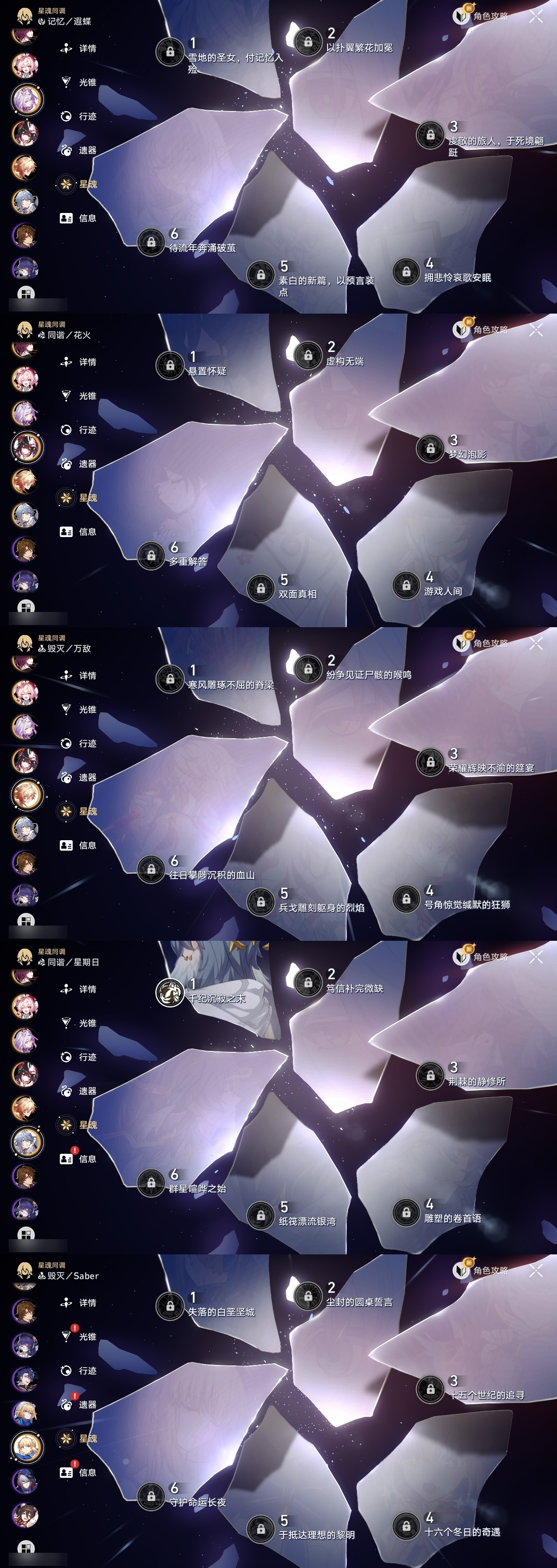 【崩坏·星穹铁道】【lyxq9803】冒险等级:70,女主,五星数量:48,五星角色:彦卿 2命白露 1命杰帕德 1命星期日 1命刃 1命云璃希儿布洛妮娅姬子瓦尔特克拉拉大黑塔缇宝万敌卡芙卡遐蝶真理医生花火那刻夏风堇砂金知更鸟白厄saberarcher海瑟音丹恒·腾荒昔涟大丽花流萤__五星光锥:记一位星神的陨落 5精不息的演算 5精记忆永不落幕 4精落日时起舞星海巡航制胜的瞬间制胜的瞬间以世界之名以世界之名无可取代的东西时节不居时节不居时节不居如泥酣眠向着不可追问处让告别,更美一些生命当付之一炬黎明恰如此燃烧__四星角色:阿兰 6命娜塔莎 6命貊泽 6命黑塔 6命丹恒 6命艾丝妲 6命希露瓦 6命停云 6命桑博 6命三月七 6命青雀 6命佩拉 6命驭空 6命卢卡 6命玲可 6命桂乃芬 6命寒鸦 6命雪衣 6命米沙 6命加拉赫 6命虎克 4命素裳 2命记忆战舰,大黑塔队,击破队